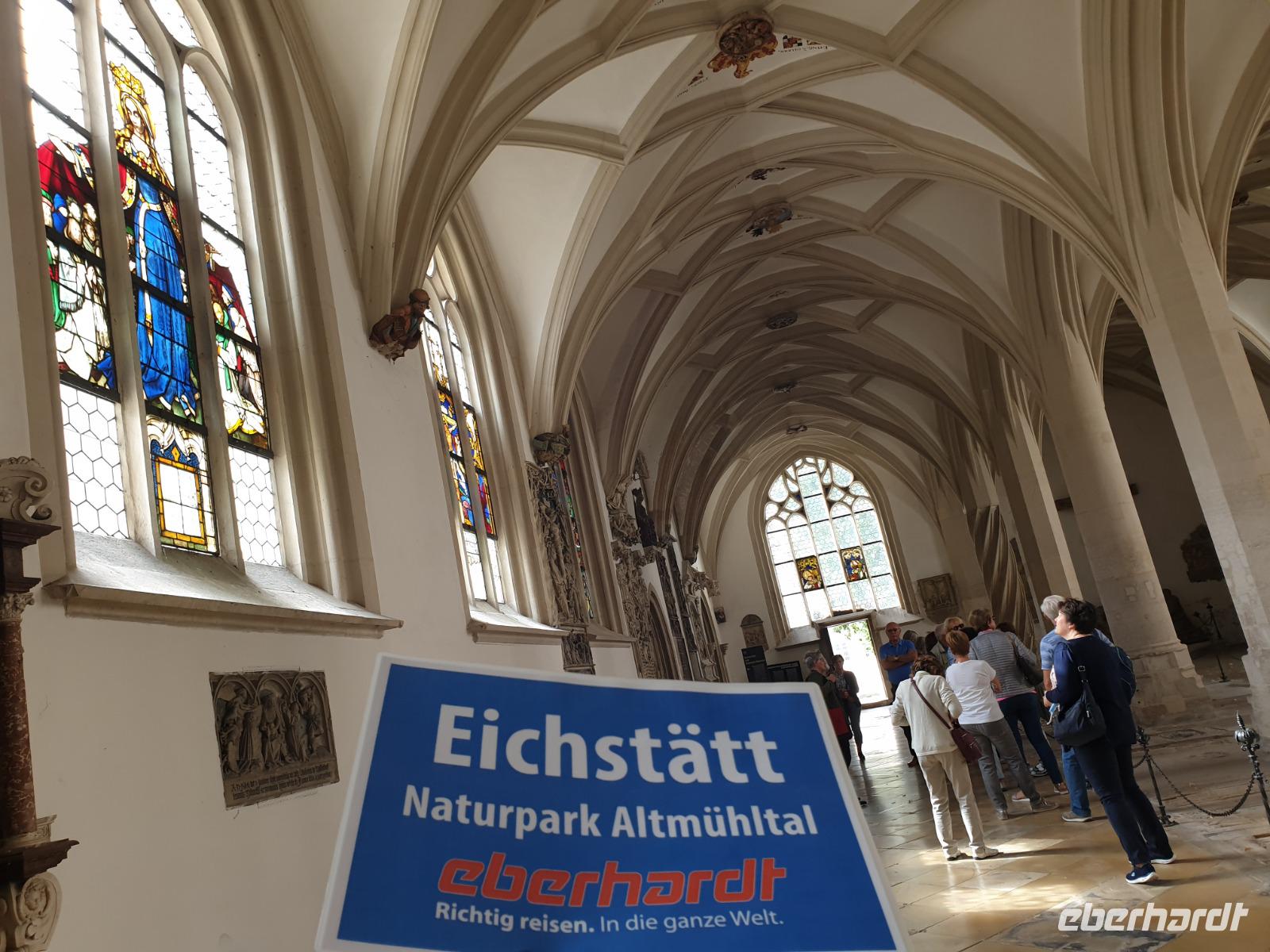 Nach einem reichhaltigen Frühstück vom Buffet im Hotel werden wir von unserer örtlichen Reiseleitung Waltraud im Hotel abgeholt, um die barocke und bischöfliche Universitätsstadt Eichstätt richtig kennen zu lernen. Bei einem Insider-Stadtrundgang sehen wir nicht nur berühmte Sehenswürdigkeiten wie die Schutzengelkirche mit ihren mehr als 500 Engelsdarstellungen, sondern erfahren auch zahlreiche Geheimtipps. Wir staunen über die beeindruckende Barockkirche St. Walburg, unternehmen einen Streifzug durch den Hofgarten der Sommerresidenz und verweilen auf dem Residenzplatz. Der berühmte Dom ist leider für ca. zwei Jahre wegen Renovierung geschlossen, aber wir zeigen Ihnen alles, was man besichtigen kann.
