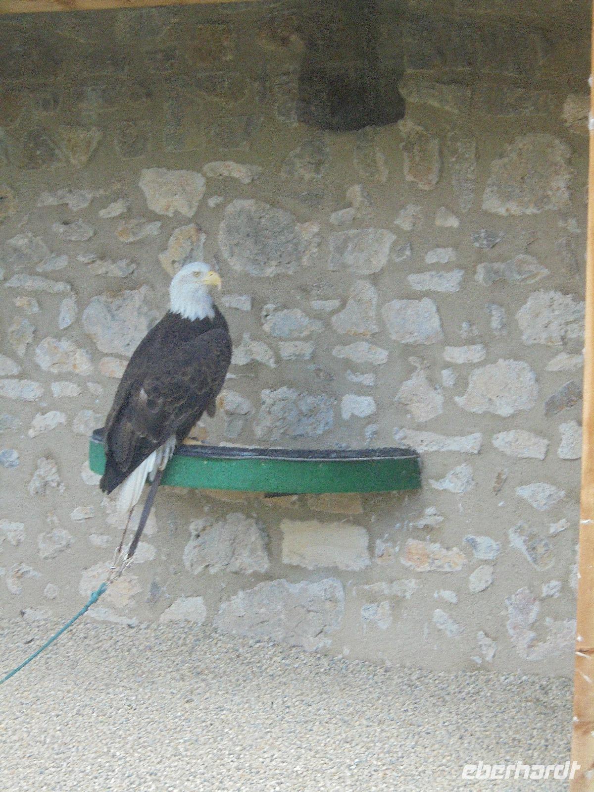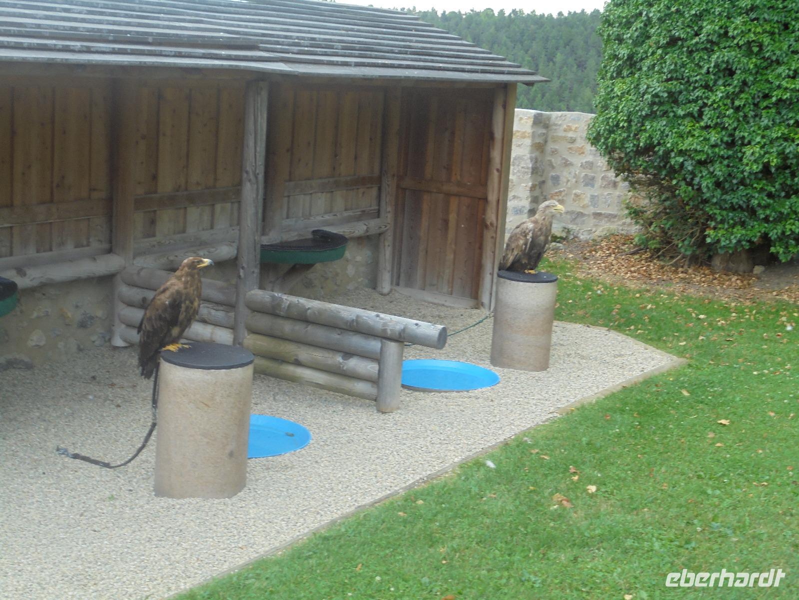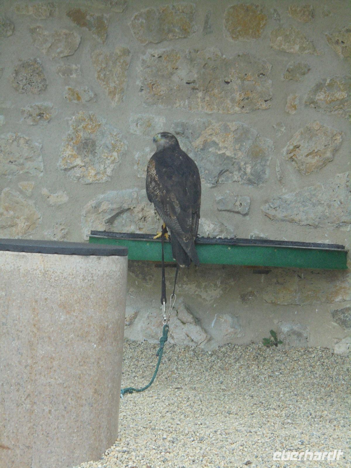 Einige besonders schöne Exemplare der edlen Tiere konnten wir bei einer gut gemachten Flugvorführung bewundern, bei der auch viele zu Lebensweise und Besonderheiten der „Herren der Lüfte" erklärt wurde. Nicht nur Falken und Milane, auch Eulen, Seeadler und Geier konnten wir beim Fliegen beobachten.