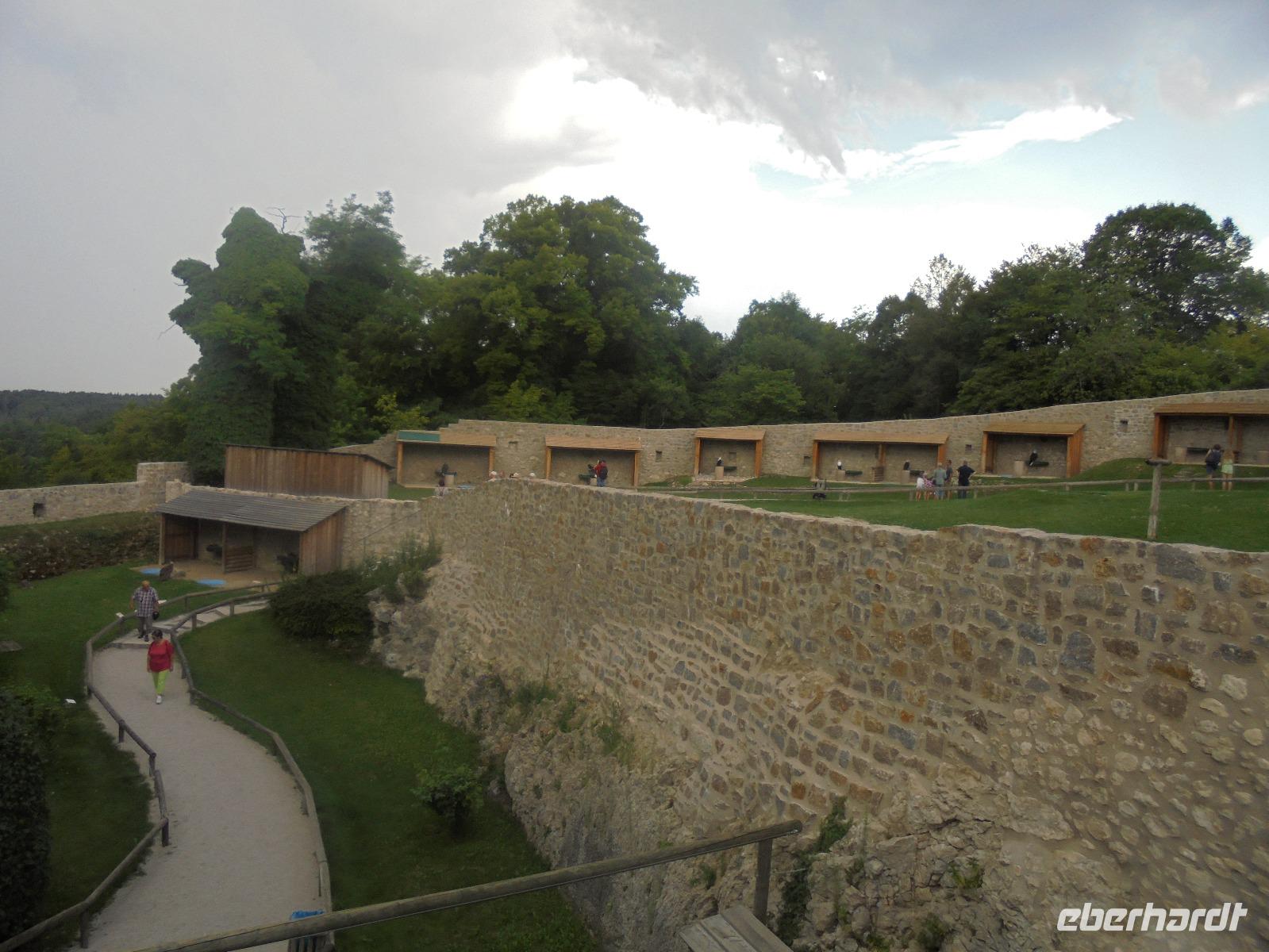 Der Nachmittag hielt noch ein besonderes Erlebnis für uns bereit: Wir fuhren ins liebliche Altmühltal, wo über dem Städtchen Riedenburg, dass sich im Tal eng an die Flusswindungen schmiegt, die Rosenburg erhebt. Schon im 12. Jh. an strategisch wichtigem Ort erbaut, wechselte sie mehrfach die Besitzer, wurde zerstört und wieder aufgebaut. Heute enthält das interessante Gemäuer nicht nur eine Burggaststätte und eine Ausstellung über heimische Wildtiere und Vögel, sondern die Hauptattraktion ist der „Falkenhof", der sich seit 1978 der Aufzucht und Pflege von Raubvögeln widmet.