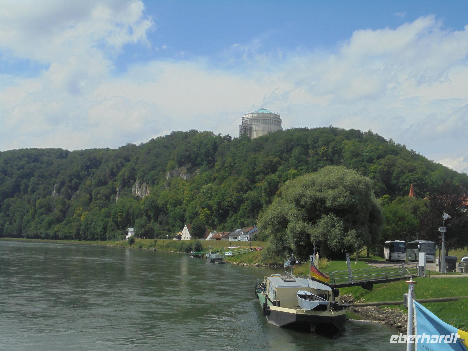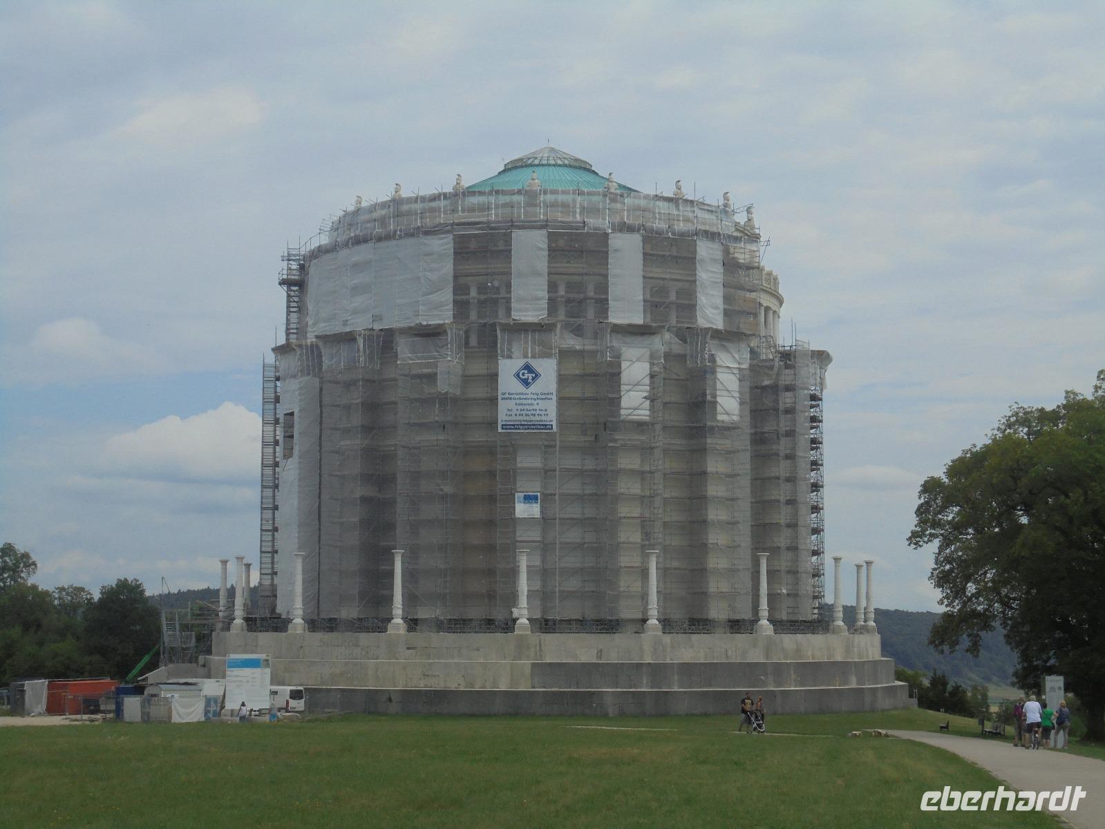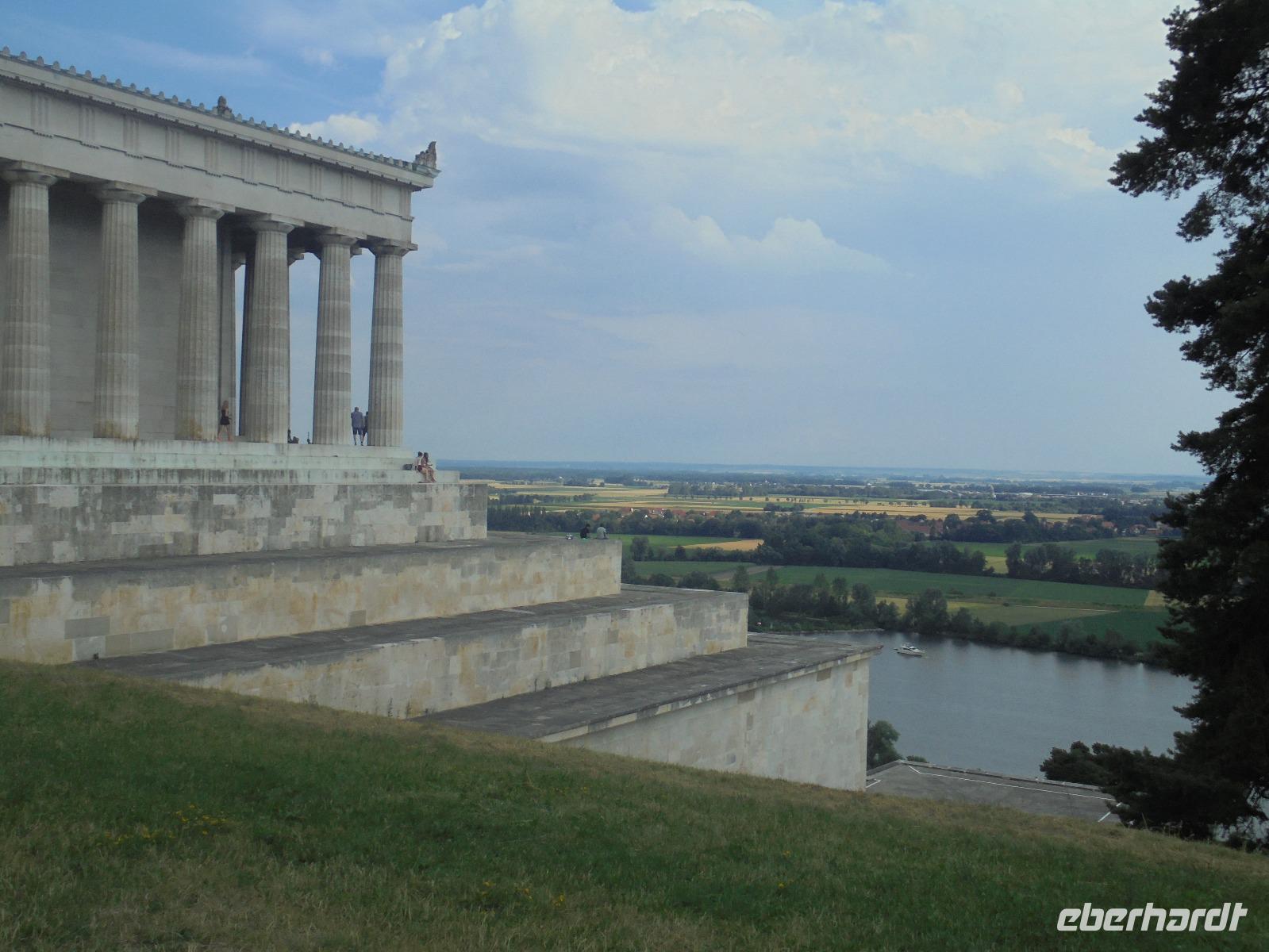 Im Anschluss an unsere interessante Führung hatten wir etwas Freizeit und machten uns dann zum nächsten Besichtungspunkt auf, dem Kloster Weltenburg. Aber wir hatten noch etwas Zeit, legten einen Stopp am Mündungsdreieck der Altmühl in die Donau ein, wo auf dem hoch über die Donau ragenden Michelsberg die Befreiungshalle steht. Leider derzeit eingerüstet, ist sie ein von König Ludwig I. von Bayern in Auftrag gegebenes gewaltiges klassizistisches Denkmal zum Gedenken an die gewonnenen Schlachten gegen Frankreich in den napoleonischen Kriegen.