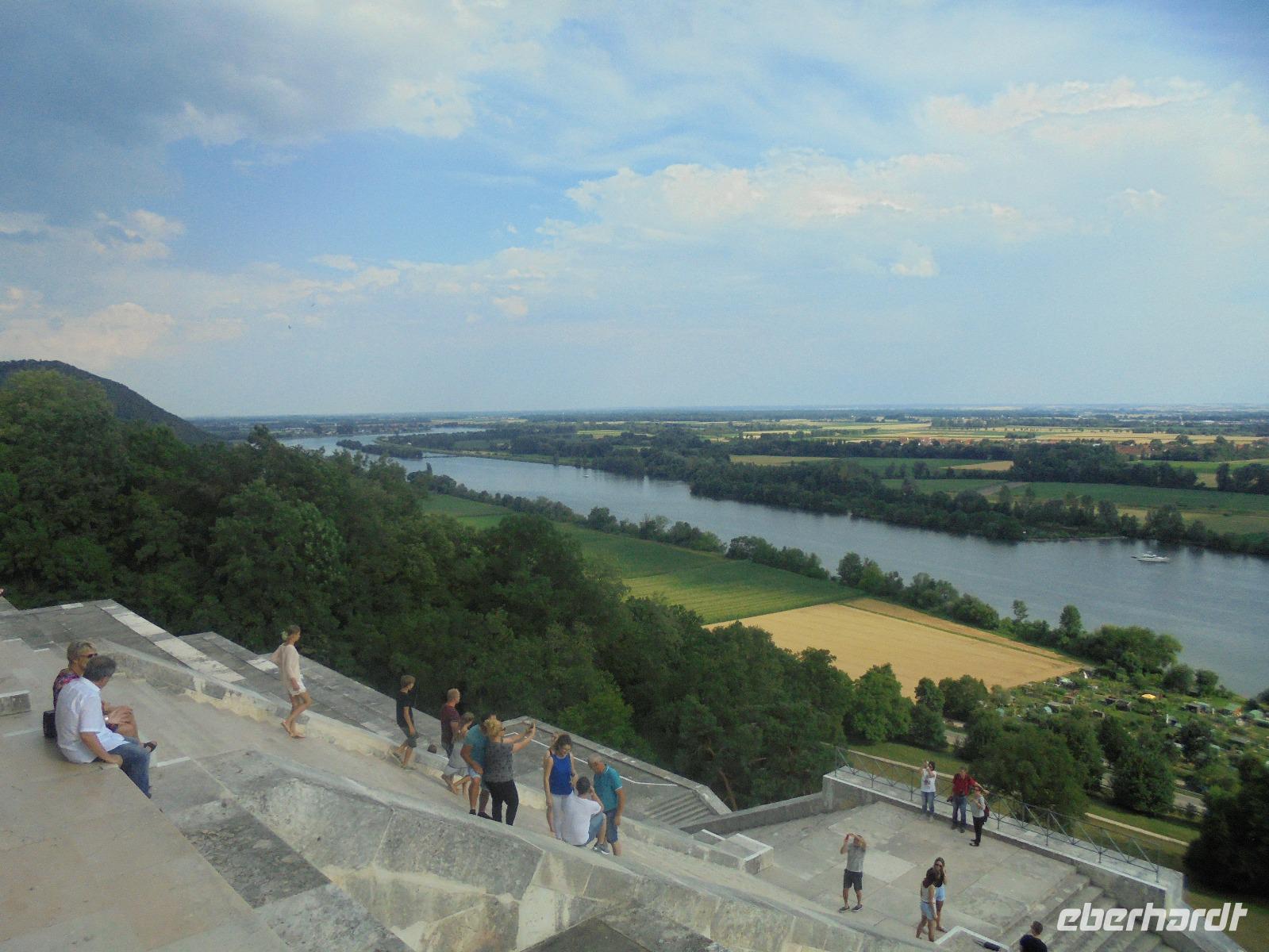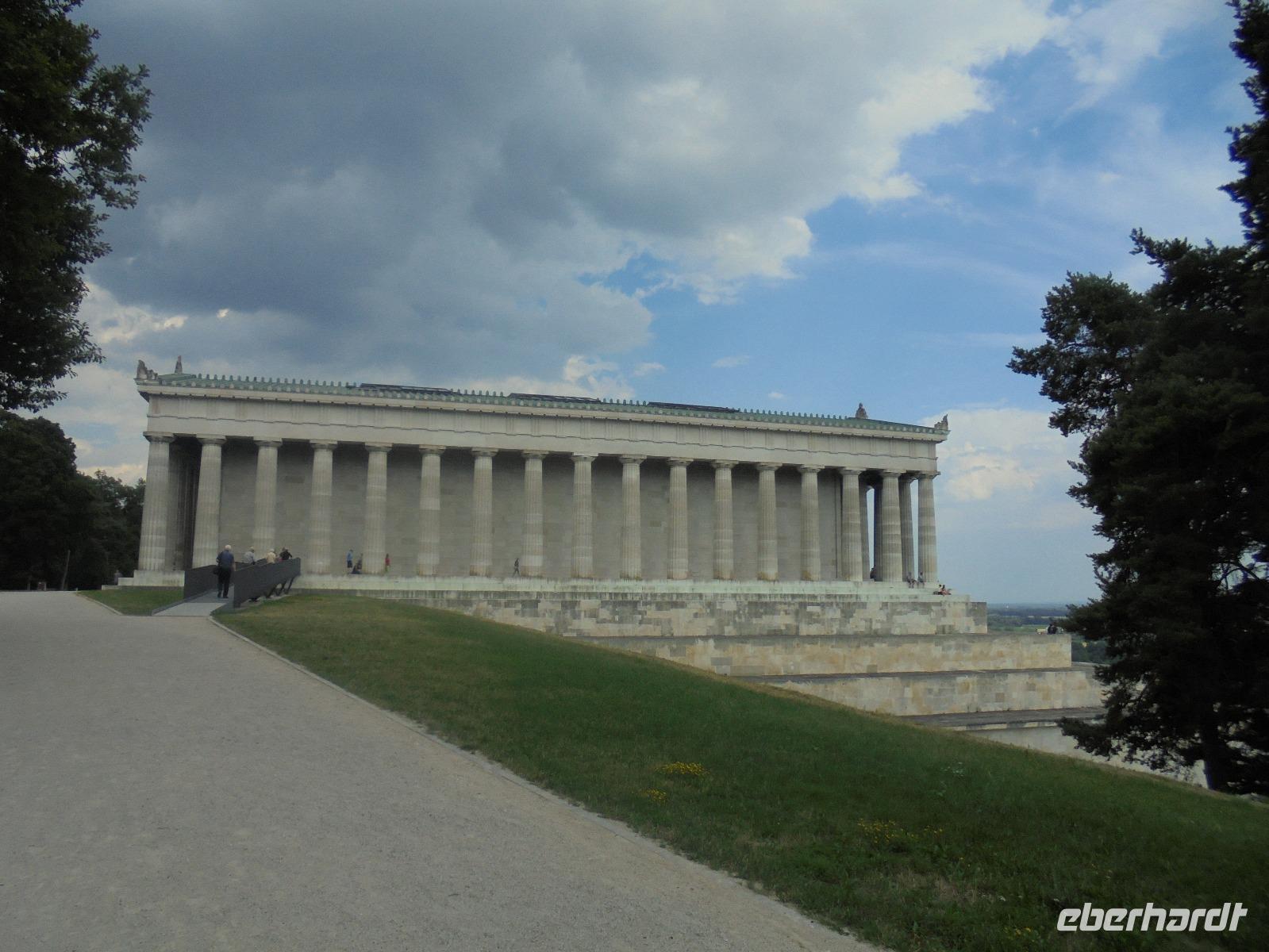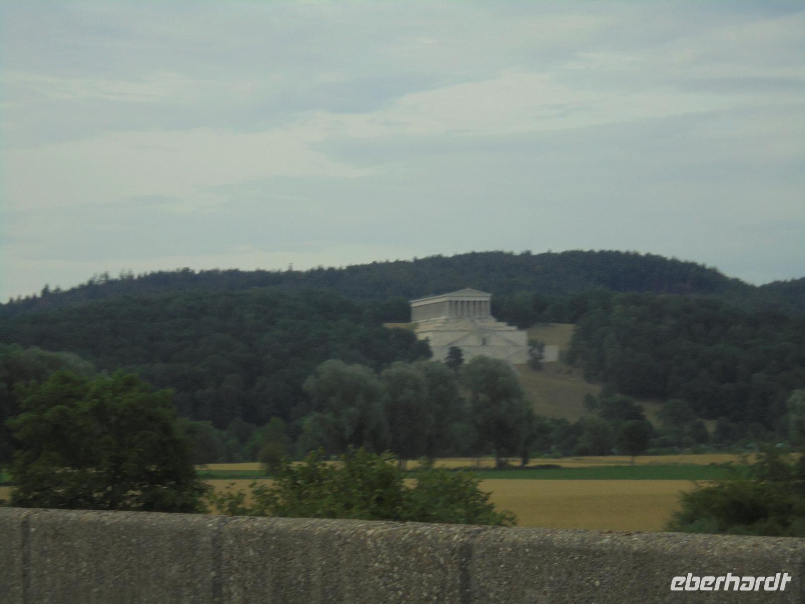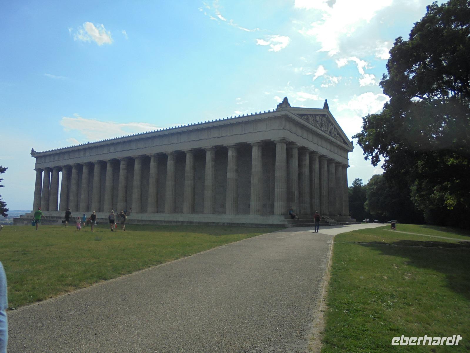Im Anschluss an unsere interessante Führung hatten wir etwas Freizeit und machten uns dann zum nächsten Besichtungspunkt auf, dem Kloster Weltenburg. Aber wir hatten noch etwas Zeit, legten einen Stopp am Mündungsdreieck der Altmühl in die Donau ein, wo auf dem hoch über die Donau ragenden Michelsberg die Befreiungshalle steht. Leider derzeit eingerüstet, ist sie ein von König Ludwig I. von Bayern in Auftrag gegebenes gewaltiges klassizistisches Denkmal zum Gedenken an die gewonnenen Schlachten gegen Frankreich in den napoleonischen Kriegen.