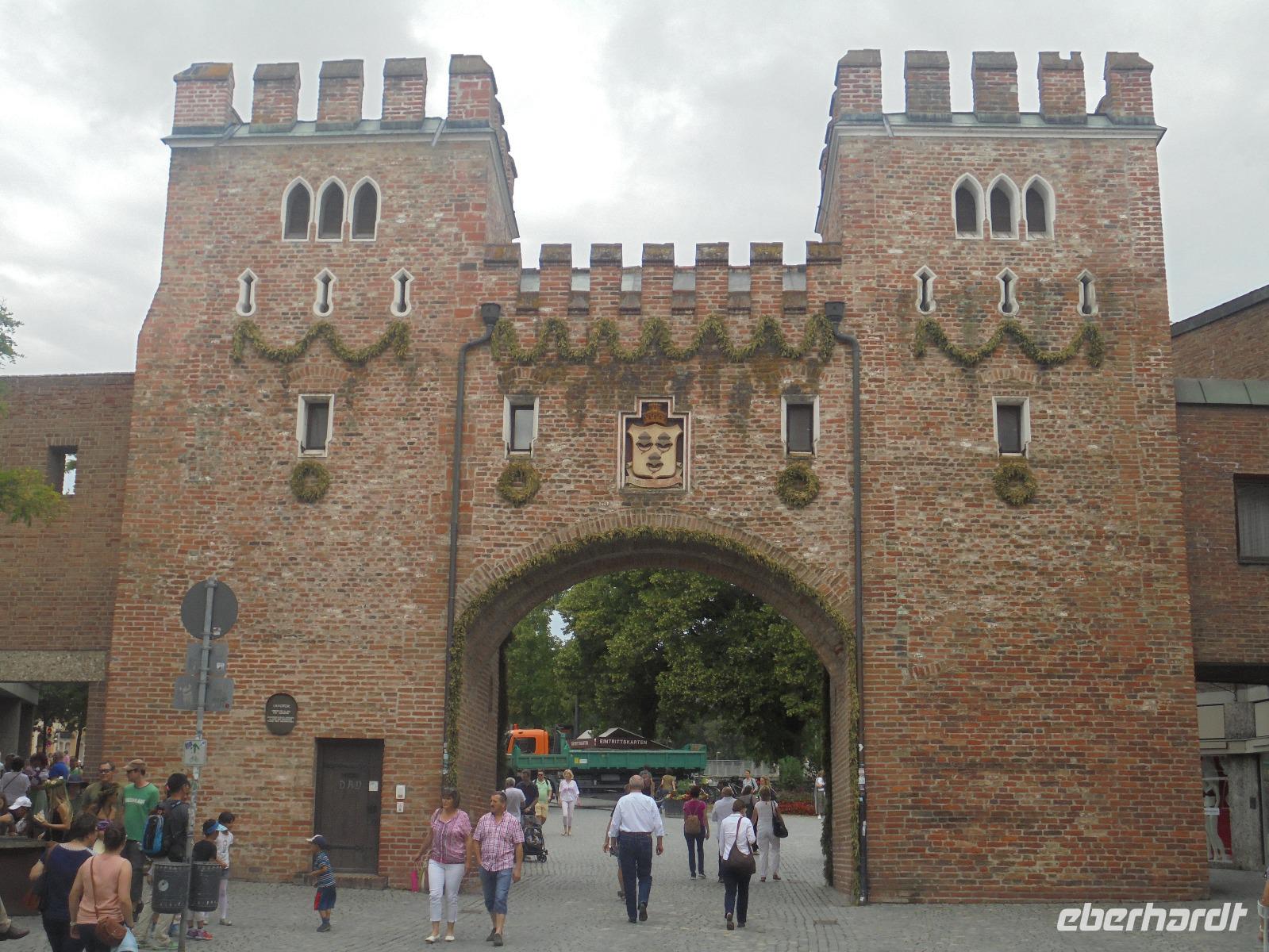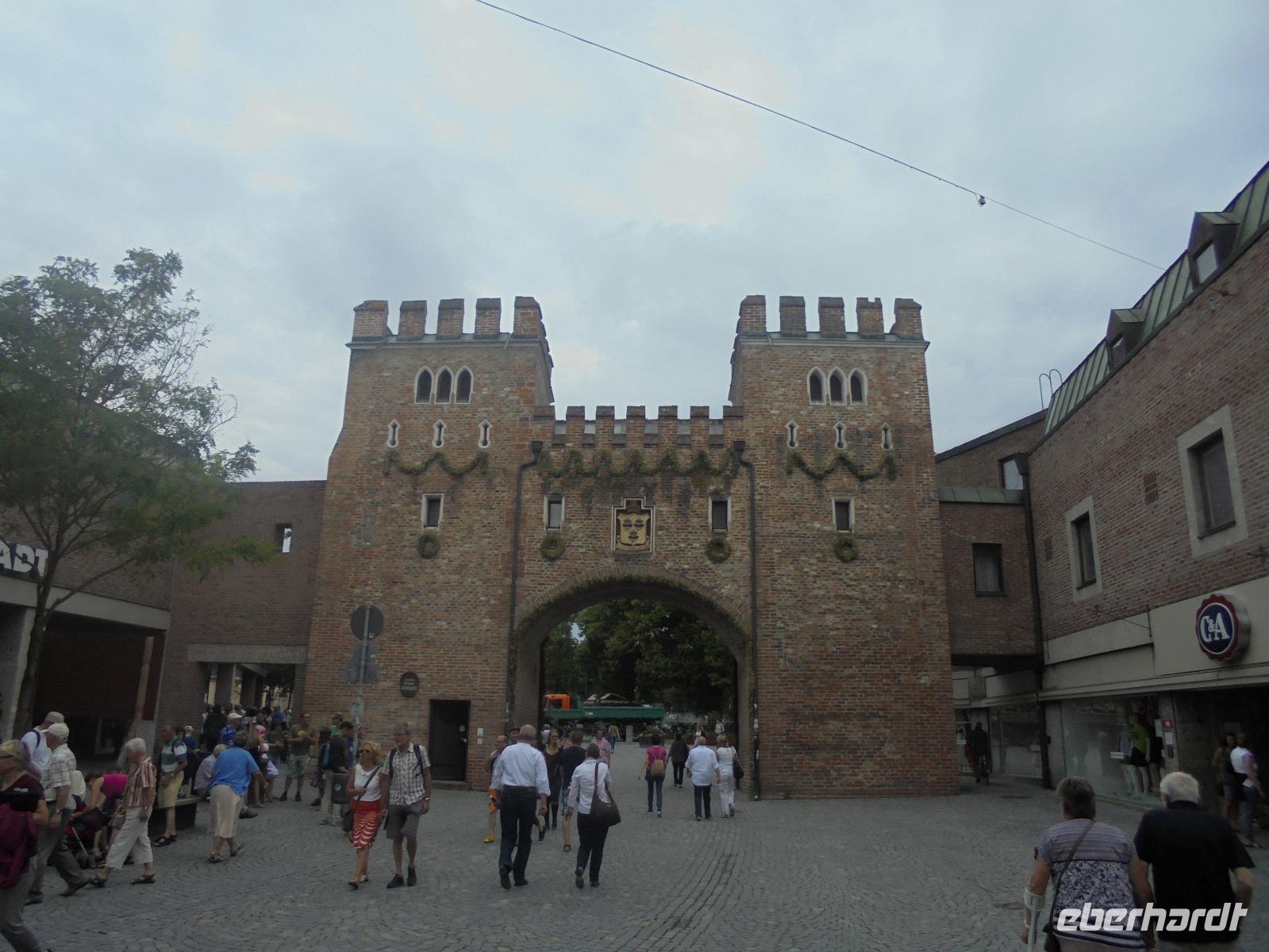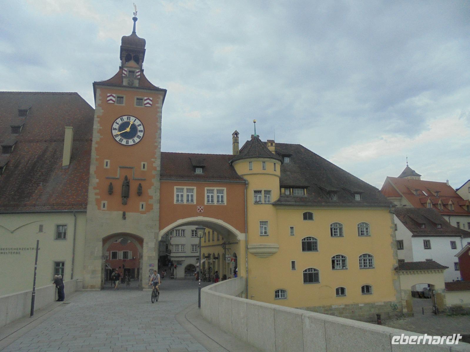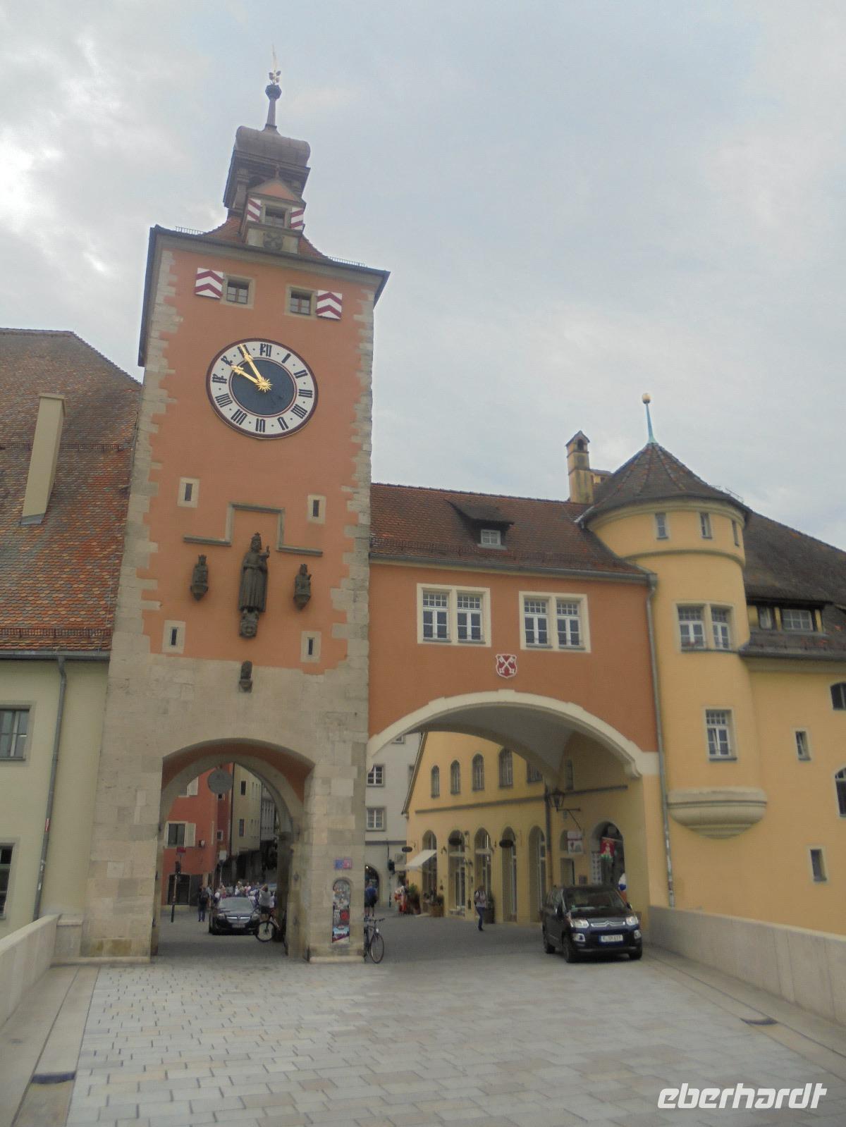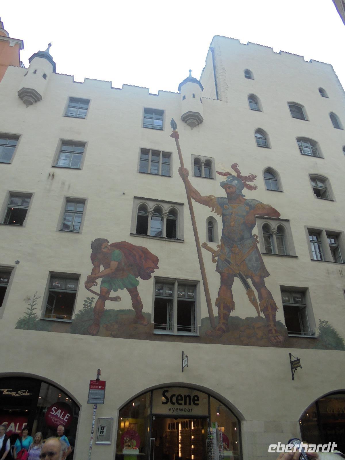 Durch den Turm des Brückentores gelangten wir dann in die Regensburger Altstadt, die auf ein im 1. Nachchristlichen Jahrhundert erbautes festes Römerkastell zurückgeht, von dem noch einige Reste, z.B. die Porta Praetoria erhalten sind - neben der Porta Nigra in Trier die einzige teilweise erhaltene römische Toranlage nördlich der Alpen. Auch der Name der Stadt geht wohl auf die Römer zurück.