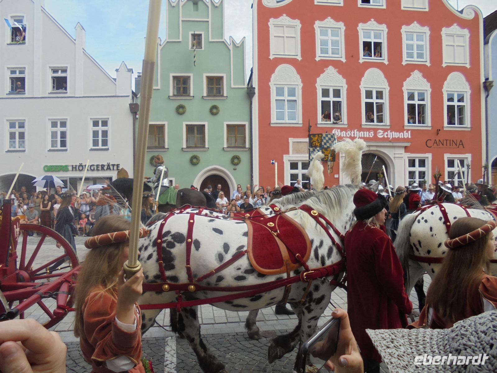 Der wurde von einer Art Show - 1903 erstmals mit knapp 150 Mitwirkenden aufgeführt - immer mehr zu einem möglichst originalgetreuen Dokumentarspiel. Mittlerweile ist nicht nur die ganze Stadt im „Hochzeitsfieber" und immer wieder flanieren historisch Gewandete durch die Massen der Schaulustigen, sondern es gehören weit über 2000 Mitwirkende dazu, die die Landshuter Hochzeit alle vier Jahre zu einem unvergesslichen Erlebnis machen.