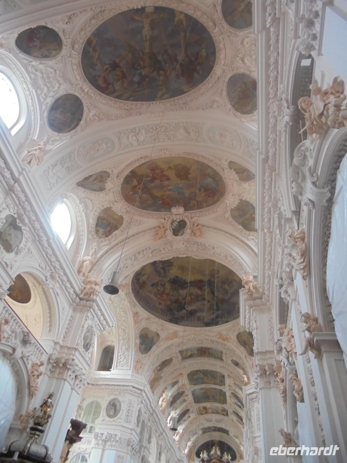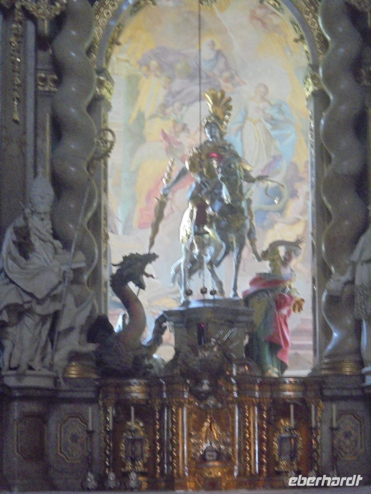 Heute hieß es Abschied nehmen von Bayern und von Donaustauf. Am Vormittag machten wir noch Station in Waldsassen, bekannt durch seine bedeutende barocke Stiftsbasilika. Erbaut als Abteikirche zwischen 1685 und 1704 wurde die Pfeilerbasilika 1969 zur „Basilica Minor" erhoben. Sie beherbergt nicht nur Deutschlands größte Kloster- und Kirchengruft, sondern verfügt auch über den reichsten barocken Reliquienschatz nördlich der Alpen. Bemerkenswert sind nicht nur die verschwenderisch gestalteten Stuckaturen, das reich verzierte Chorgestühl und die kunstvoll gestalteten Deckenfresken, die unter anderem Szenen aus der Gründungslegende des Klosters Waldsassen schildern, sondern vor allem eine Reihe reich geschmückter, in barocke Gewänder gekleidete Skelette hinter Glas, die das Hauptschiff verzieren. Sehr ungewöhnlich in dieser Art der Zurschaustellung wurden diese Reliquien als sogenannte „Katakombenheilige" aus der Tatsächlichen „Unterwelt" Roms hierhergebracht.