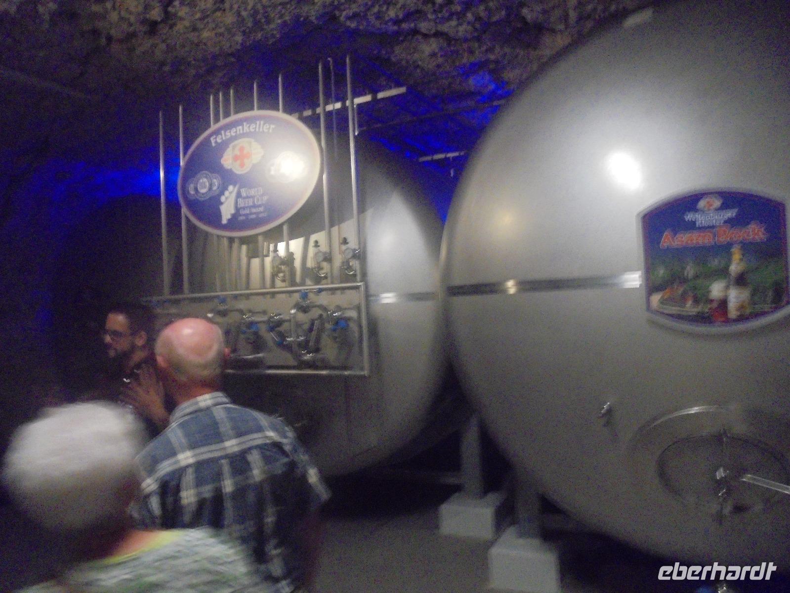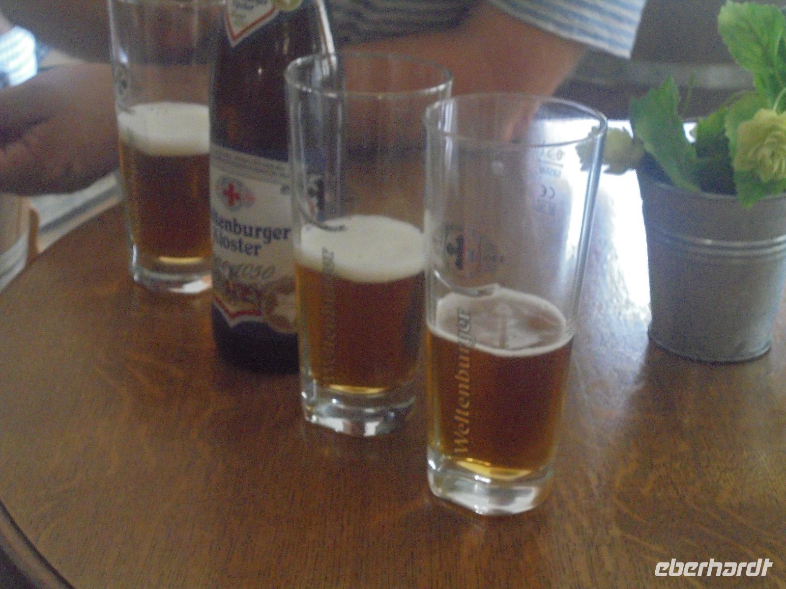 Von hier aus konnten wir uns noch ein schönes „Richtig-Reisen-Extra" gönnen: zu Füßen der Befreiungshalle bestiegen wir ein Donauschiff und gelangten „zu Wasser" durch den weithin bekannten Donaudurchbruch bei Weltenburg, eine malerische und legendenumwobene Engstelle des Donautales. Dieses Naturwunder lässt sich am besten tatsächlich vom Boot aus bestaunen, die in Jahrzehntausenden durch das Flusswasser geformten und geschliffenen Felsen sind sehr eindrucksvoll. Dann erreichten wir das Kloster Weltenburg, eine idyllisch gelegene Benediktinerabtei, die itunter als das älteste Kloster Bayerns bezeichnet wird, auch wenn sich das historisch nicht astrein belegen lässt. Hingegen lässtr sich belegen, dass hier seit 1050 durch dier Mönche Bier gebraut wurde, weswegen Weltenburg damit wirbt, die älteste Klosterbrauerei der Welt zu sein. Bei einer Führung mit anschließender Verkostung lernten wir sie näher kennen. Inzwischen mit modernen Brauanlagen ausgestattet, werden dennoch die alten Rezepturen verwendet, was den Erzeugnissen der Weltenburger Klosterbrauerei ständig neue und fast immer internationale Auszeichnungen verschafft. Auch wir konnten uns von der Qualität des hiesigen Gerstensaftes überzeugen und durften sogar unser Probierglas mitnehmen.