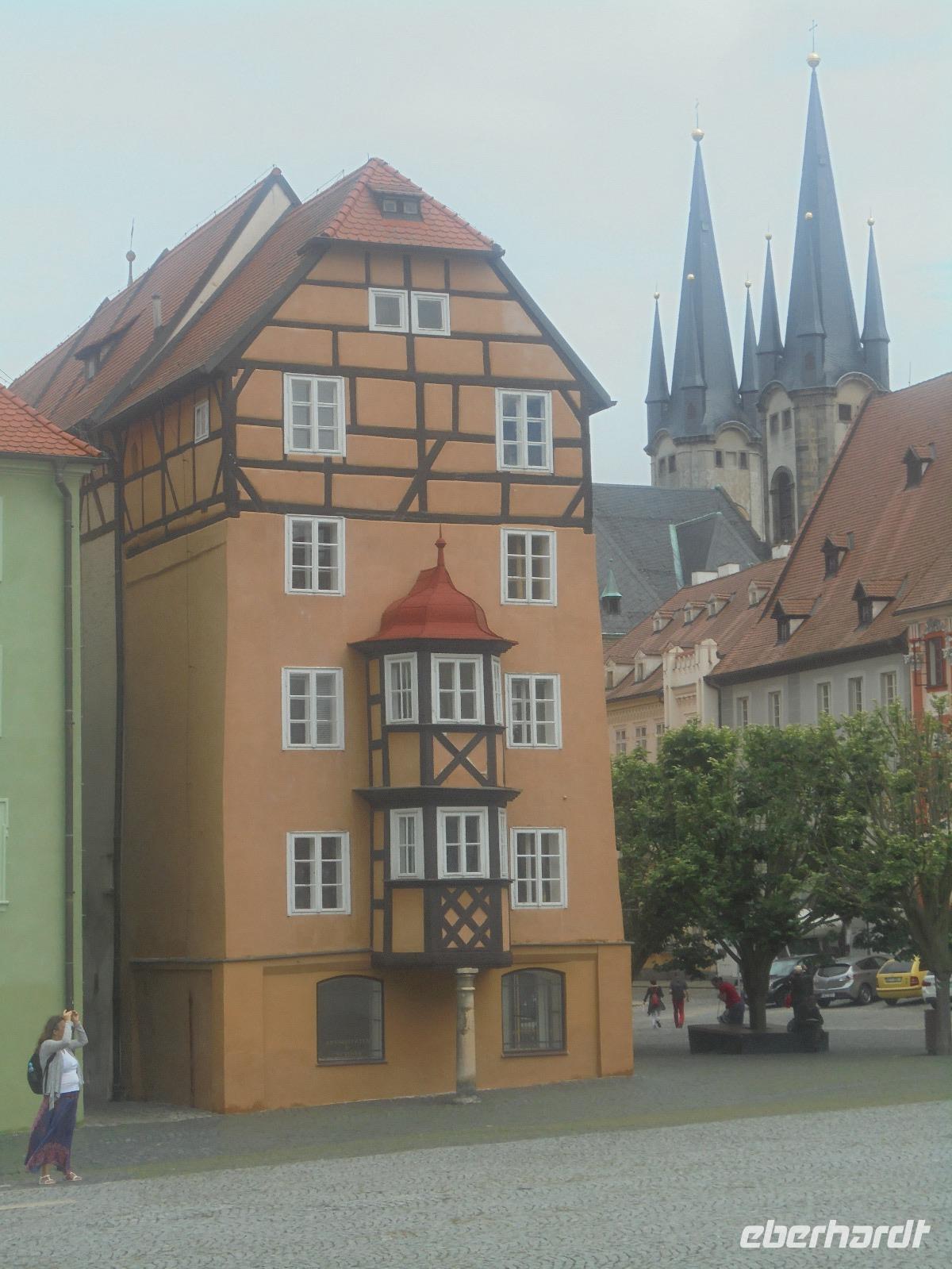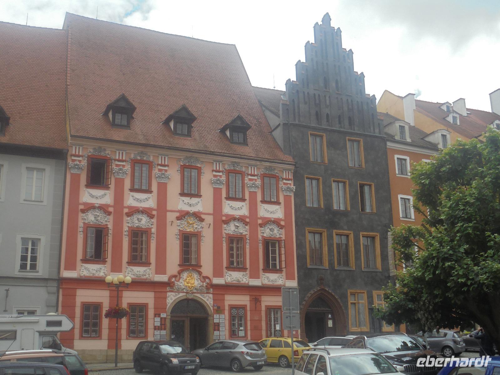Die böhmische Stadt Cheb, früher Eger, liegt gleich hinter der deutsch-tschechischen Grenze. Sie entstand neben der romanischen Kaiserburg und Pfalz, von der noch Reste erhalten sind und besticht vor allem durch ihren inzwischen gut restaurierten, großflächigen Marktplatz, der ursprünglich aus dem 13. Jh. stammt und von vielen Patrizierhäusern und interessanten Gebäuden aus den Zeiten der Gotik, Renaissance und dem Barock umstanden sind. Ein barockes Rathaus, gestaltet von einem italienischen Architekten, geschichtsträchtige Gruppen von Häusern aus spätgotischer Zeit und ein berühmter Gebäudekomplex, in dem einst jüdische Händler wohnten kennzeichnen den Egerer Markt. Jener Gebäudekomplex wirkt etwas bizarr: für die damalige Zeit sehr hoch gebaute Häuser mit dem „Spalicek", dem sogenannten „Egerer Stöckl", einem malerischen Fachwerkhaus mit mehrstöckigem Stelzfußerker.
