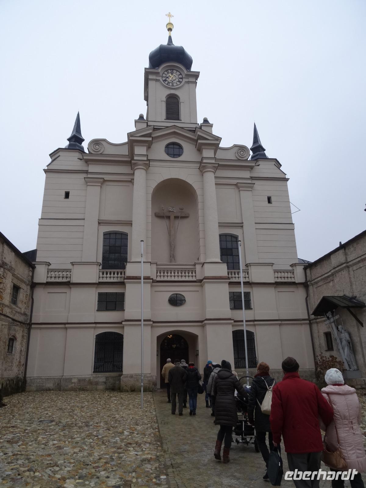 Nach einem guten morgendlichen Frühstück erwartete Sie bereits die Stadtführerin Pamella zur Besichtigung. Es war an diesen Morgen etwas frisch und feucht. Die Temperaturen liesen die Wege und Stege in glatte nicht gut begehbarer weise überfrieren. Die Reiseleiterin und das Busteam entschieden die Besichtigung etwas zu ändern, um Sicherheit für alle Reiseteilnehmer zu sichern. Der Reisebus startet gegen 9.30 Uhr zuerst zur Rundfahrt ins Gewerbegebiet vor den Toren der Stadt. Die größten Betriebe wie Wacken und Raffenerie befinden sich dort und geben der Stadt damit die Sicherheit für Arbeitsplätze bis hin nach Österreich. Auch der Güterbahnhof mit den Kontainerumschlag konnte in Augenschein genommen werden. Danach fuhren Sie zur Klosteranlage Raitenhaslach. Bei einer ausführlichen Erklärung von Reiseleiterin Pamella wurde die Klosteranlage , der Kreuzgang , der Garten und die Kirche zu einem wahren Erlebnis. Danach fuhr der Bus noch zum Marienberg mit Kirche. Einige Reiseteilnehmer liesen sich trotz schlechter Begehbarkeit durch Glätte es nicht nehmen auch dieses Kleinod anzuschauen. Aus Sicherheitsgründen wurde die Burg Burghausen nicht angefahren, sondern es ging zur Altstadt. Nach fast drei Stunden Rundfahrt und Besichtigung verabschiedete sich die Reiseleiterin Pamella. Es war eine sehr informative Zeit und es hätte noch lange so weiter gehen können.