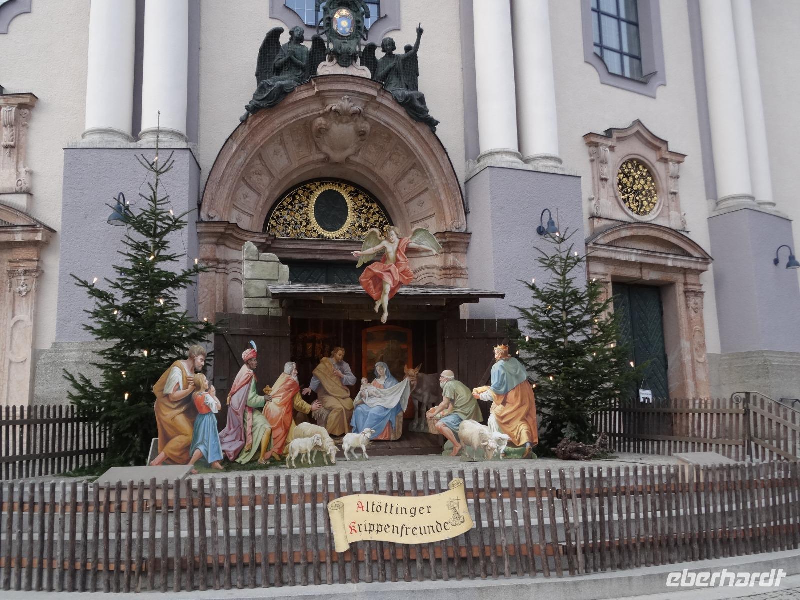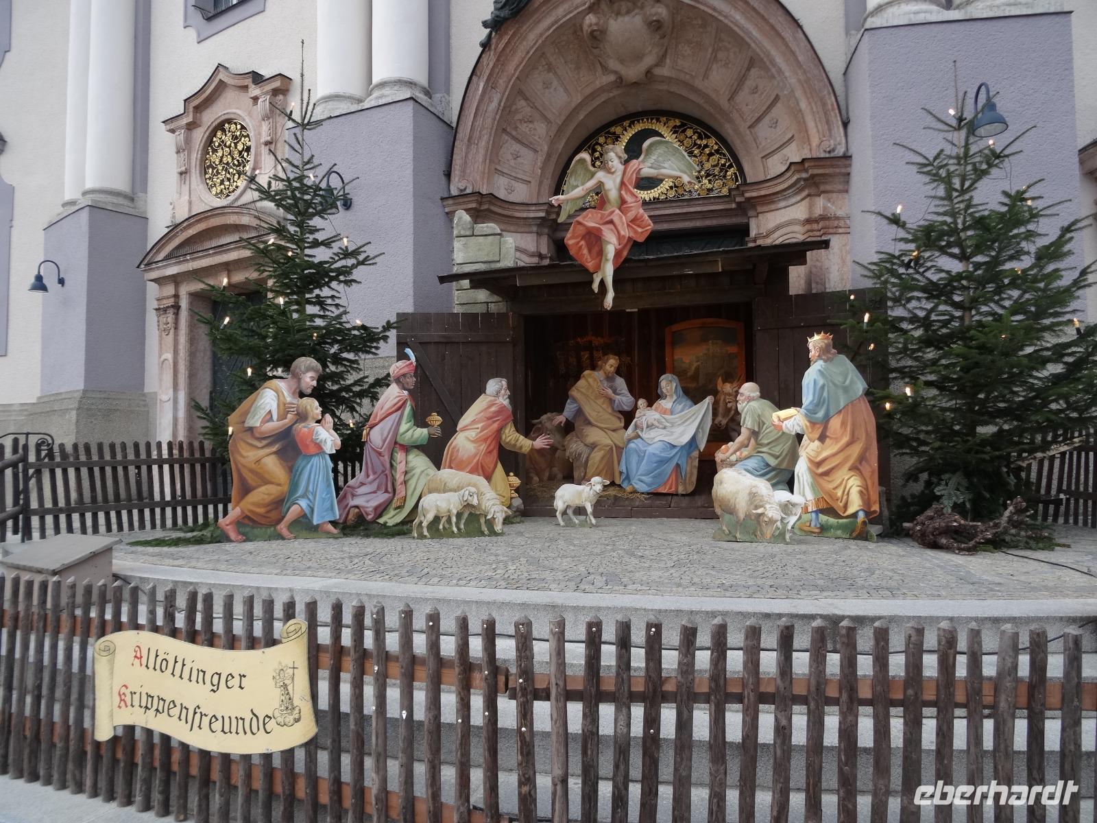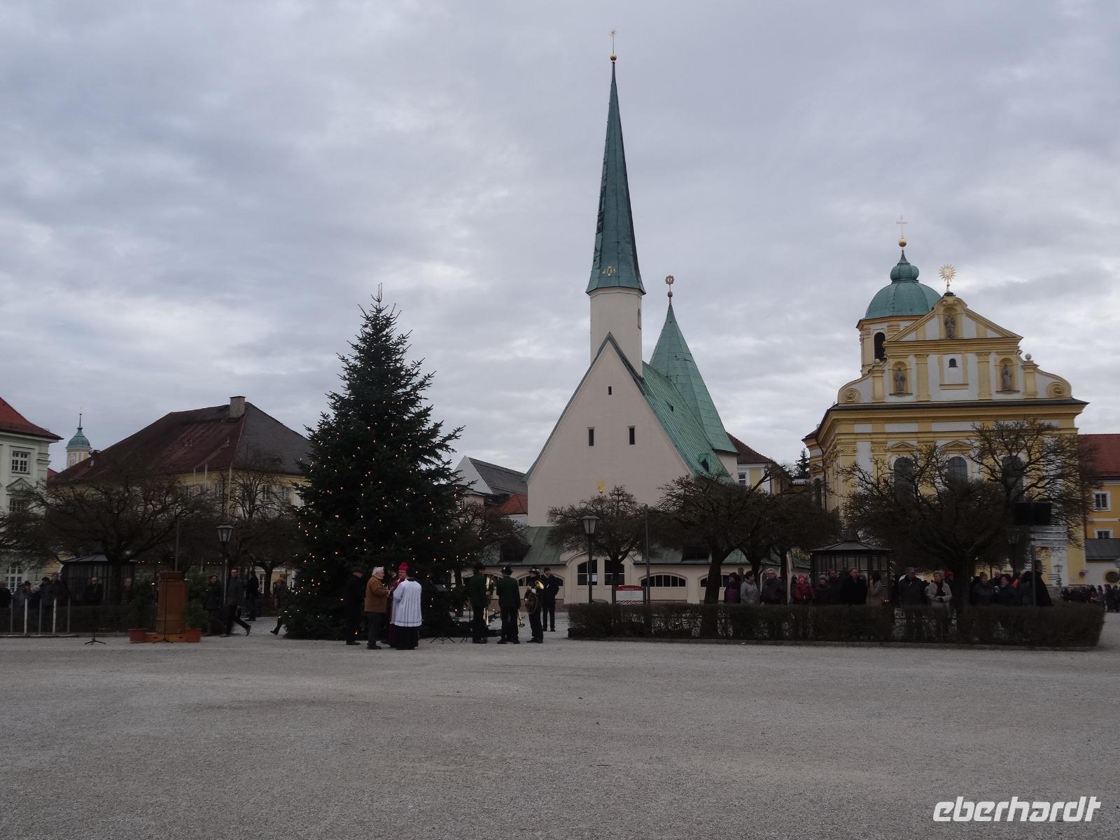 Bereits 9.00 Uhr begann der 2.Weihnachtfeiertag mit der Abfahrt nach Marktl am Inn. Der Besuch des Geburtshauses von Josef Aloisius Ratzinger , geboren am 16.April 1927.Das Haus konnte von außen besichtigt werden , daneben befand sich das Heimatmuseum , in diesem befinden sich Geschenke von Papst Benedikt XVI. Eine Stehle als Schriftrolle wurde ebenfalls aufgestellt. Marktl am Inn ist sehr stolz auf den Papst Benedikt XVI. Der Besuch der St. Oswald Kirche war ebenfalls sehr interessant. Es wurde das wieder aufgestellte Taufbecken besichtigt , wo Josef Ratzinger getauft wurde. Im Anschluss fuhren Sie zum Wallfahrtsort Altötting. Am Rathaus am Kapellplatz wurden wir vom Stadtbilderklärer Klaus Loichinger erwartet. Mit sehr großem Interessen wurde den Erklärungen gelauscht. Die historischen Gebäude von den Wallfahrten und der reichen Geschichte um die Gnadenkapelle bis hin zur Tillykapelle waren mit den Informationen überwältigend. Nach diesen Ausführungen brachte Sie der Stadtführer zum Jerusalem Panorama.der Kreuzigung Christi. Leider war diese aus nicht geklärten Gründen geschlossen. Zur Entschädigung wurde durch Ihn ein weiterer Besichtigungspunkt zur Stiftskirche St. Philippus und Jakobs ergänzt. Die verbleibende freie Zeit nutze jeder Reiseteilnehmer für eigene Besichtigungen um den Kapellplatz. Gegen 14.00 Uhr war dann der Höhepunkt des Tages. Es begann der Stephanie-Ritt. 120 Pferde und Personen und 3 Festwagen nahmen an dem Ritt teil. Bei schönstem Wetter war es ein besonderer Höhepunkt . Nach der dreimaligen Umrundung des Kapellplatzes wurden die Pferde und Personen gesegnet. Rückankunft im Hotel Bayrische Alm.17.30 Uhr. Zum Abendbrot erwartete Sie ein nochmaliges leckeres Weihnachtmenü für den 2. Weihnachtsfeiertag. Die guten Speisen und die Gemütlichkeit, liesen diese Weihnachts-Tage ausklingen.