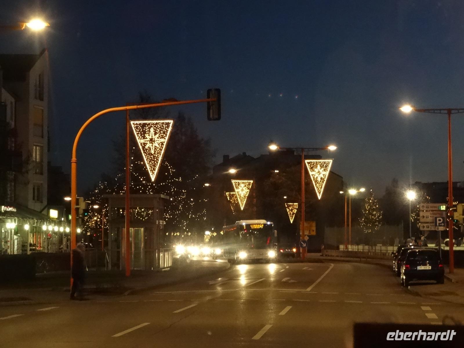 Entlang der A3 Richtung Passau boten sich schöne Ausblicke auf die Walhalla - und die Donau. Mit der Ausfahrt Straubing ging es über die B20 an verschiedenen kleinen Orten nach Burghausen. Kurz vor dem Ort selbst bot sich zu später Stunde bereits die Industrieanlage in vollem Lichterschein (Wacker - Industrie + Raffenerie). Ankunft bereits 16.45 Uhr im Hotel und Sie wurden bei Glühwein auf der Terrasse begrüßt.Im Anschluß wurde 18.00 Uhr das erste Abendessen serviert. Ebenso wurden die Reisegäste, die vor Ort diese Tage verbrachten begrüßt . Es erfolgte noch die Absprache für den nächsten Tag.