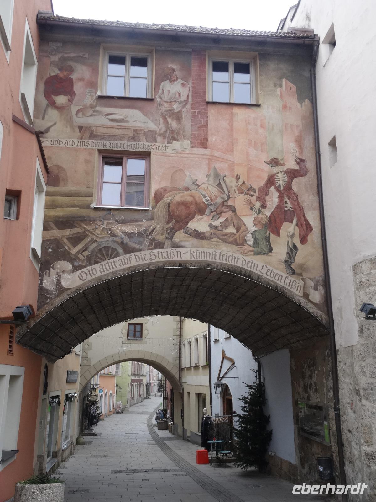 Der Reisebus startete ab Dresden und es wurden zu den weiteren Zustiegen die Reiseteilnehmen pünktlich aufgenommen. Die Fahrt führte Sie entlang der Autobahn A72 zum Kreuz Hochfranken zur A 93. Diese führte Sie mit einer Toilettenpause am Fichtelgebirge - den Orten Hof , Wunsiedel, Marktdrewitz , Alexanderbad nach Regensburg. Am Busterminal , an der Steinernen Brücke angekommen - spazierten Sie in die Altstadt. Ein wunderschöner Blick über den Donauarm auf das Burgtor und zur alten Historischen Wurstküche boten sich. Einige Reiseteilnehmer nutzten die Gelegenheit gemeinsam mit der Reiseleiterin einen Stadtrundgang zu unternehmen. Es wurde der DOM St. Peter innen besichtigt , weiter der Neumarkt mit Kirche und der Rathausplatz mit Neuem und Alten Rathaus. Weiter zur Donau mit Blick auf die Steinerne Brücke und Ende an der Historischen Wurstküche mit den Hochwassermarkierungen. Wer mochte konnte auch die typischen Würstchen zum Mittag probieren. 14.30 Uhr startete der Reisebus zur Weiterreise nach Burghausen.