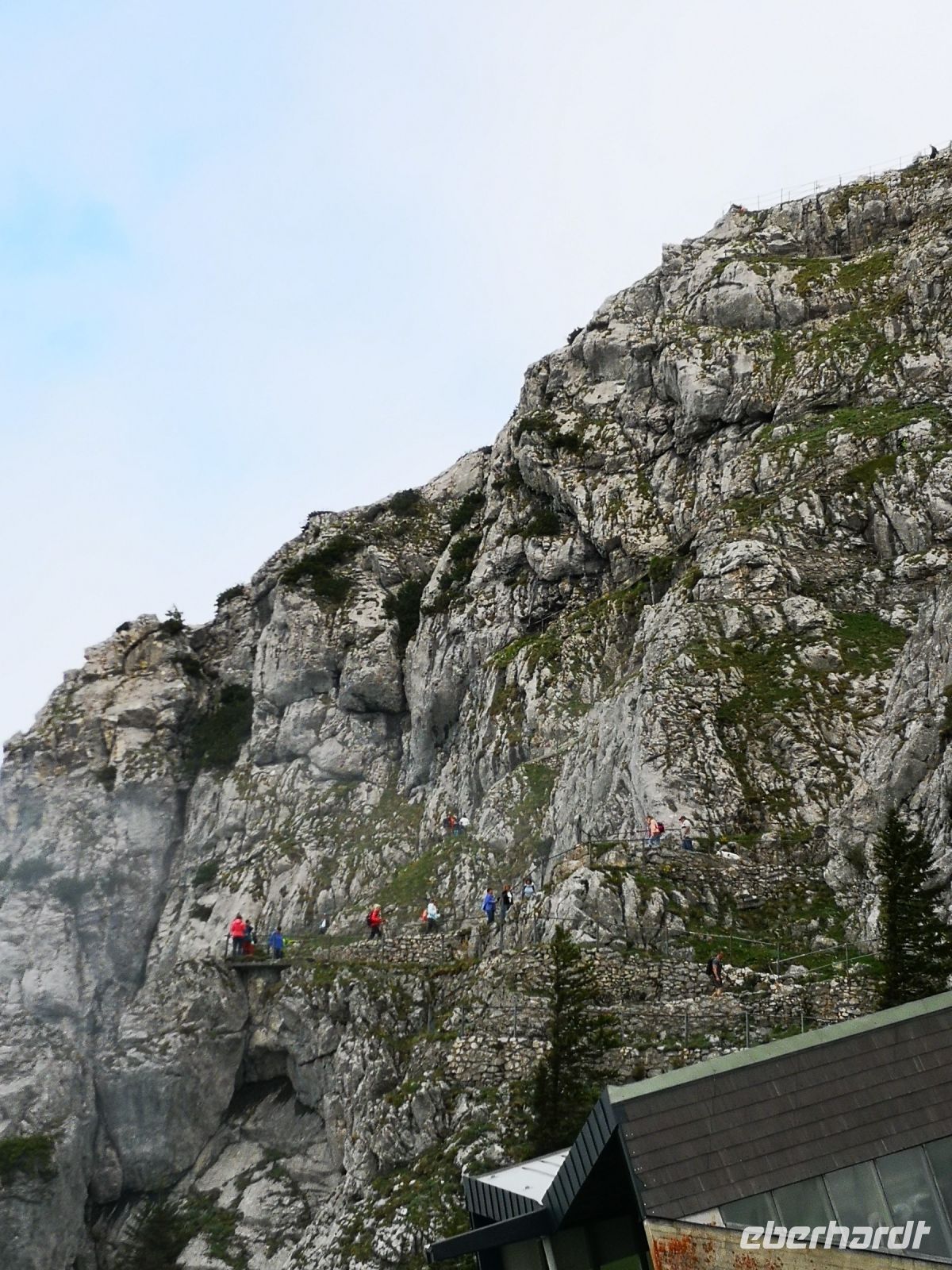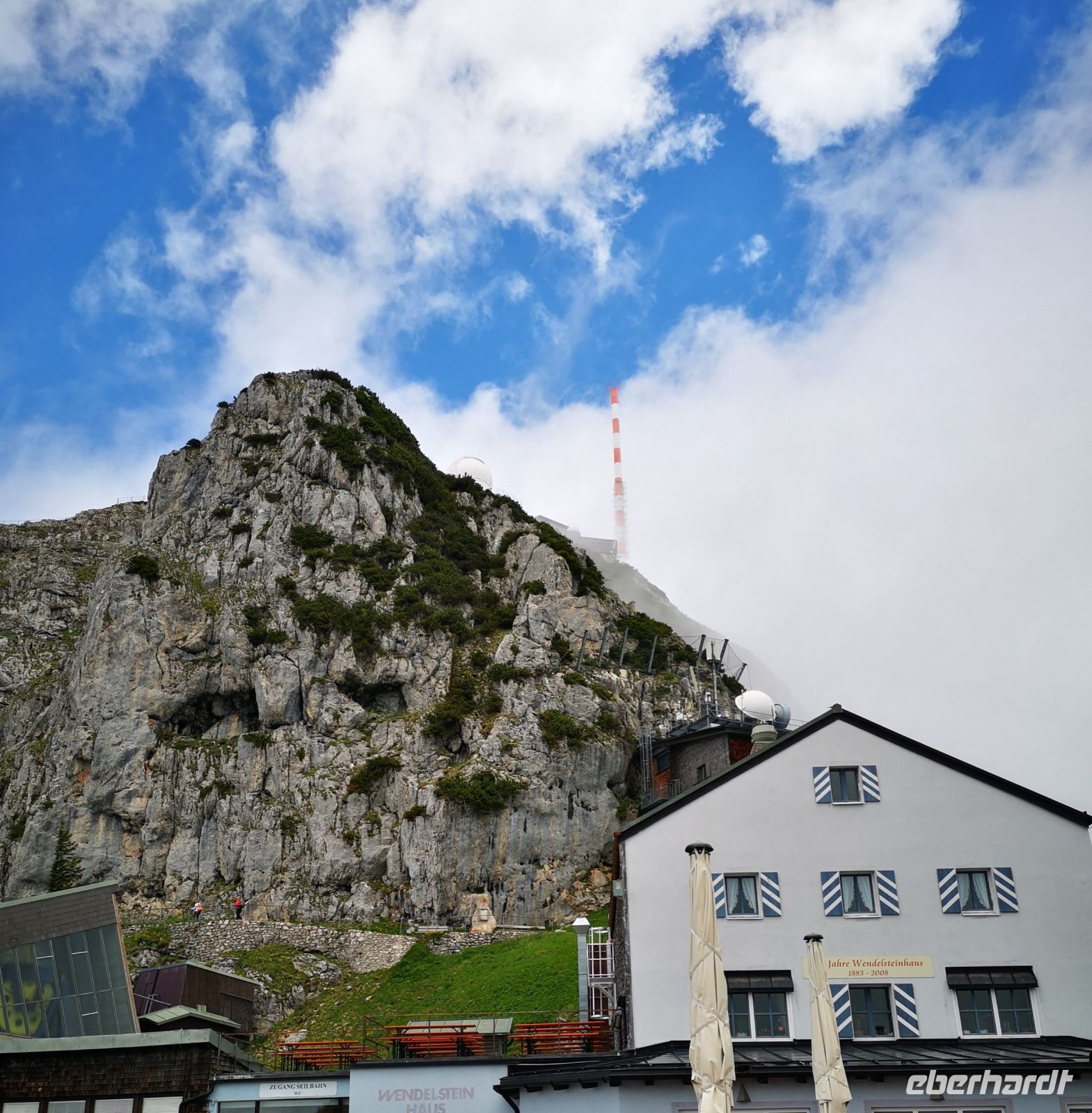 Mit der Zahnradbahn fuhren wir hinauf und genossen erst mal von verschiedenen Aussichtspunkten den wundervollen Ausblick, das Wetter meinte es immer noch gut mit uns. Dann konnte jeder , wie er Lust hatte, eigene Erkundungen durchführen zum Wendelkirchel, die höchstgelegene Kirche Deutschlands, die 1890 geweiht wurde,zur ehemaligen Wetterwarte oder sogar zum Gipfelweg, der wohl aus Zeitgründen für die meisten ausbleiben musste, schade.