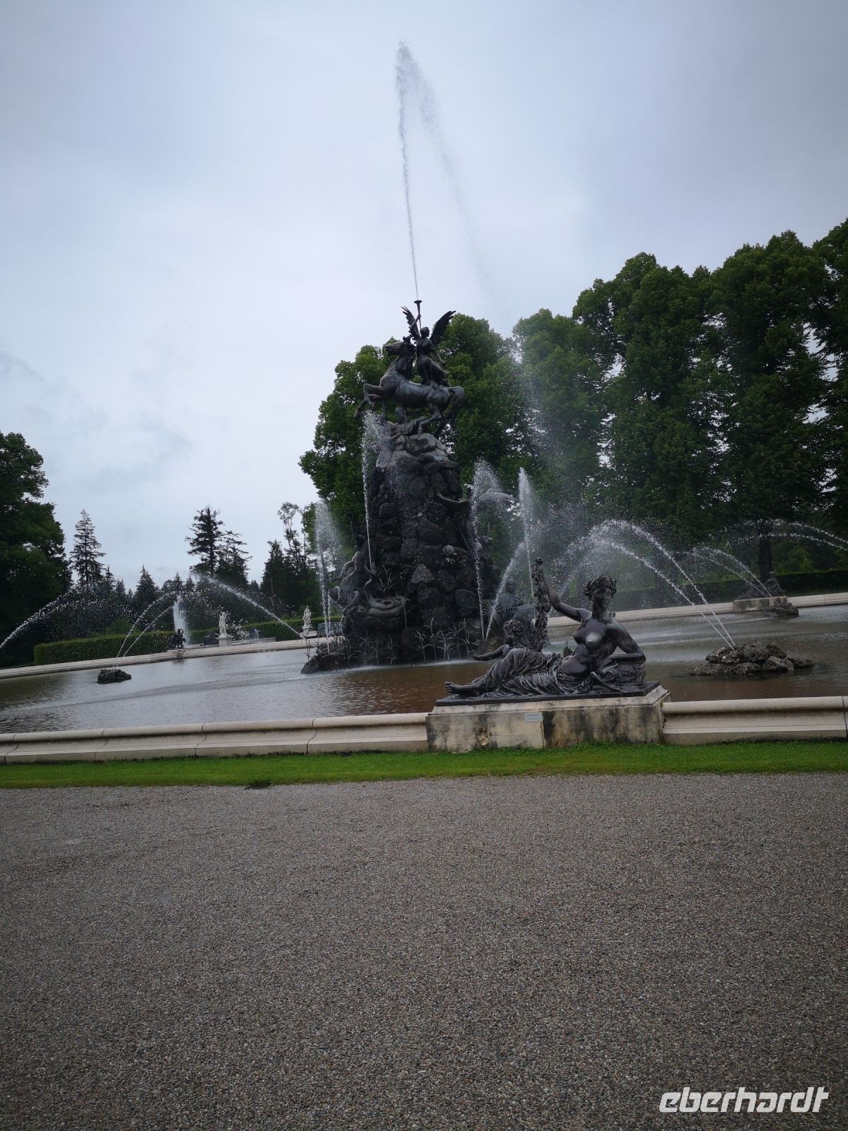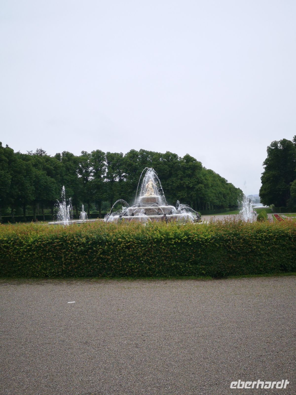 Leider konnten wir den wundervollen Park durch das schlechte Wetter nicht richtig genießen, aber seine Schönheit konnte uns auch dadurch nicht entgehen. Bis zum Tod Ludwigs II. war nur die Mittelachse mit ihren Wasserspielen fertig gestellt.