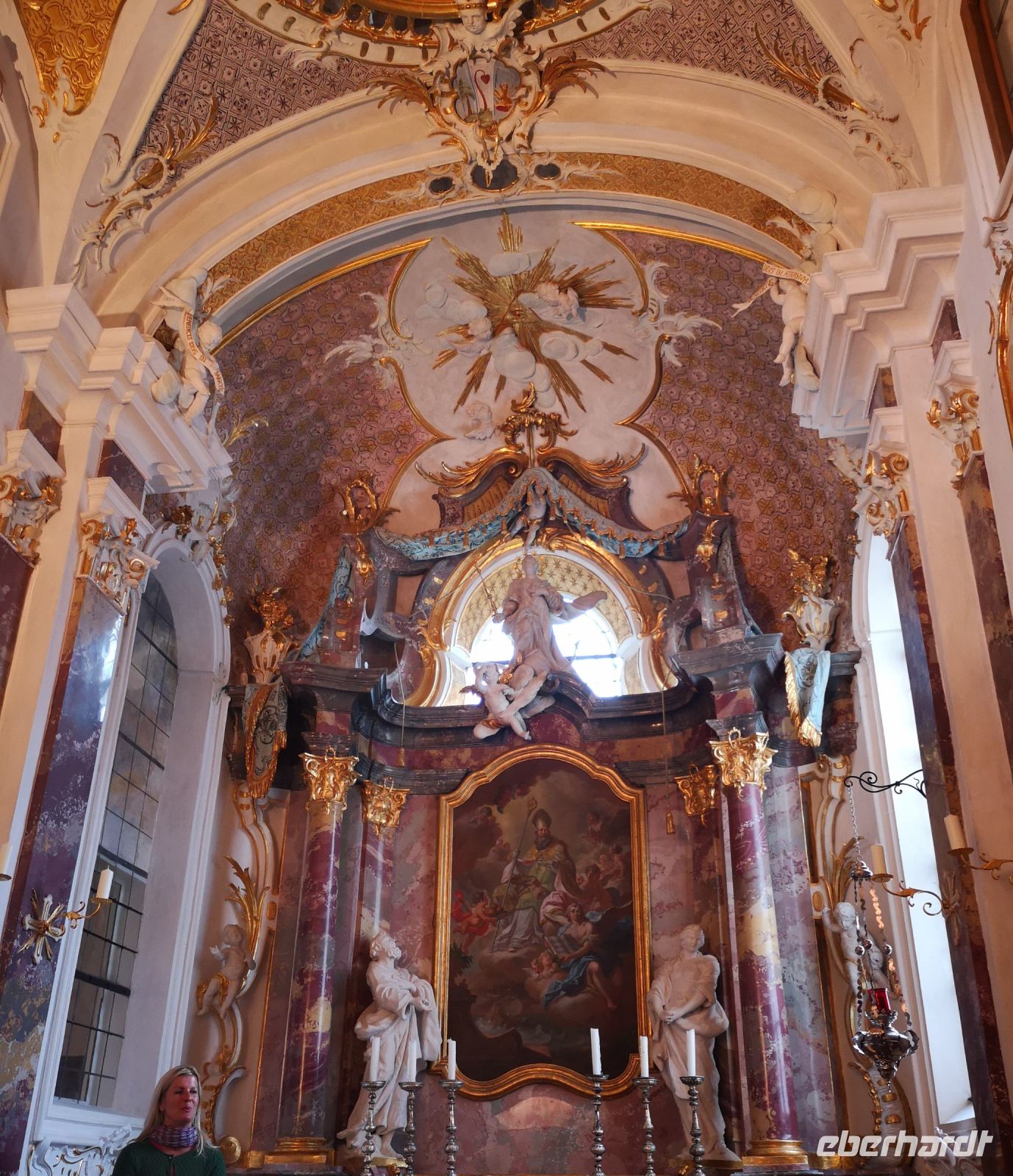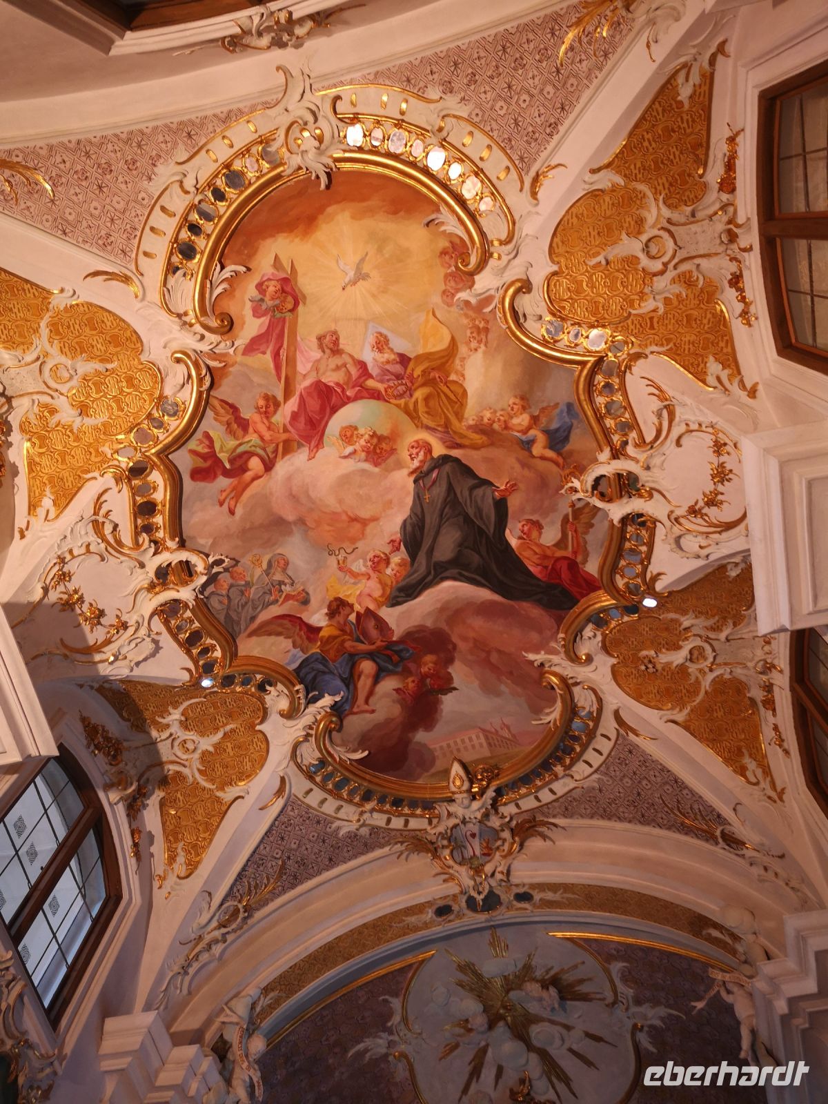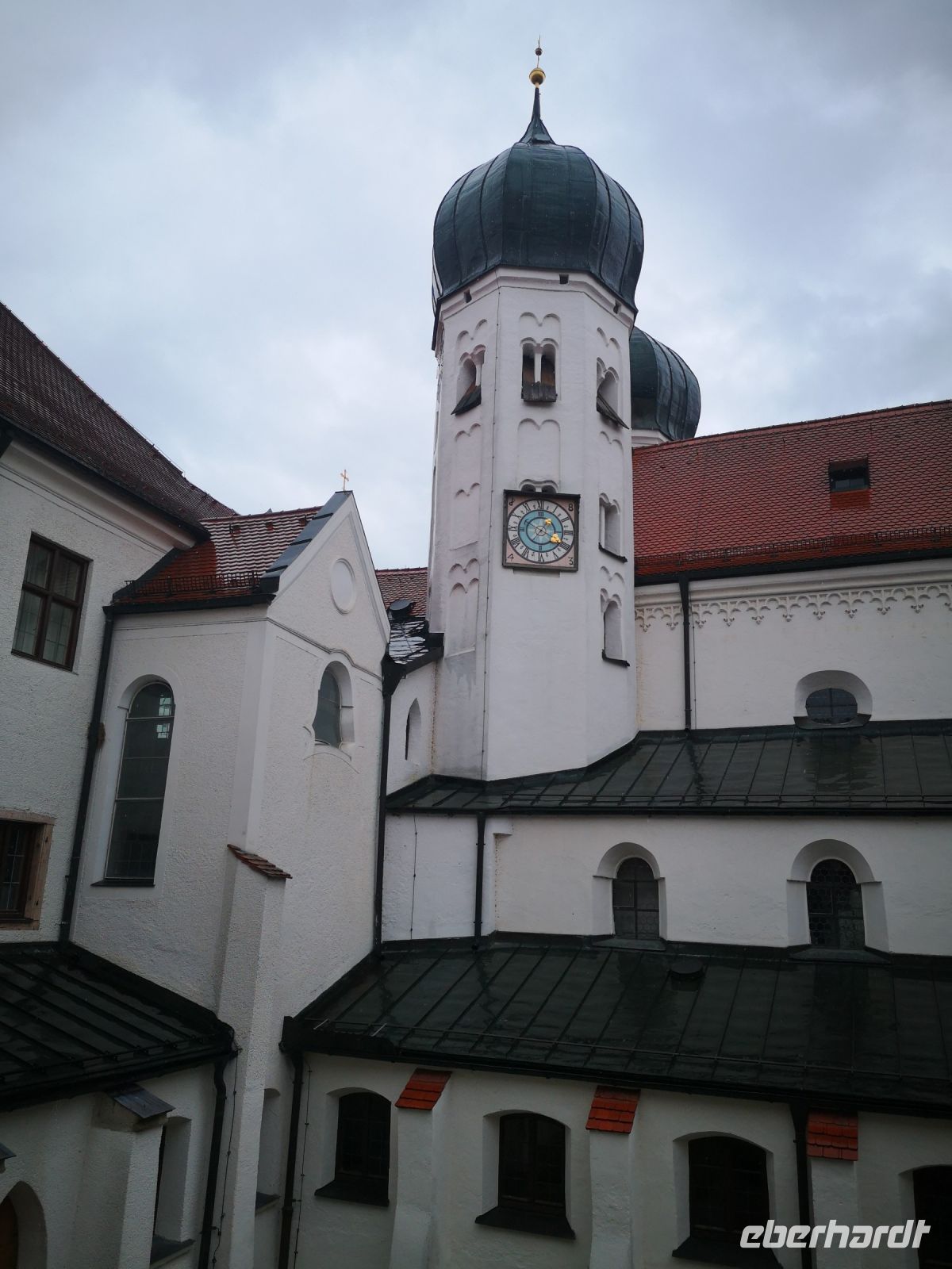 Auf dem Rückweg bewunderten wir noch das ehemalige Benediktinerkloster, das heute ein Schloss und nicht zu besichtigen ist, es befindet sich im Besitz der Wittelsbacher. Gleich daneben gelegen die ehemalige Klosterkirche, Pfarrkirche St. Qirinus, die sich einige Gäste auch von innen angesehen haben.