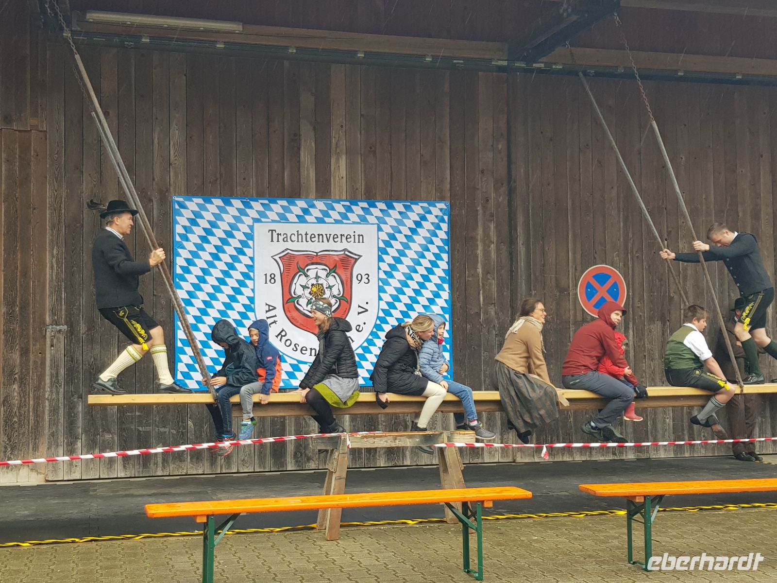 Gemeinsam mit der Single-Wanderreise fuhr unser Bus zunächst bis München ( Allianz-Arena). Während die Wandergruppe mit dem Bus weiterfuhr, wurden wir von 2 Shuttles bis zu unserem Landgasthof und Hotel "Happinger Hof" gebracht. Dort warteten bereits 2 Gäste, die selbst angereist sind. Da wegen unserer frühen Ankunft noch nicht alle Zimmer fertig waren, verabredeten wir uns trotz Regen auf einen Spaziergang zur Kirta ( Kirchweih). Spätestens dort wurde uns klar, warum unser Hotel vor Gästen fast aus den Nähten platzt. Hier wird traditionell gefeiert und da ist Jedermann mit Kind und Kegel dabei.