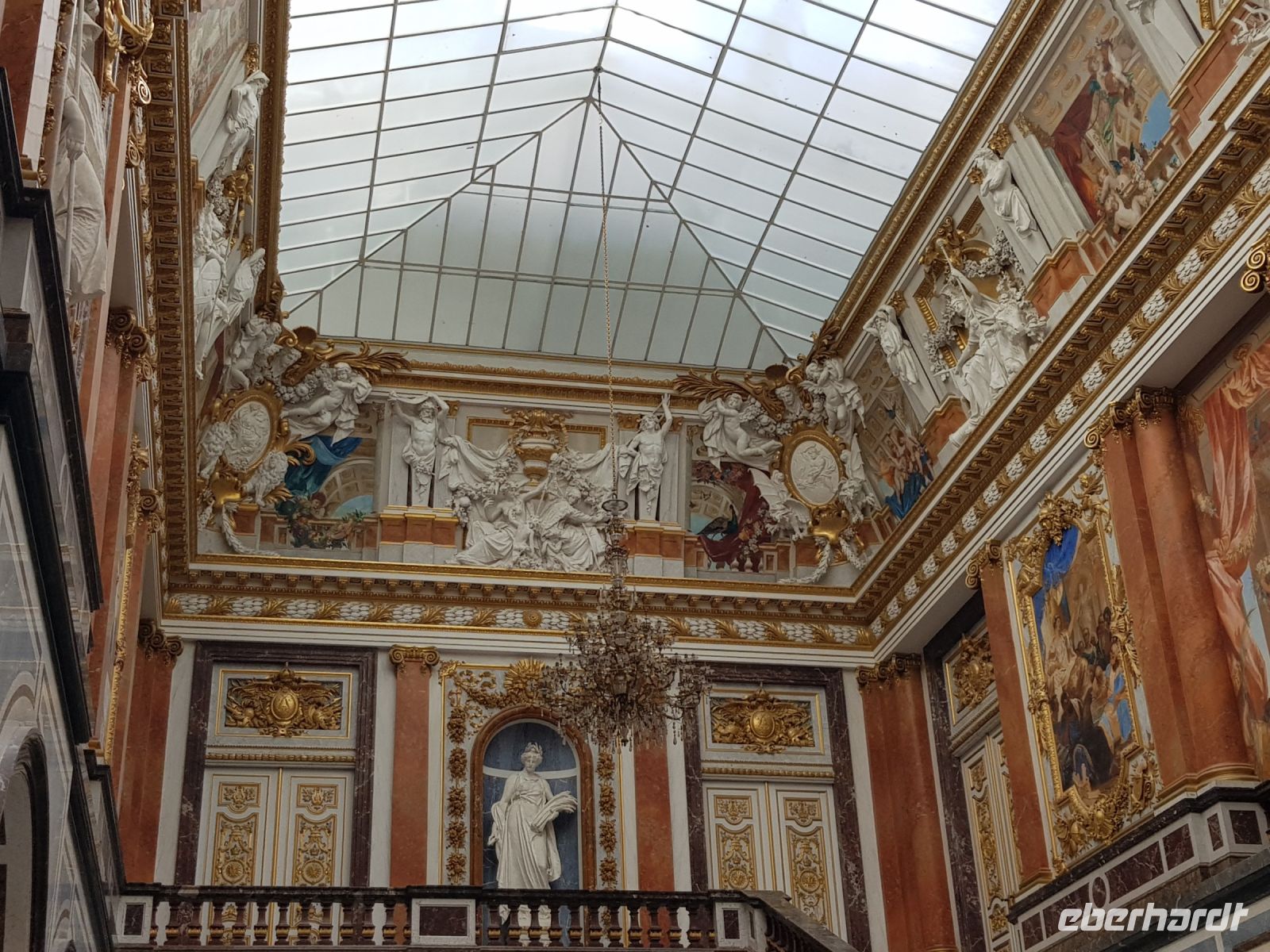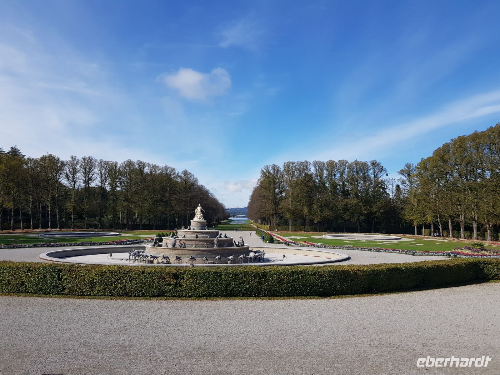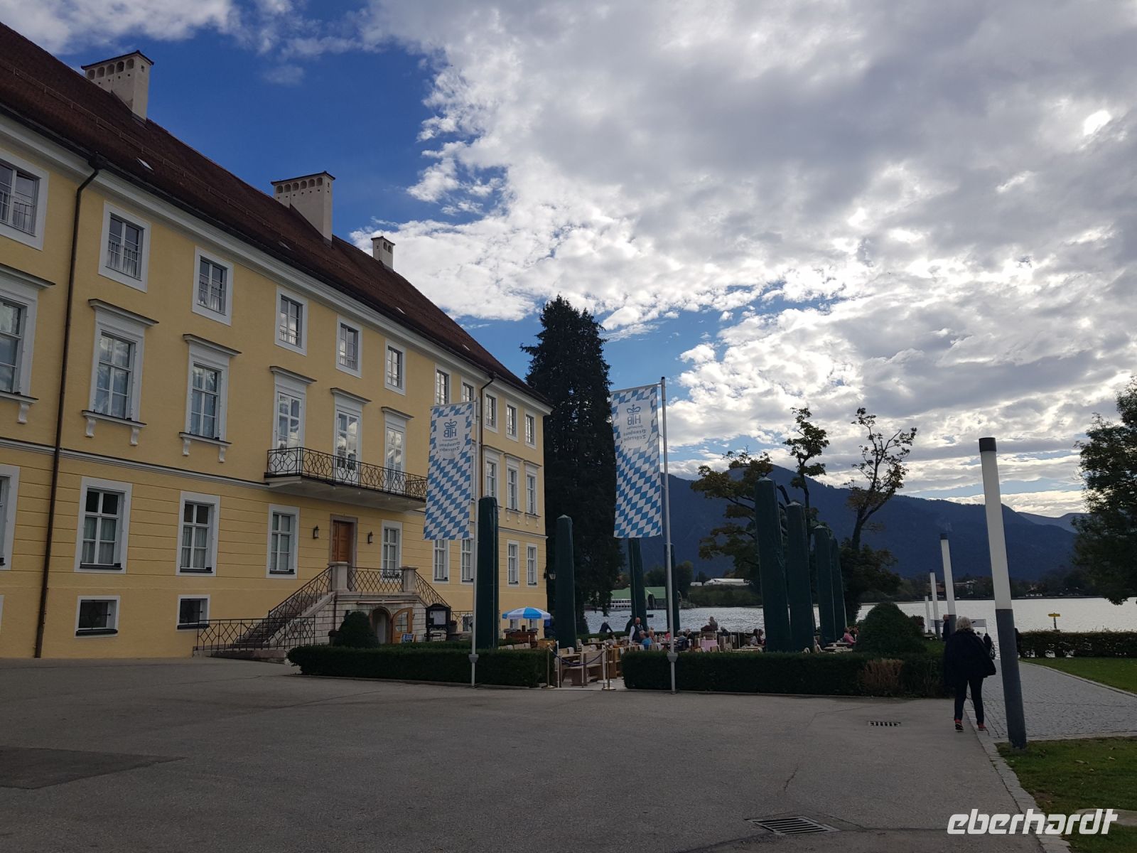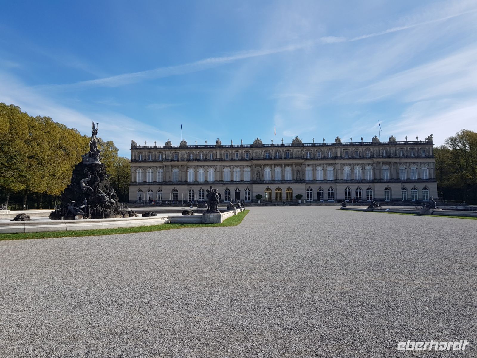 Das erste Frühstück war klasse ( die Folgenden natürlich auch), obwohl die meisten Gäste noch vom Abendessen satt waren. Pünktlich 9 Uhr starten wir nach Prien. Nachdem es am Vortag geregnet hat, zeigte sich der Himmel zunächst wolkenverhangen und dichten Nebel gab es kostenlos dazu. Kaum ausgesprochen, das wir das Wetter nehmen, wie es nun mal ist, zieht es sich auf. Unglaublich so ein schneller Wechsel von Nebel zu praller Sonne! Wir freuen uns auf die Schifffahrt auf dem Chiemsee, dem grössten See Bayerns, zur Herreninsel. Dort angelegt, begeben wir uns auf den Weg zum Schloss. Einige Gäste nutzen die Pferdekutsche, die meisten Gäste laufen. Wir schaffen alles gut, weil die Führung um 20 min. nach hinten verlegt wurde. Da hat Jemand mitgedacht!