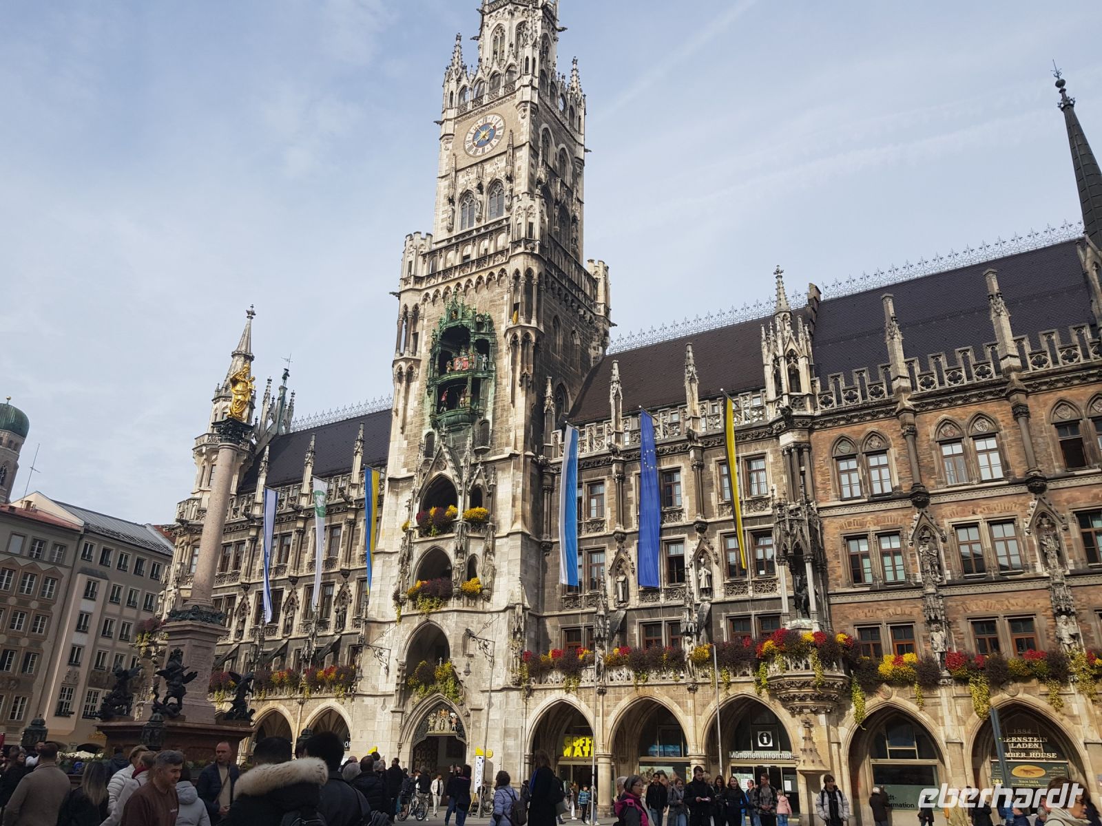 Es ist eine schwierige Entscheidung, was wollen wir unbedingt sehen? Der Stadtführer zeigt uns das Altstadtzentrum mit Rathaus und Marienplatz, verschiedene Kirchen u.a. die Peterskirche, Odeonsplatz, Residenz ...vor dem Dallmayr-Haus ist ein riesiger Bauplatz. Die Freizeit nach der Führung ist zu kurz, man bräuchte schon einige Stunden mehr, um München zu erkunden. Betrachten wir es als Apetit holen für zukünftige Erkundungen.
