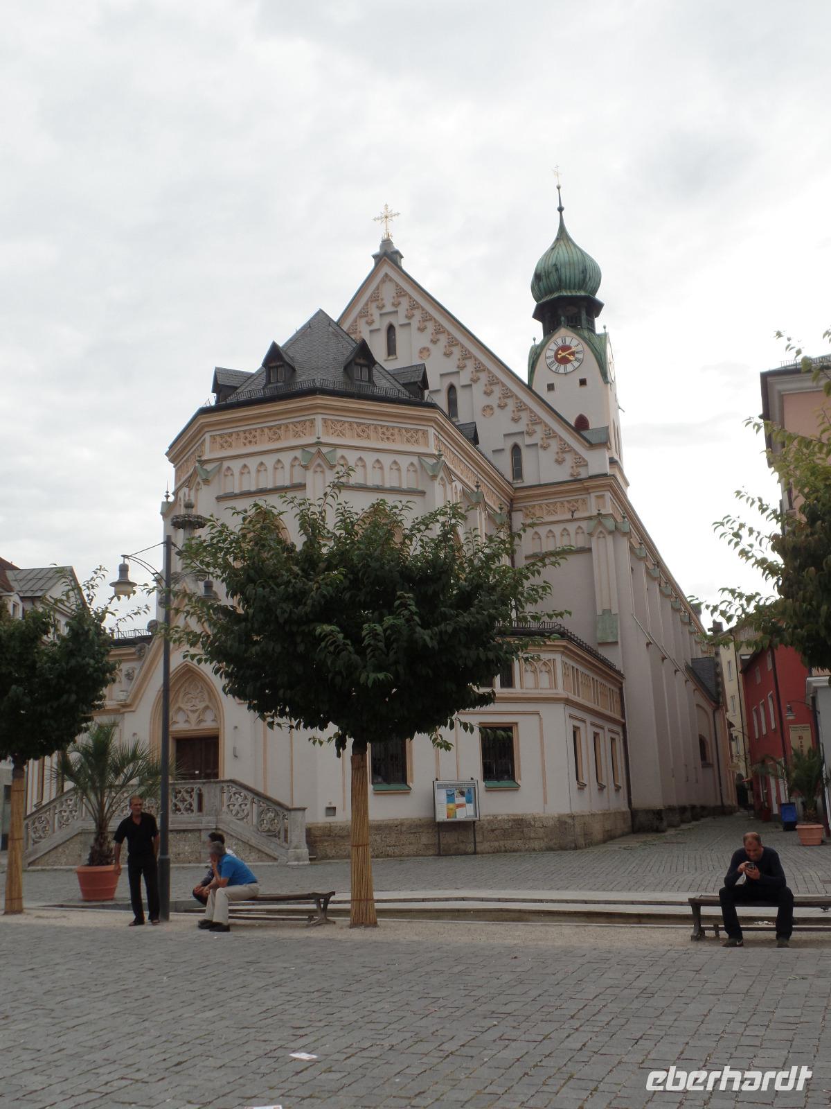 Der Bus bringt uns bis zum "Atrium". Von hier aus ist es nur ein kleines Stück zu laufen, und wir sind am Max-Josefs-Platz. Er ist heute die »Gute Stube« der Stadt, umgeben von prächtigen Bürgerhäusern im Inn-Salzach-Stil. Typisch für diesen Baustil sind die Arkaden und Laubengänge.