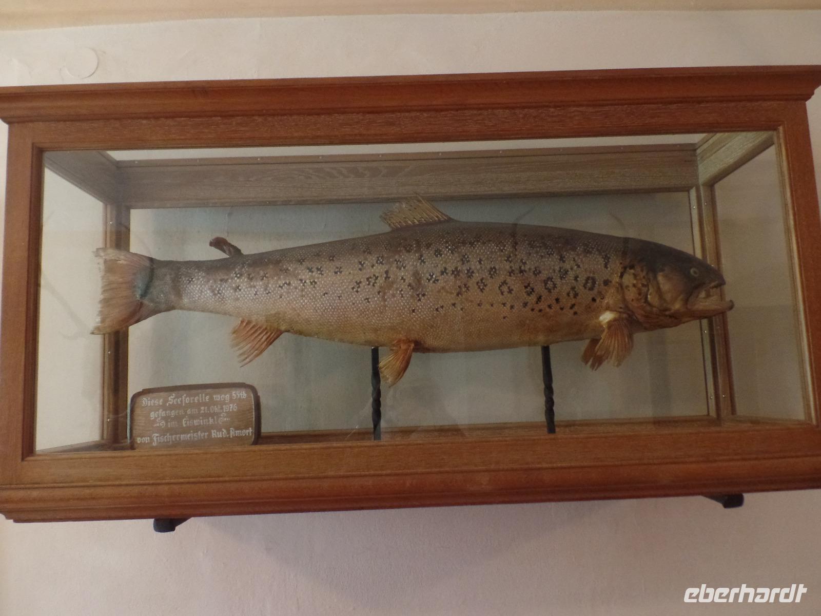 Auf etwa der halben Fahrtstrecke wird den Touristen mittels Flügelhorn vom Bootsführer das beeindruckende Mehrfach-Echo an den steilen Gebirgshängen demonstriert.