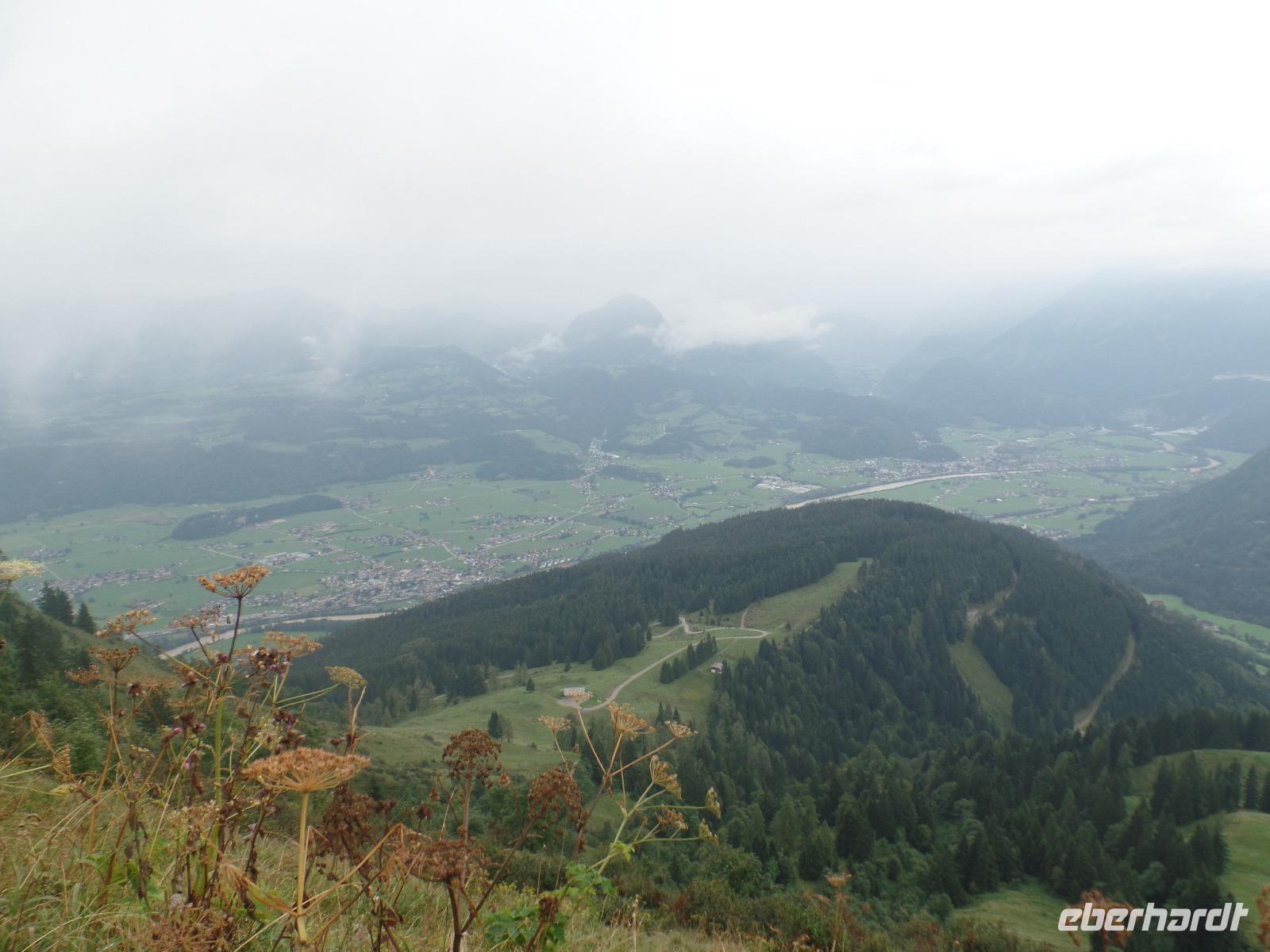 Die Berge hüllen sich noch in den Wolken, doch Blicke ins Salzachtal, nach Salzburg und Hintereck konnten wir noch haben.