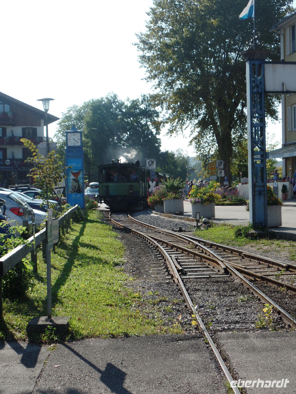 Ludwig Feßler, der Begründer der Chiemsee-Flotte installierte 1887 diese Dampftrambahn, das "Bockerl", um den Ausflüglern den Weg vom Bahnhof zum Hafen zu ersparen.