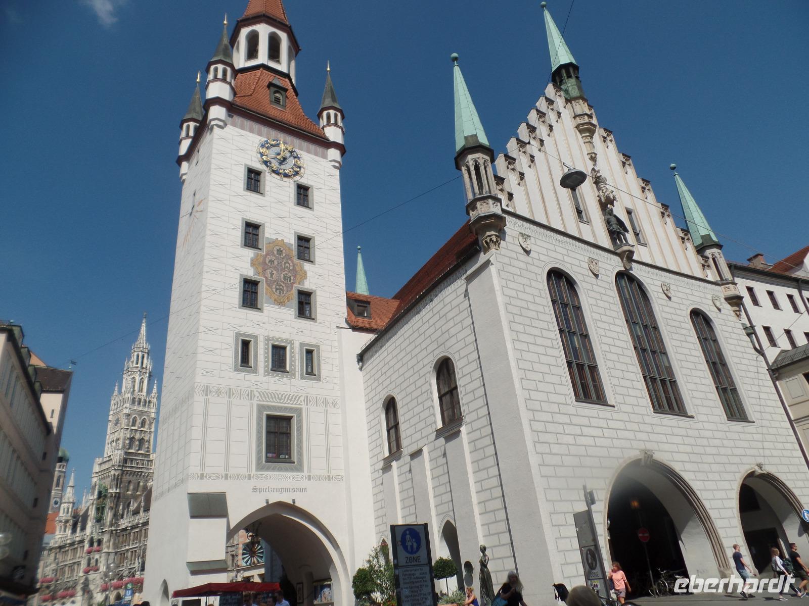 Hier am Neuen Rathaus warteten wir auf das Glockenspiel.