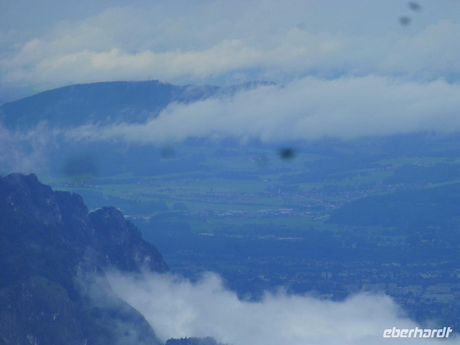 Am Morgen besuchten wir das Schloss Berchtesgaden. Das ehemalige Kloster besticht durch seinen Kreuzgang und seine 3000 verschiedene bedeutender Kunstwerke. Das Schloss ist noch im Besitz der Wittelsbacher und wird sogar während der Salzburger Festspiel von der Familie bewohnt. Der Rundgang war sehr beeindruckend. Auf der Roßfeldstraße fuhren wir zum Gasthaus Hochlenzer wo wir mit einer Brettljause verwöhnt wurden. Ein besonderes Schauspiel erlebten wir als sich die Wolken immer wieder im Tal auf taten und den schönen Blick auf Berchtesgaden frei gaben. Am Obersalzberg bestiegen wir die Busse und in kurzer Zeit erreichten wir das Kehlsteinhaus. Mit dem Fahrstuhl fuhren wir weiter hinauf. Das Wetter war uns holt und wir konnten die phantastische Ausblick in die Berge und bis nach Salzburg genießen.