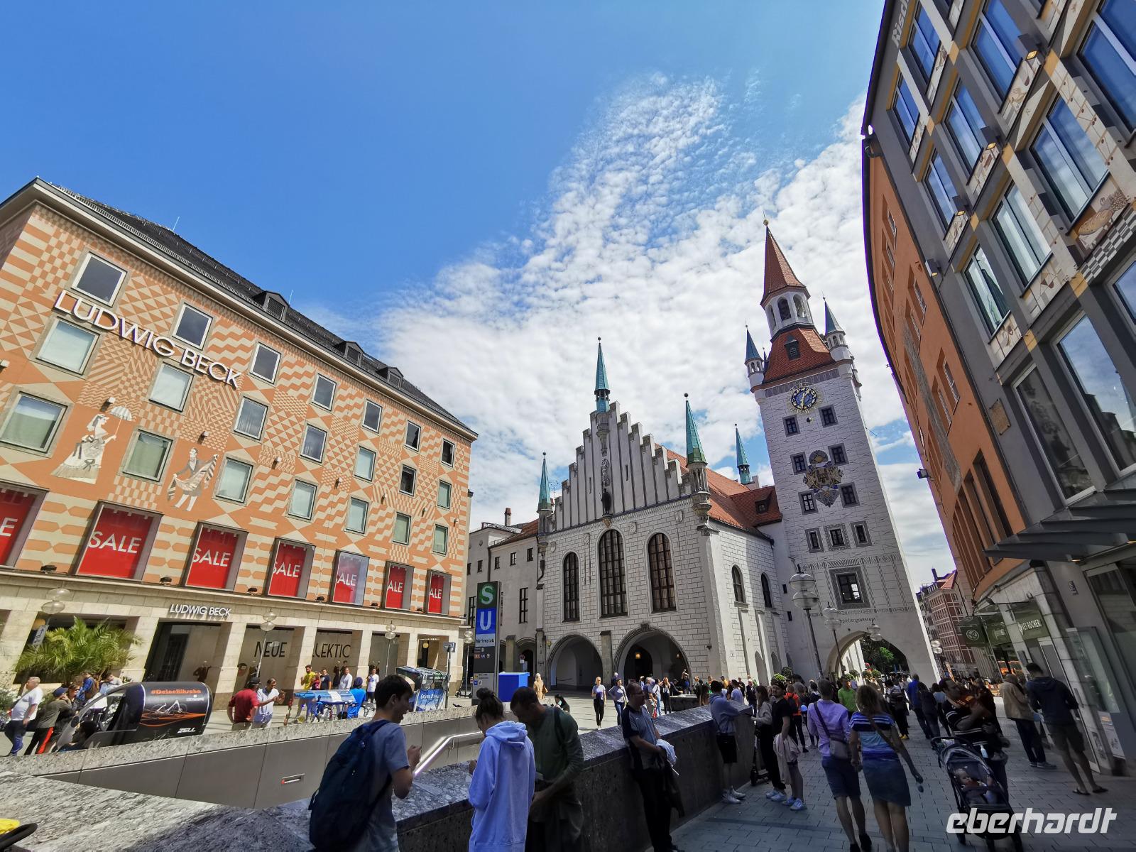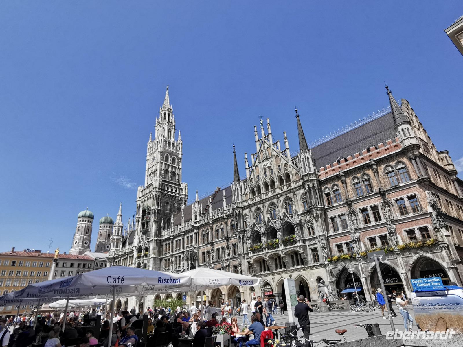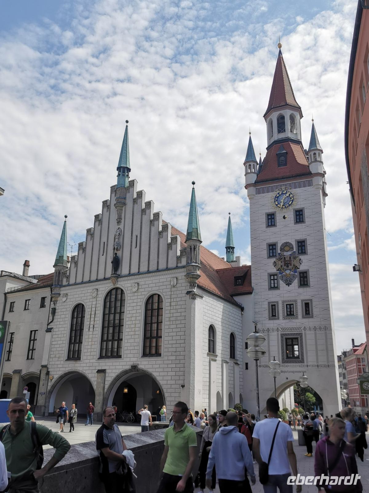 Nach regenreicher Fahrt durch das Vogtland und zähem Verkehr erreichen wir zur frühen Nachmittagsstunde die bayerische Landeshauptstadt und bummeln dort über die Maximilianstraße zum Marienplatz. Dieser Platz bildet den Mittelpunkt der bayerischen Metropole, wir sehen das Neue Rathaus mit dem 85 Meter hohen Glockenturm, davor steht die Mariensäule, auf der Maria als „Patrona Bavariae" (Schutzpatronin Bayerns) thront. Am Fischbrunnen kann man den Fontänen zuschauen und einige Gäste entscheiden sich, in den Dom unserer Lieben Frau zu gehen, das Wahrzeichen Münchens, charakteristisch durch seine runden grünen Kuppeln. Diese Kirche wurde in der Spätgotik errichtet, 1944 jedoch bei Luftangriffen schwer beschädigt. Allerdings beschloß man, sie wieder aufzubauen, und so sind heute vom einstmaligen Bau nur noch die Glasfenster im Chor aus dem 15. Jahrhundert zu bewundern.