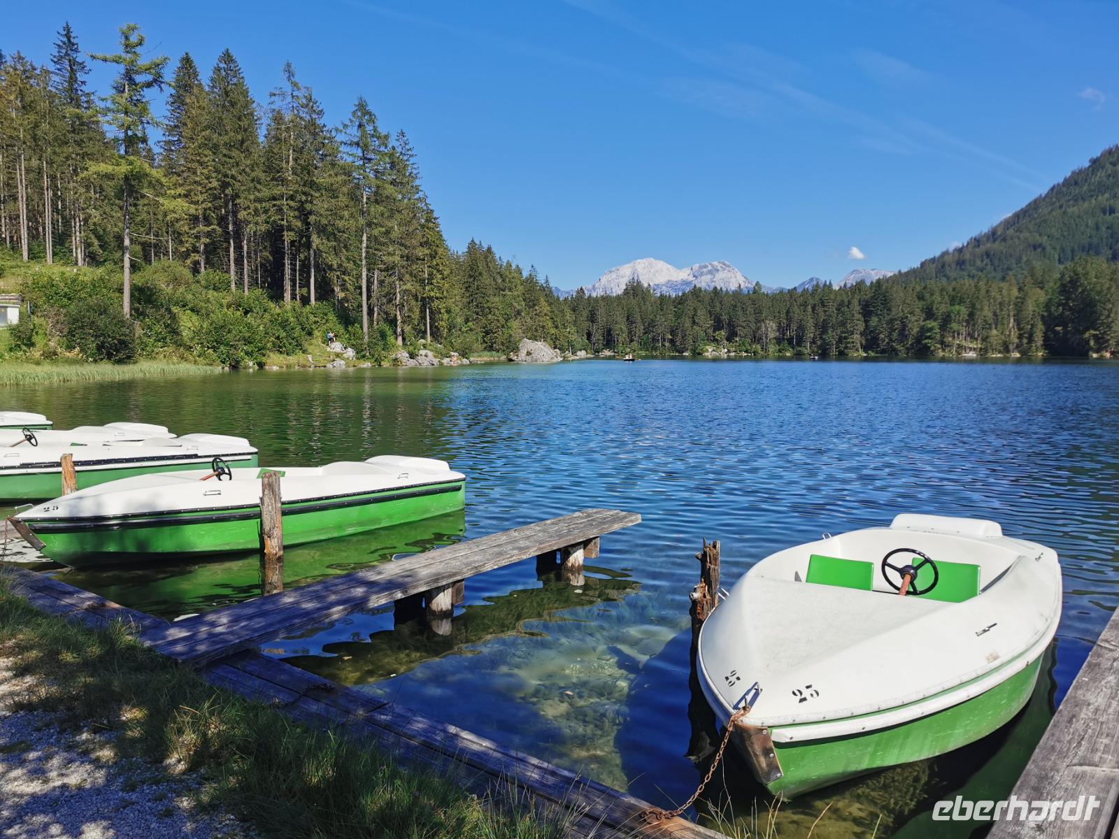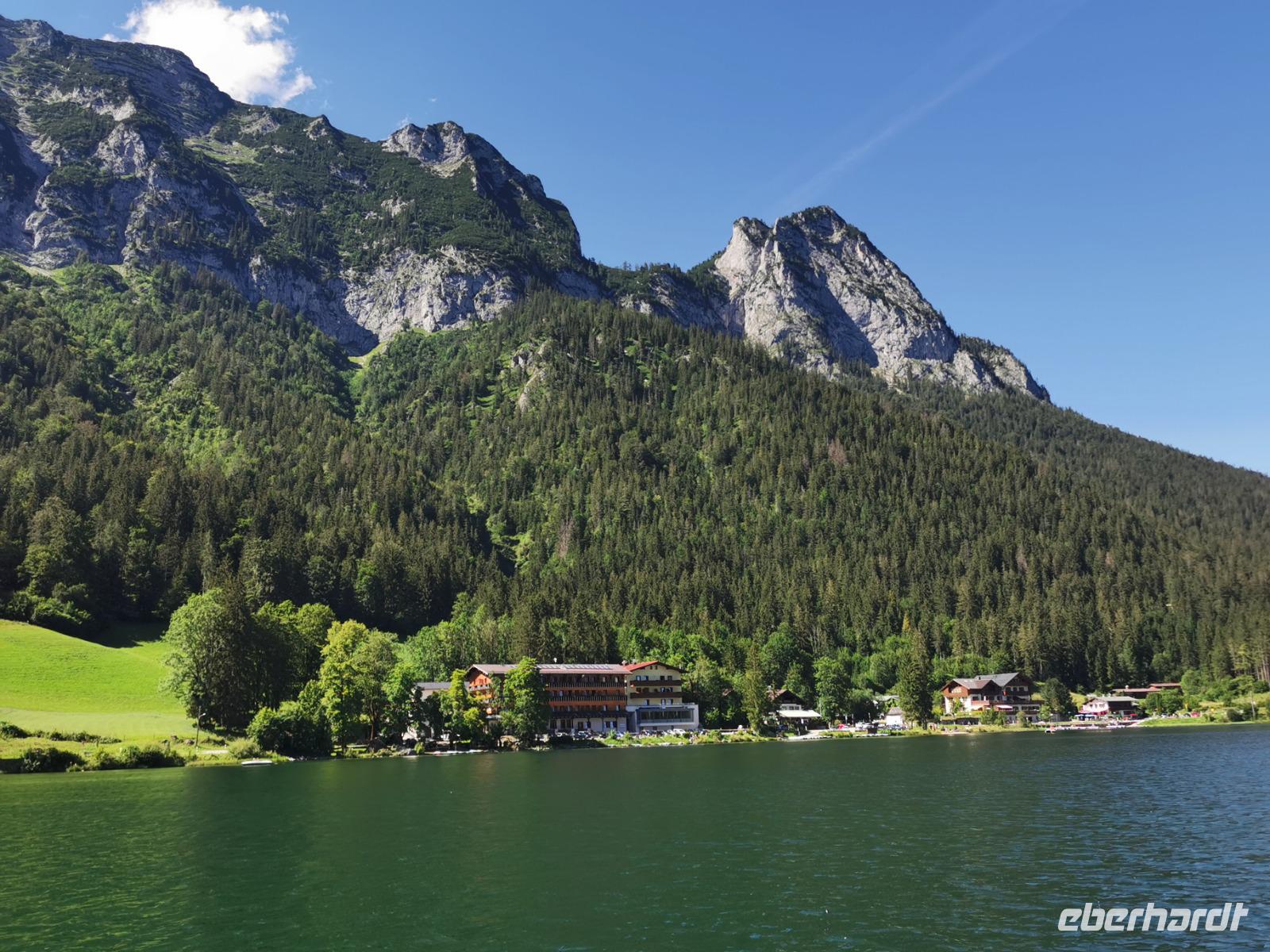 Nur wenige Fahrminuten entlang der Deutschen Alpenstraße liegt der Hintersee, eingebettet in den Zauberwald und einen alten Bergsturz. Hier entscheiden sich einige Gäste für den tollen Blick von der Restaurantterrasse und einen Eisbecher oder ein kühles Bier. Mit den anderen unternehme ich auf dem See mit der atemberaubenden Rundumkulisse eine Bootsfahrt.