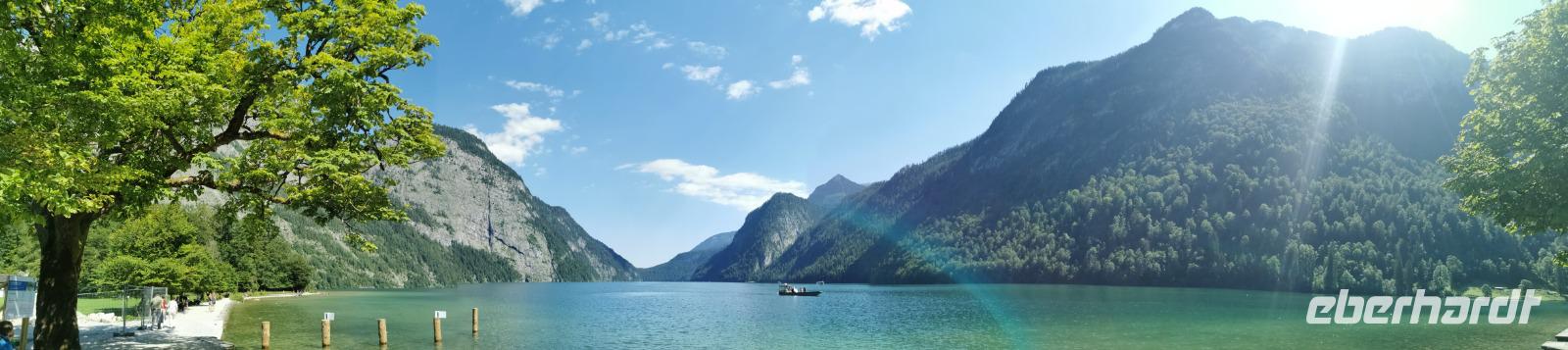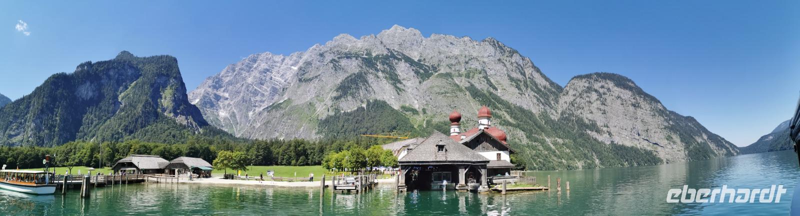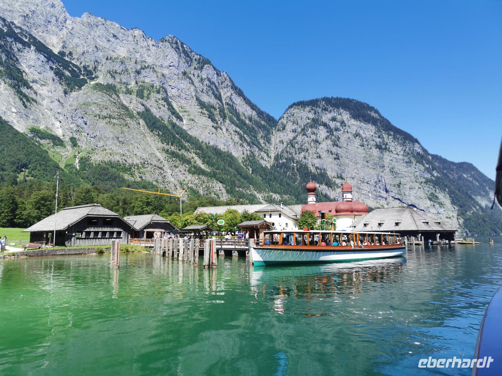 Legendär ist die Schönheit der Landschaft um den Königssee, der mit seinem glasklaren smaragdgrünen Wasser aussieht wie ein Fjord in Norwegen. Um diese Kulisse so richtig genießen zu können, brechen wir heute früh auf und glücklicherweise hatten wir die Bootstickets bereits vorbestellt. Die Schlangen an den Schaltern sind beeindruckend, wir aber gehen an ihnen vorbei direkt aufs Elektroboot und uns bietet sich ein Blick auf diese Traumlandschaft, heute ganz ohne Menschenmassen.