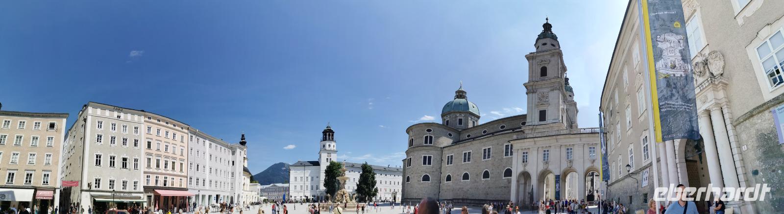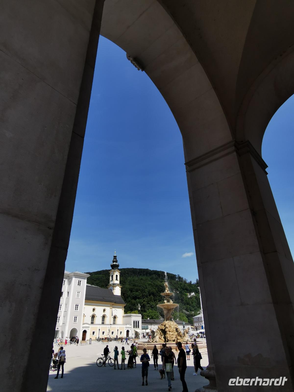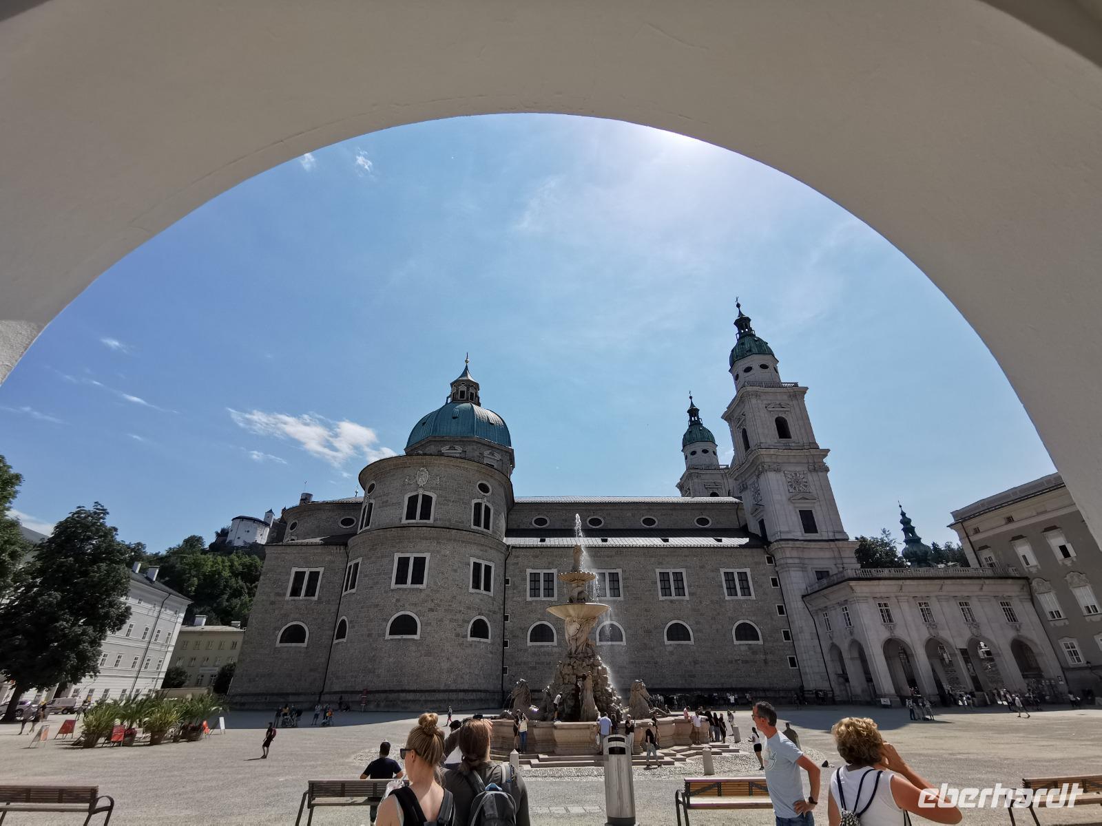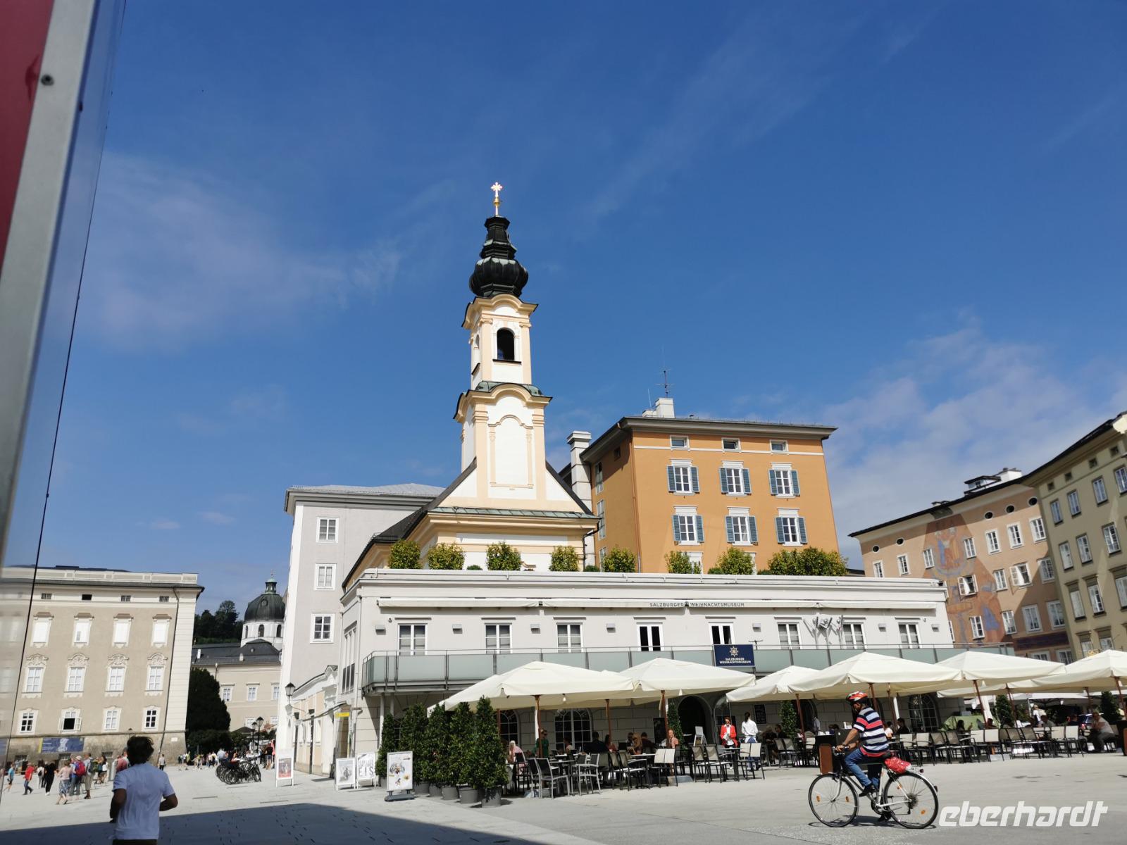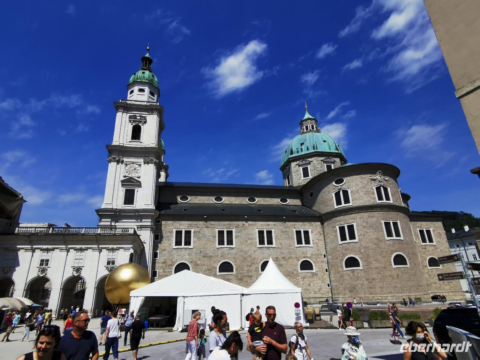 Im Anschluß daran sehen wir den Residenzplatz mit dem Residenzbrunnen, werfen einen Blick in den Dom und staunen: auch in diesem Jahr werden die Salzburger Festspiele stattfinden, nur eben mit etwas weniger Publikum. Alles wird gerade dafür vorbereitet, in wenigen Tagen am 1. August werden sie beginnen und bis zum 31. August können die Besucher verschiedenen Darbietungen klassischer Musik und Opern lauschen.