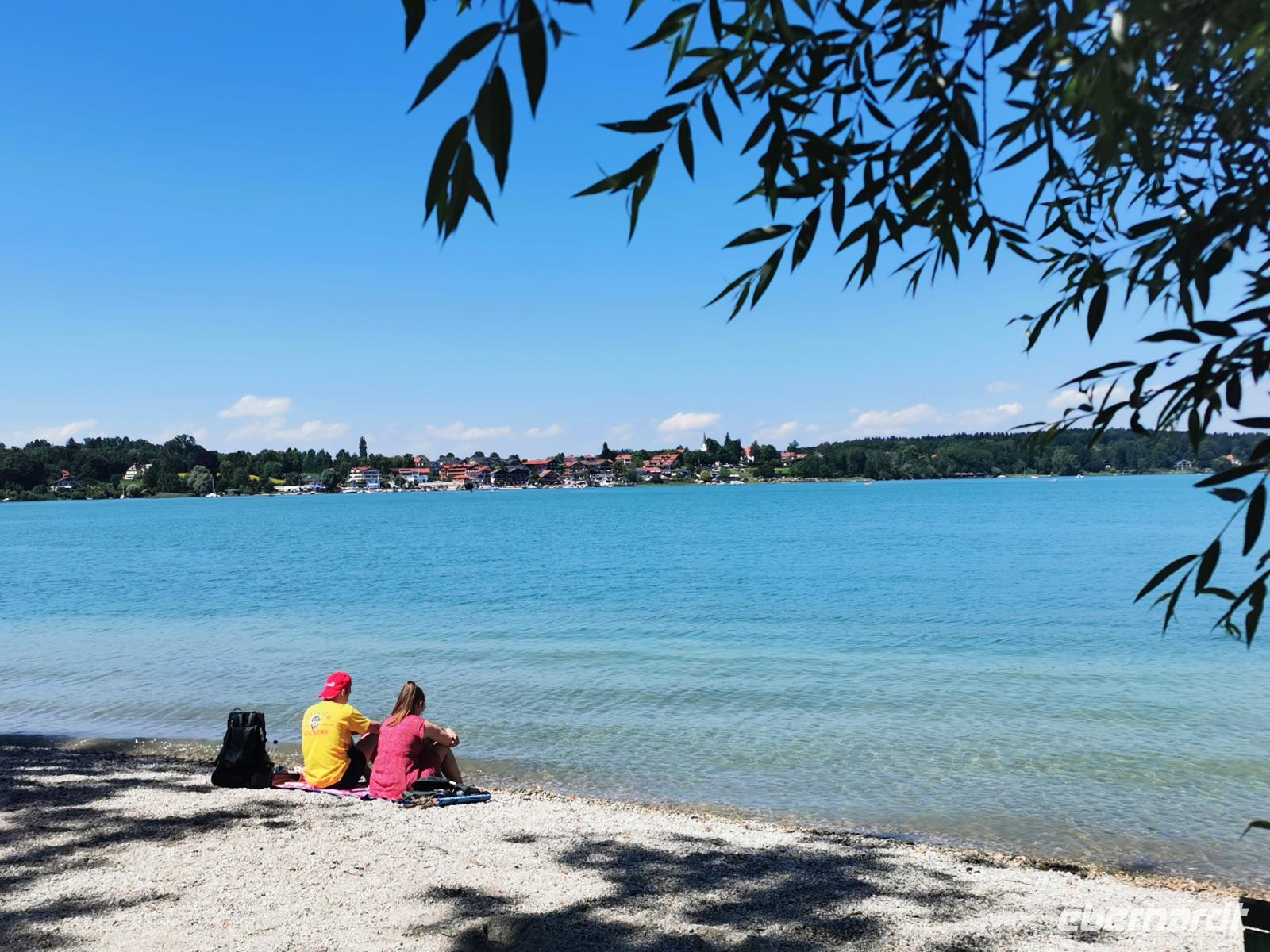 Das sogenannte Bayerische Meer ist heute unser Ziel, das Wetter könnte besser nicht sein, es sind 30 Grad angesagt. Mit seinen ca. 80 km² ist der Chiemsee der drittgrößte See Deutschlands nach dem Bodensee und der Müritz.