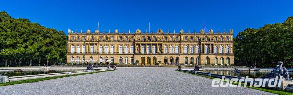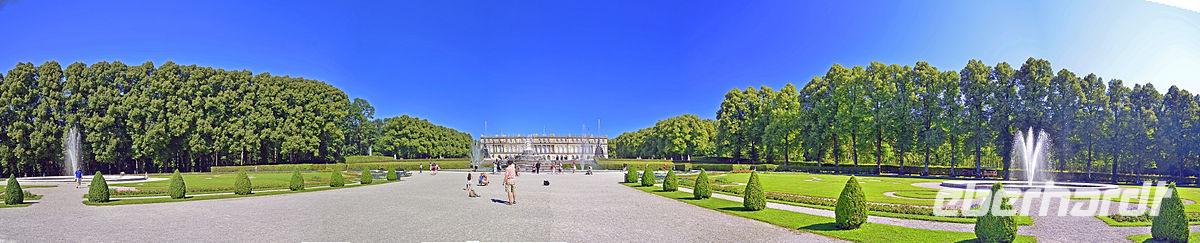 Von Prien aus fahren die Chiemseeschiffe auf die Inseln des Sees und wir beginnen mit der größten, der Insel Herrenchiemsee. Durch den Wald laufen wir bis zum Königsschloß, welches Ludwig der II. nach dem Vorbild von Versailles ab 1878 errichten ließ. Der Architekt Georg Dollmann setzte alle exzentrischen Wüsche des Königs um, Pomp und Glanz wohin man schaut, ob im Spiegelsaal, im Marmor-Treppenhaus oder im königlichen Schlafzimmer. Leider sind alle Führungen an diesem Tag bereits ausverkauft und so begnügen wir uns mit Außenansichten und bummeln durch den Schloßgarten.
