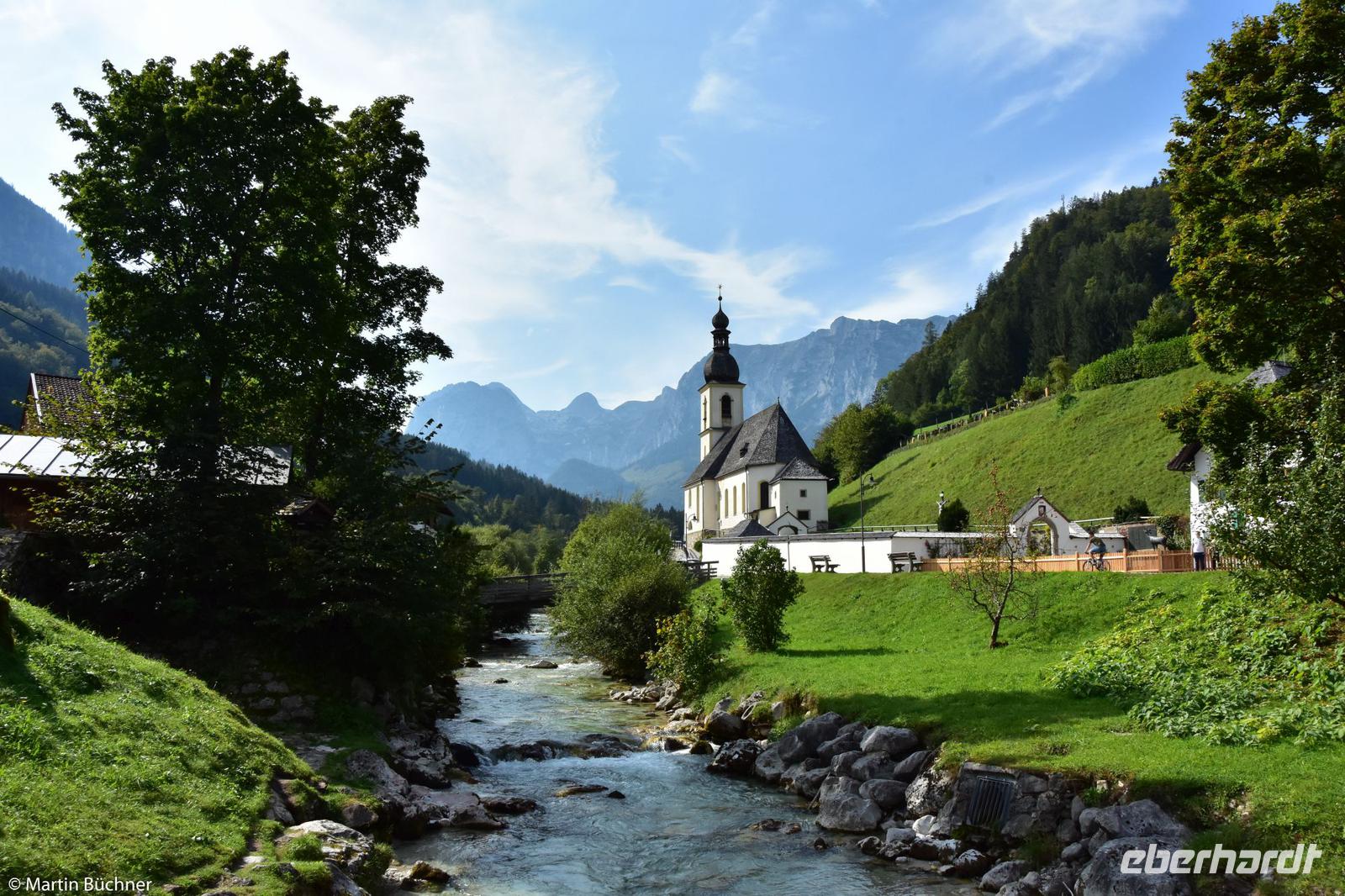 Nach einer Mittagspause setzen wir unsere Fahrt in Richtung Ramsau fort. Die Ramsau wie sie von den Einheimischen genannt wird liegt an der Grenze zum Nationalpark Berchtesgaden. Der Ort durfte sich als erstes Bergsteigerdorf nennen. Malerisch schön liegt der Ort im Tal und ist Ausgangspunkt für Wanderung zum Watzmann oder ins benachbarte Hochkaltermassiv. Maler und Künstler zog es stets hier in den Ort, die lokale Kirche St. Sebastian vor der spektakulären Bergkulisse, war mehr als einmal Motivation für viele Landschaftsmaler. Die Stelle heißt dann auch Malerwinkel in der Ramsau.