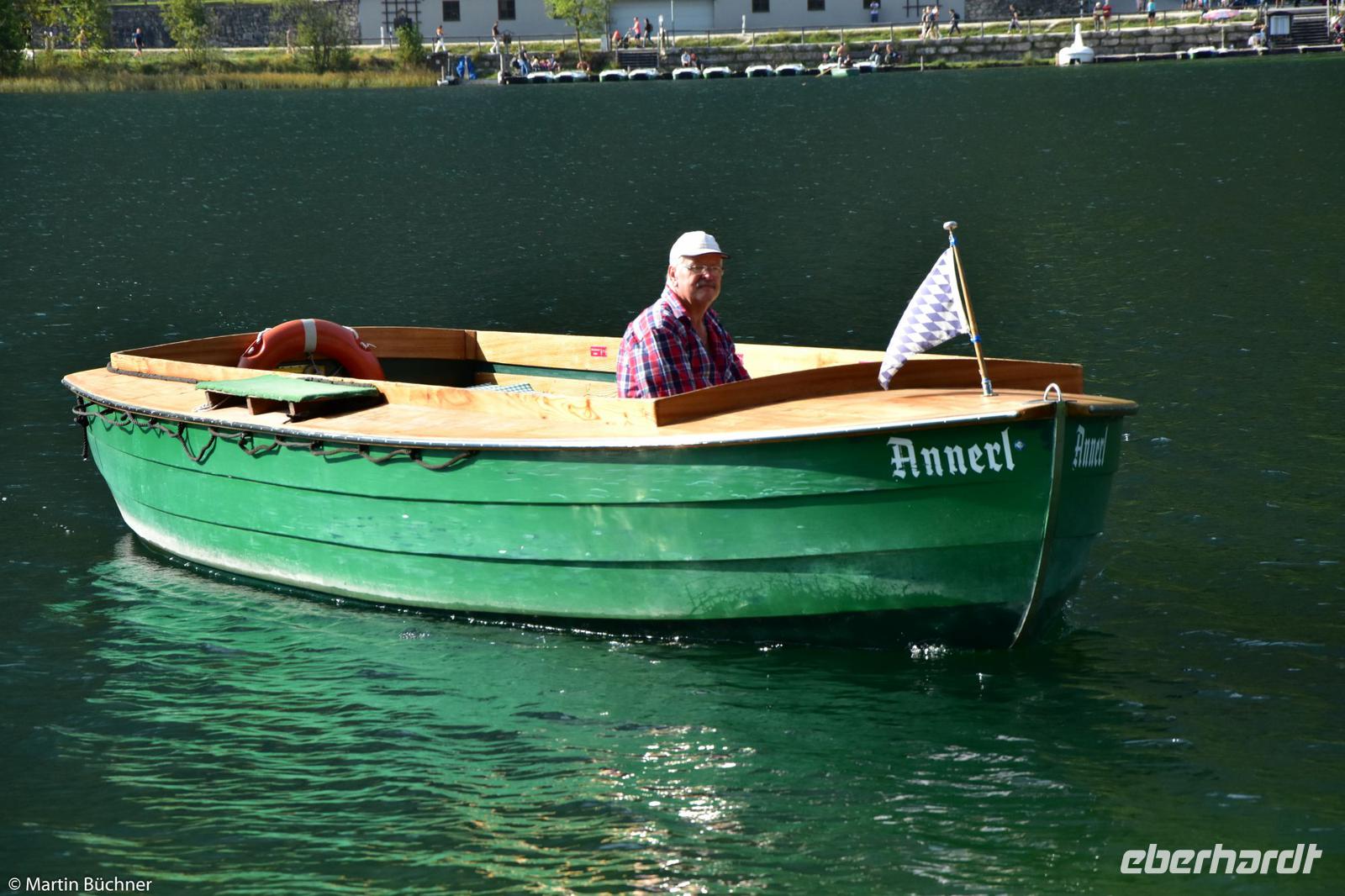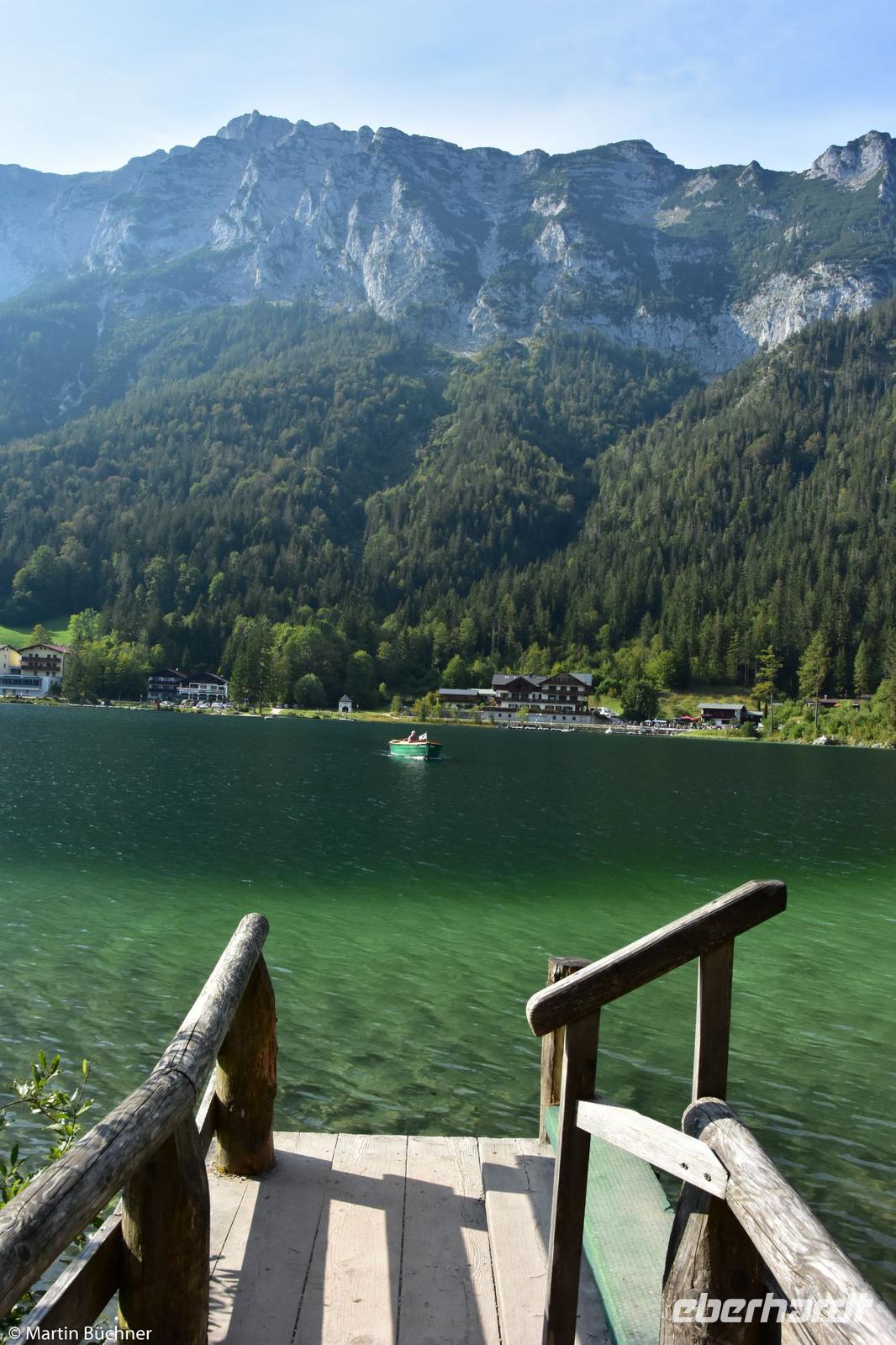 Im nahe gelegenen Hintersee genießen wir den Nachmittag. Wer möchte kann den kleinen Bergsee in gut 1 - 1,5 h Stunden zu Fuß umrunden. Wir nur die Hälfte laufen will nutzt die kleine Minifähre über den See. Gerade einmal 10 Personen kann das kleine Boot ohne Dach über den See befördern, sogar eine kleine Rundfahrt ist möglich.