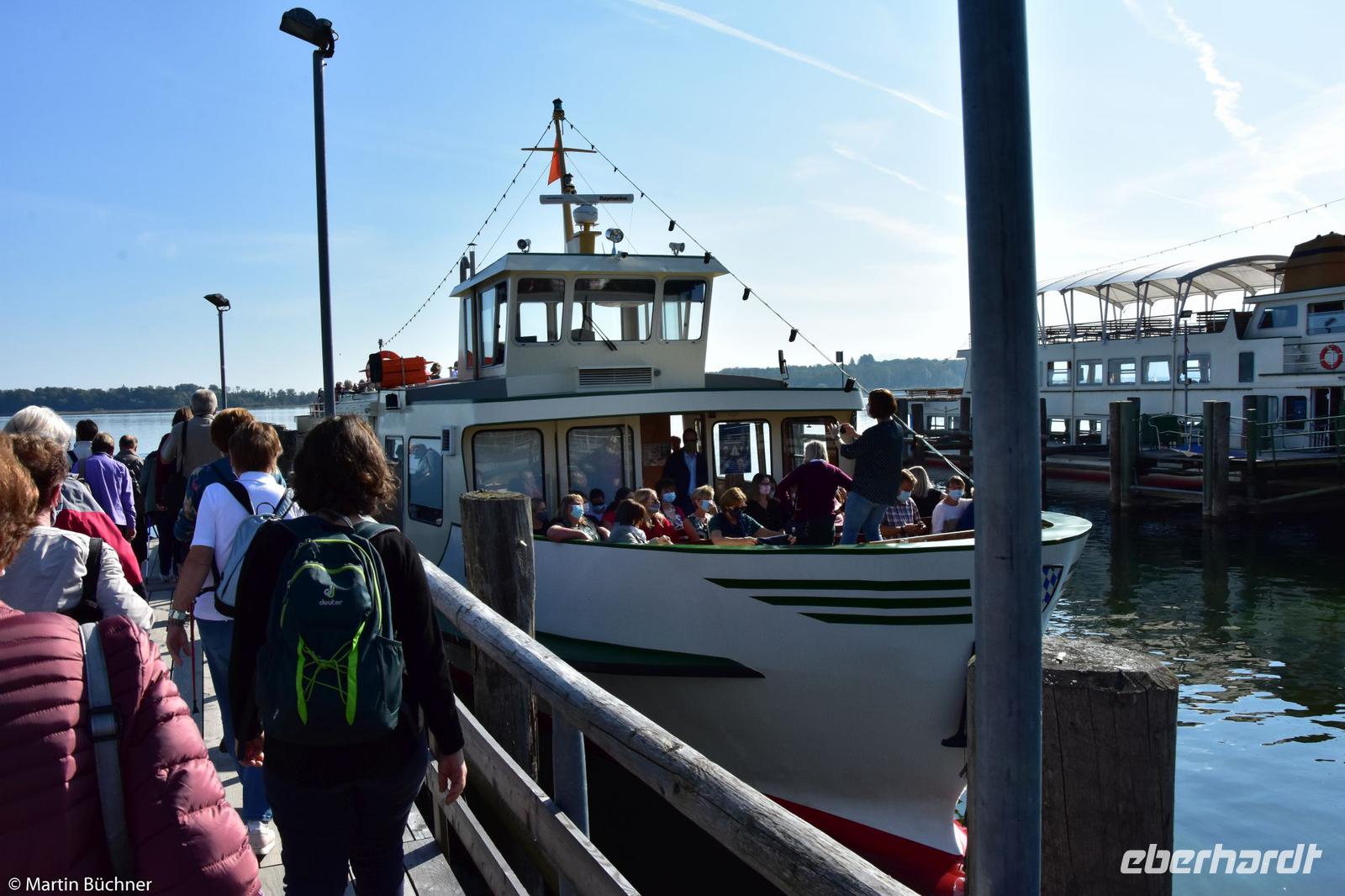 Mit dem Schiff geht es zurück nach Prien ans „Festland".