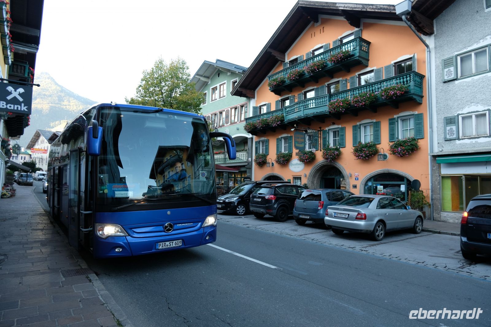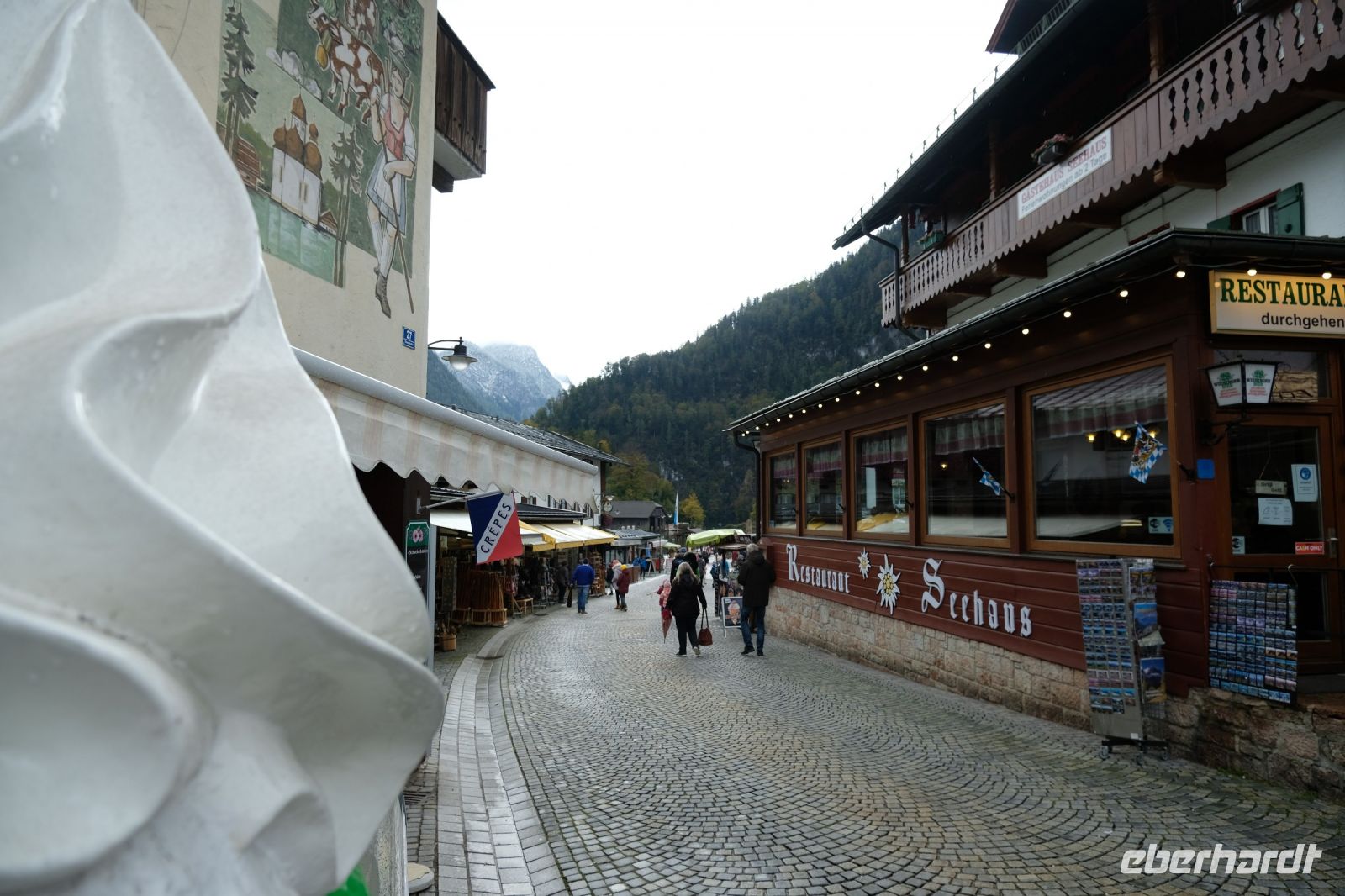 Nach unserem gemeinsamen Spaziergang zurück zum Bus fuhren wir weiter nach Ramsau. Leider war das Wetter nicht so schön und deshalb galt unser Fotostop vor allem der berühmten Kirche St. Sebastian, die aus dem Jahre 1512 stammt und das älteste Bauwerk des Ortes ist. Der Ort durfte sich als erstes Bergsteigerdorf nennen. Malerisch schön liegt der Ort im Tal und ist Ausgangspunkt für Wanderung zum Watzmann oder ins benachbarte Hochkaltermassiv.