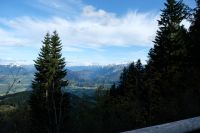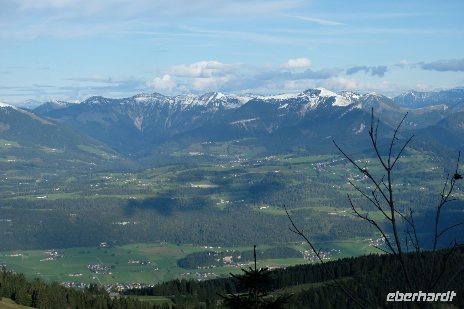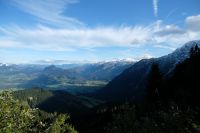 Anschließend haben wir die verpasste Fahrt auf der Rossfeldpanoramastrasse nachgeholt. Diese Ringstraße in 1500 Metern Höhe ist 15,4 km lang und zwischen 1933 und 1953 errichtet worden. Von vielen Parkplätzen genießt man wunderbare Ausblicke auf das Salzachtal und auf den Hohen Göll mit seinen ca. 2500 Metern. Die Strecke auf dem Grat verläuft exakt auf der Staatsgrenze zwischen Deutschland und Österreich, danke an das Schengen Abkommen, dass wir nicht jedes Mal einen Pass vorzeigen müssen.