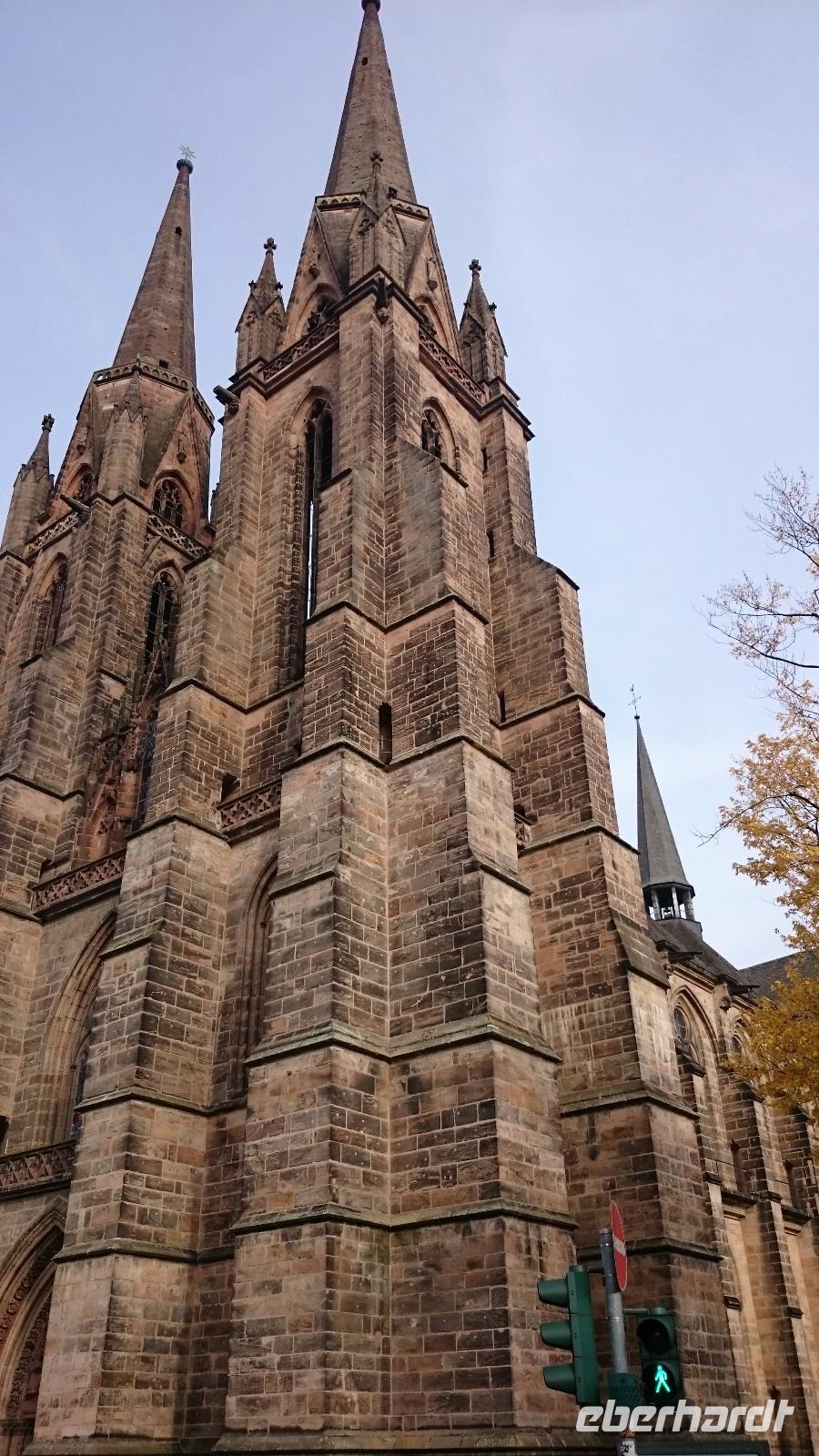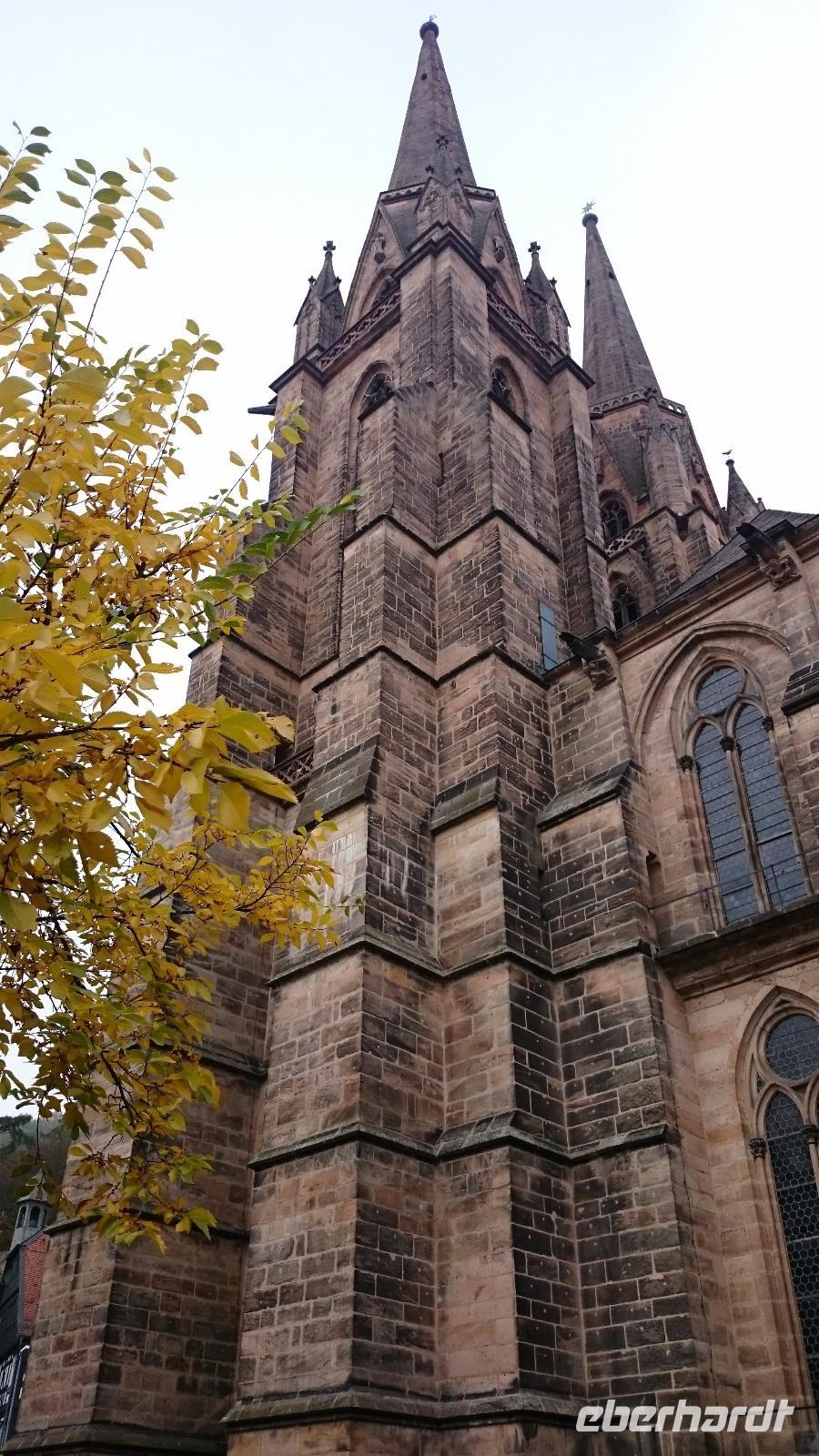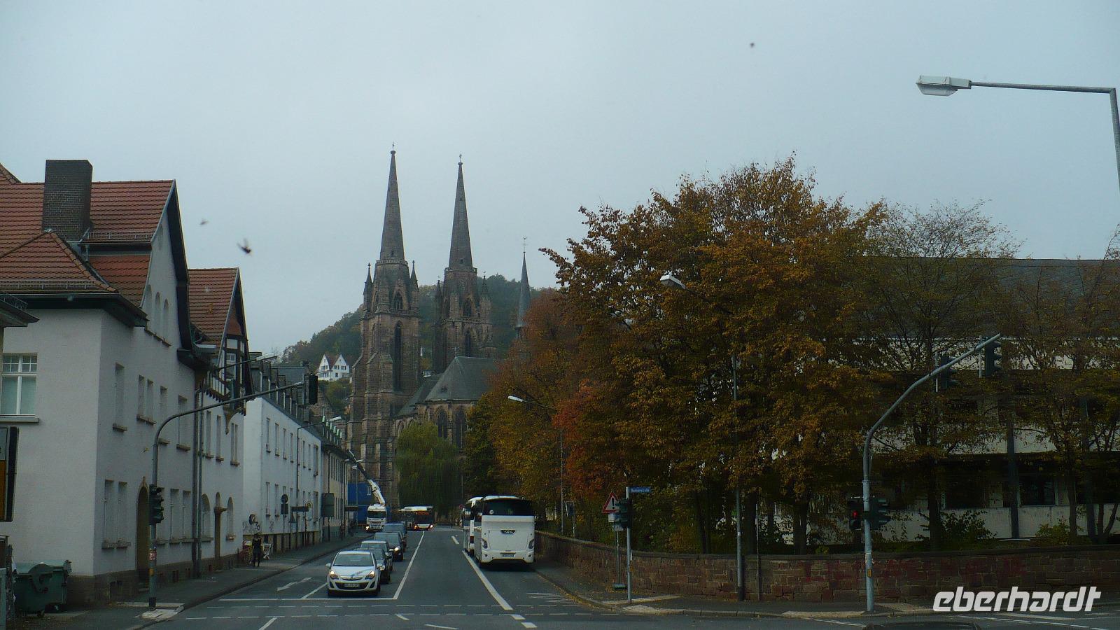 Gegen Mittag erreichten wir unser Hauptziel, die Universitätsstadt Marburg - beiderseits der Lahn gelegen. Die altehrwürdige Philipps-Universität wurde bereits 1532 gegründet und zählt heute 26.000 Studenten. Schon in der Anfahrt sahen wir die berühmte Elisabeth-Kirche, die über dem Grabmal der heiligen Elisabeth erbaut wurde. Deshalb wurde dieses Meisterwerk der Frühgotik zu einem bedeutenden Wallfahrtsort des Mittelalters.