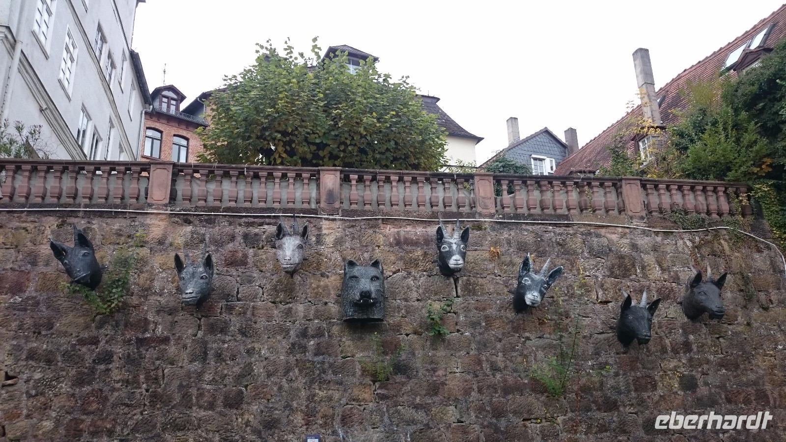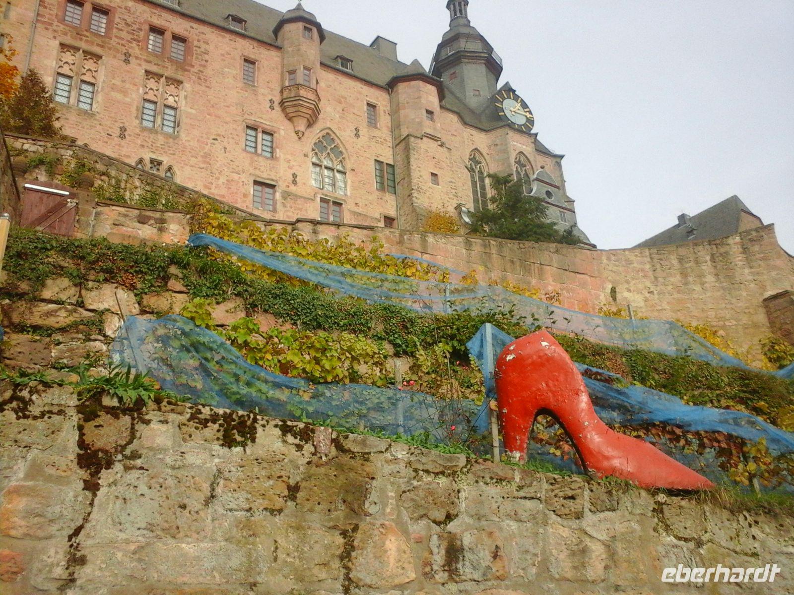 Doch nicht nur den eindrucksvollen Städten galt unsere Aufmerksamkeit, sondern wir erlebten auch einige Stationen der deutschen Märchenstraße, die insbesondere den - in Hessen beheimateten - Brüdern Grimm gewidmet ist. Da schauen z. B. aus einer Wand in Marburg der Wolf und die 7 Geißlein hervor, der Hänsel- und Gretel-Weg mit dem Pfefferkuchenhaus führt hinauf zum Schloss und oben im Schlossgelände angekommen, symbolisiert ein riesengroßer roter Schuh das Märchen Aschenputtel.