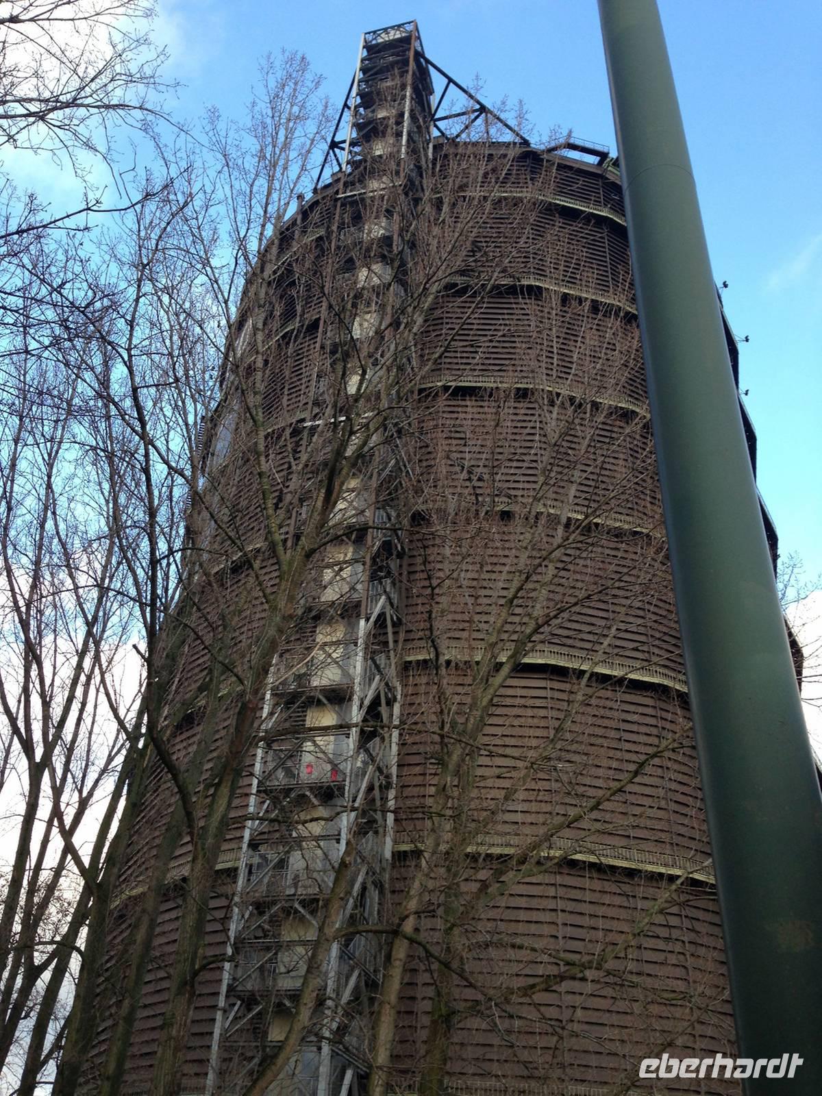 Da wir eine gebuchte Führung hatten, schlängelten wir uns an den Besucherströmen vorbei. Die kleine „Zwangspause" aufgrund organisatorischer Überschneidungen nutzten viele, um vom Dach des Gasometers den Blick auf das Ruhrgebiet zu genießen.