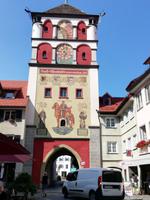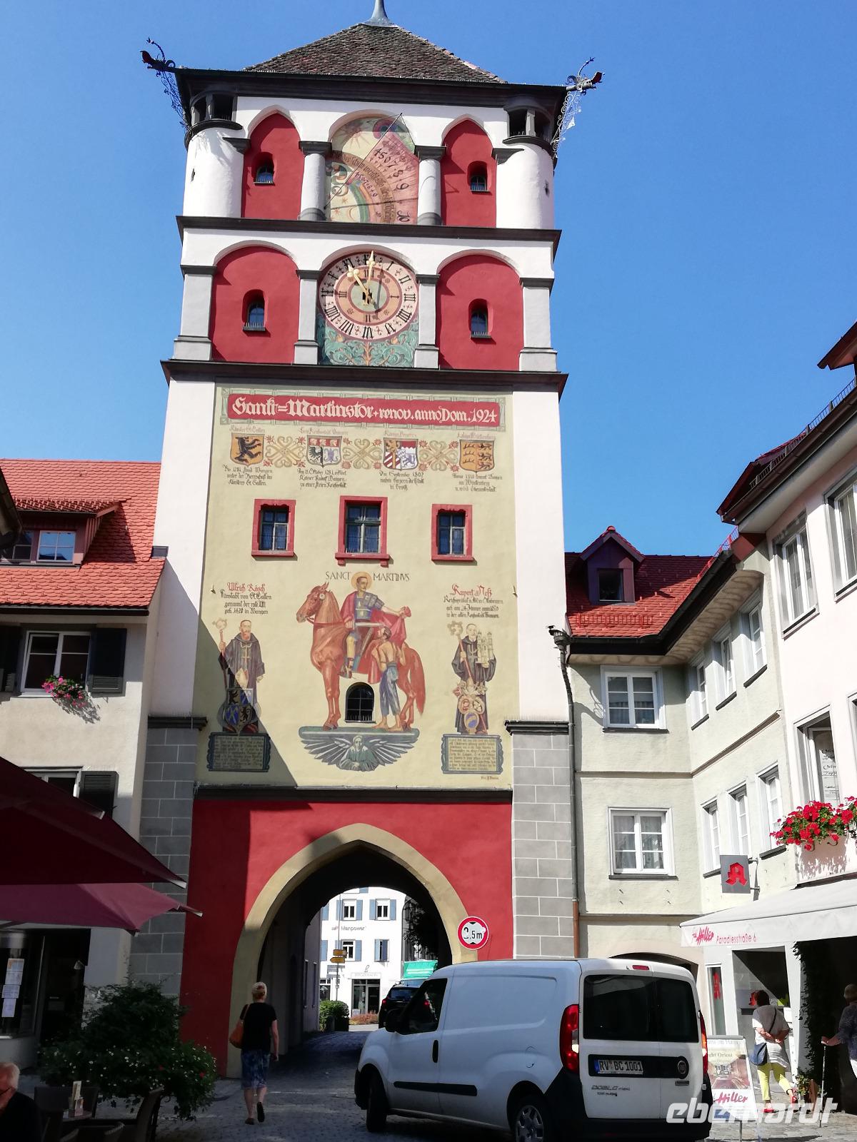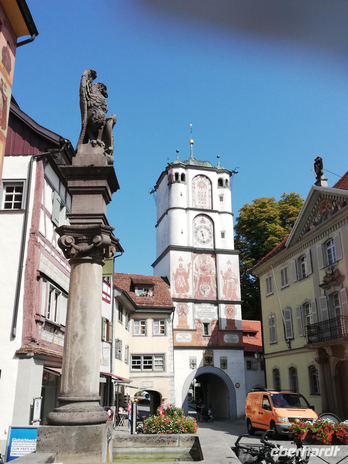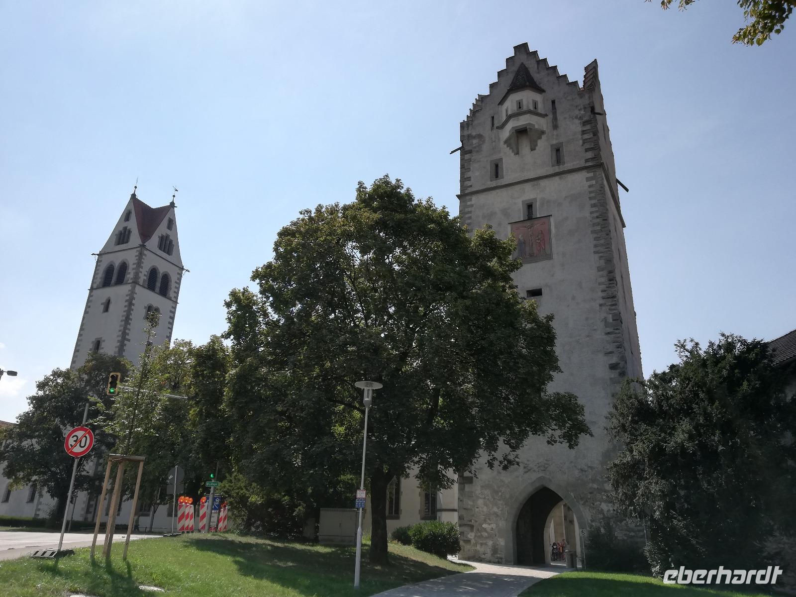 Das 1472 erstmals erwähnte, vermutlich ältere Tor erhielt seine heutige Form im Jahr 1608. Der Bau zeigt ein einheitliches Renaissancegepräge mit charakteristischen Ecktürmchen. Weitere Reste der Stadtbefestigung sind das Martinstor bzw. Lindauer Tor, welches den Zugang zum ältesten Teil der Oberstadt markiert und der im 14. Jahrhundert erstellte Pfaffenturm.