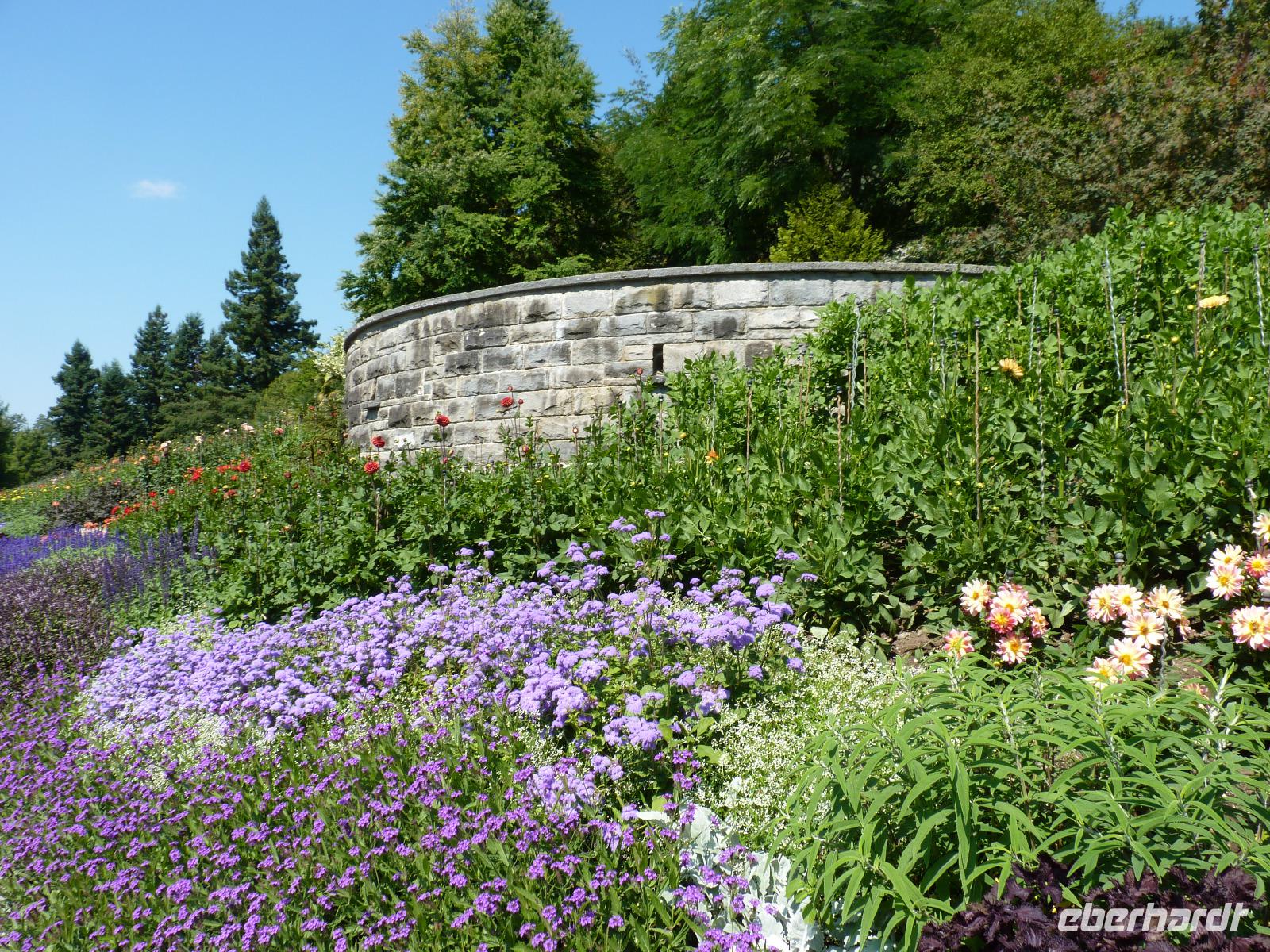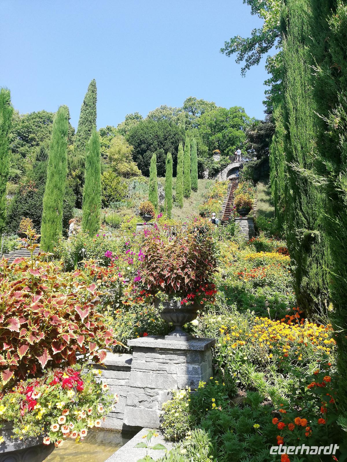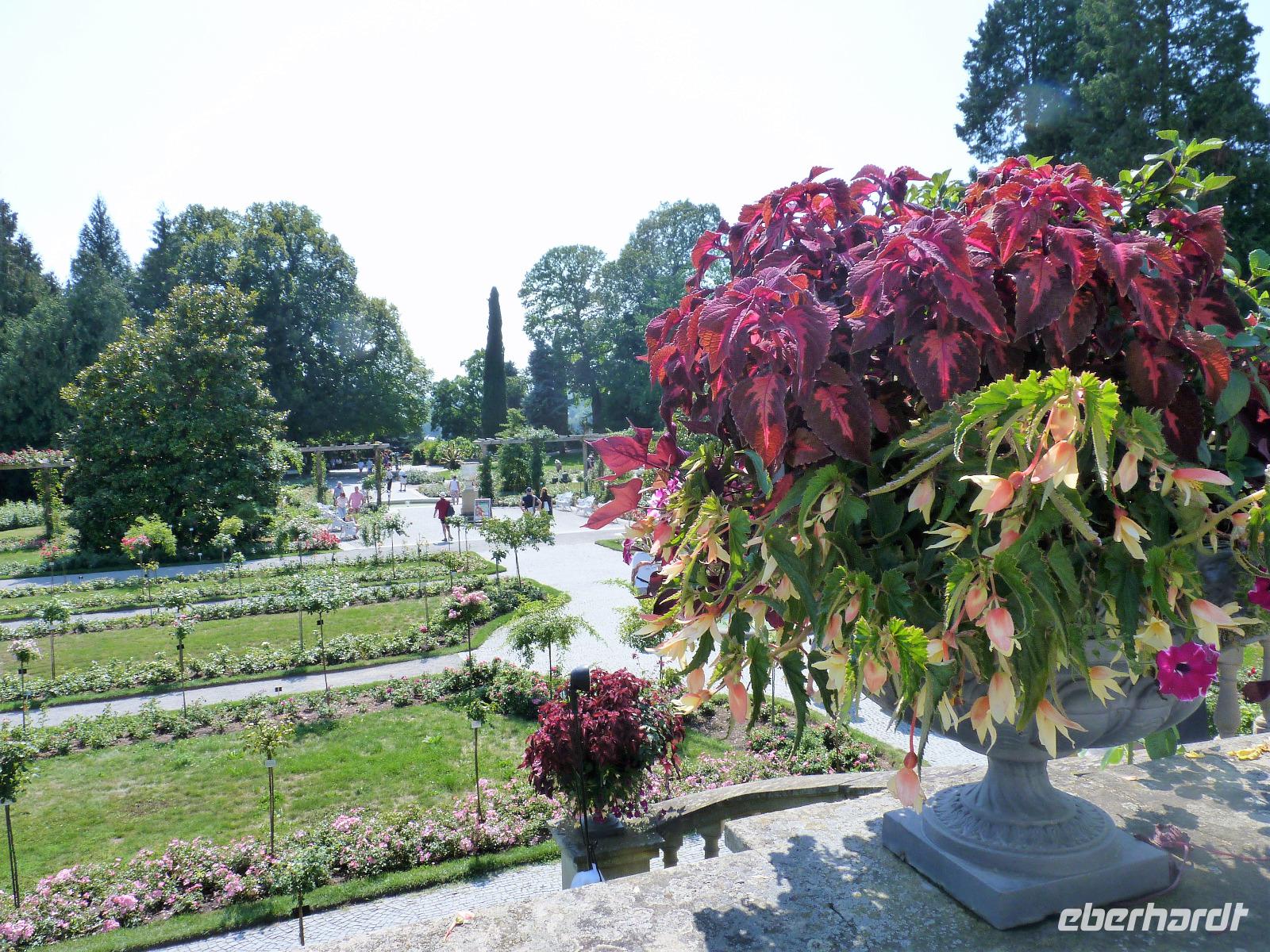 Das Palmenhaus, eine aufwändige Glaskonstruktion schützt die Bäume ganzjährig. Hier wachsen mehr als 20 Palmenarten, darunter eine mehr als 15 Meter hohe Kanarische Dattelpalme. Wunderschön auch die Italienische Wassertreppe, ein Geburtstagsgeschenk der Mitarbeiter an den Grafen, sei neben den tausenden in- und ausländischen Pflanzen und Sträuchern, sowie Pflanzensteckkunst erwähnt.