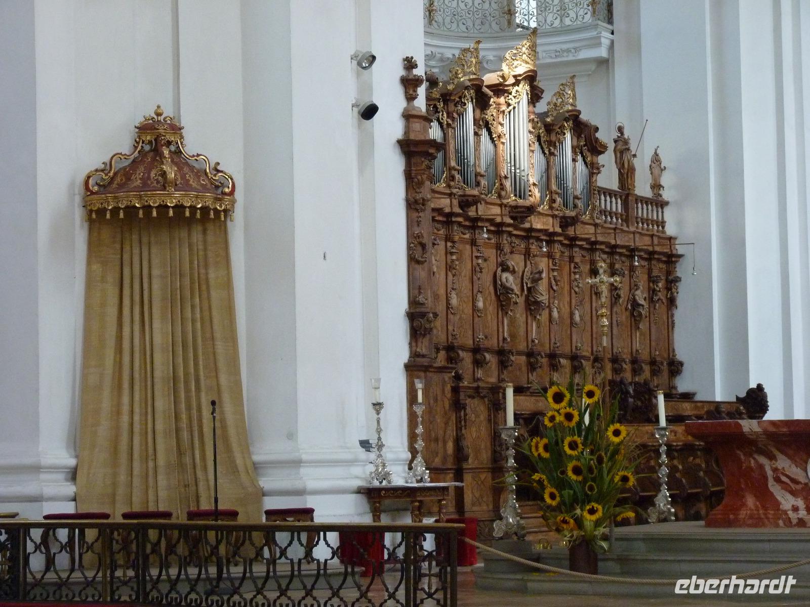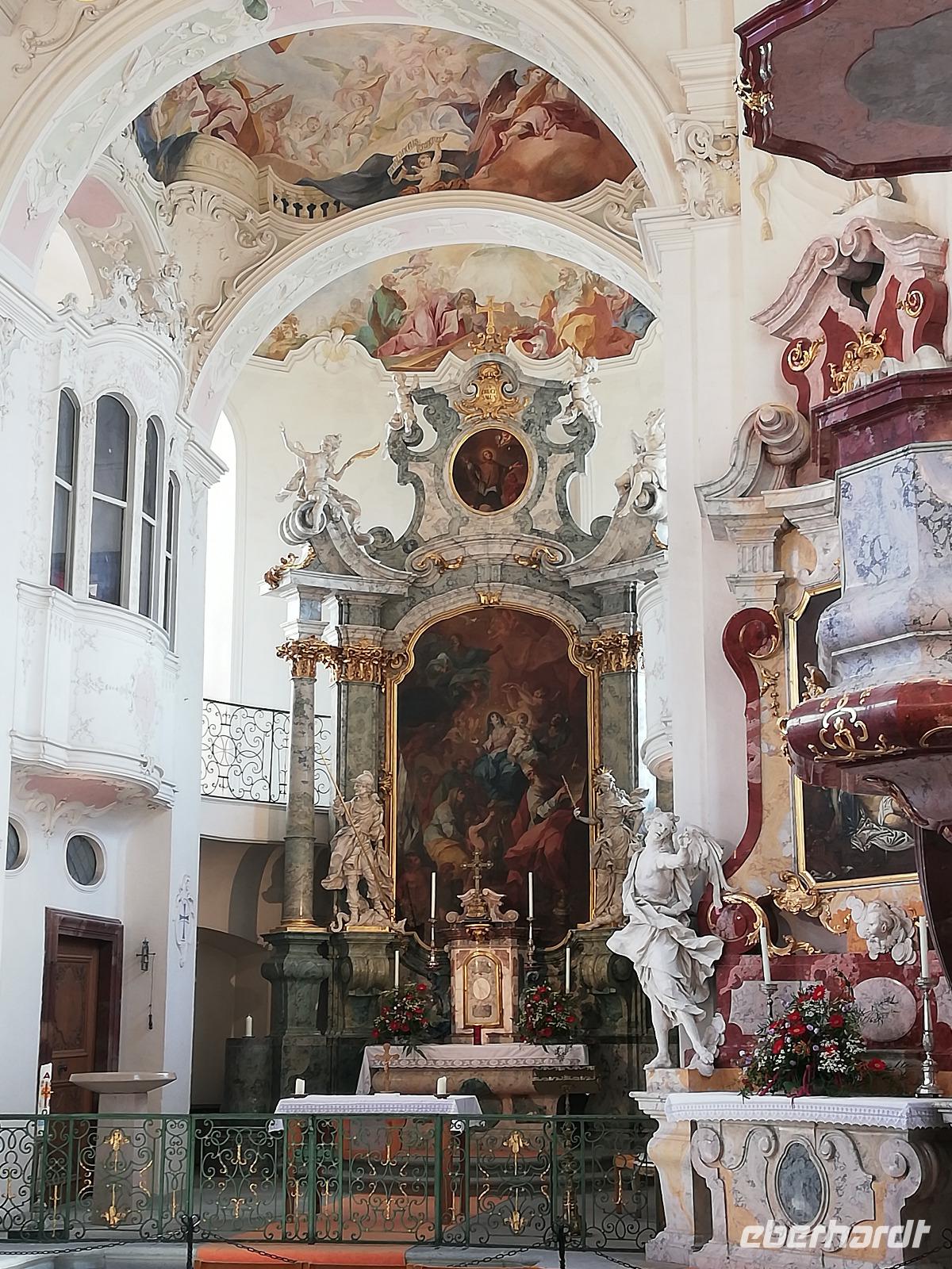 Nächstes Ziel Weingarten, Basilika St. Martin, eine Klosterkirche, die mit einer Kuppelhöhe von 67 Metern und einer Länge von 102 Metern, zu den größten Kirchenbauten im Barockstil nördlich der Alpen gehört und eine der bedeutendsten Barockorgeln Deutschlands beherbergt. Die aufbewahrte Heilig-Blut-Reliquie ist Gegenstand religiöser Verehrung in ganz Oberschwaben. Sie steht im Mittelpunkt einer der größten Reiterprozessionen Europas, des jährlich stattfindenden Blutrittes.
