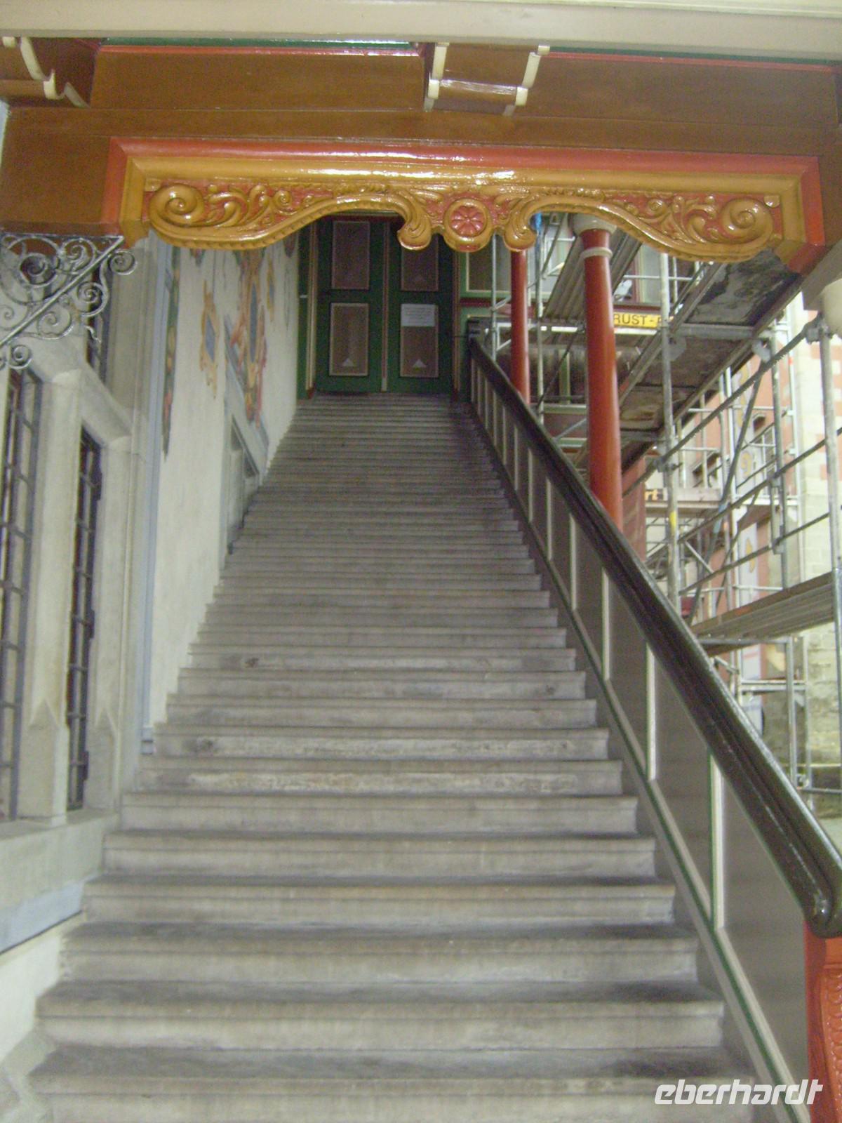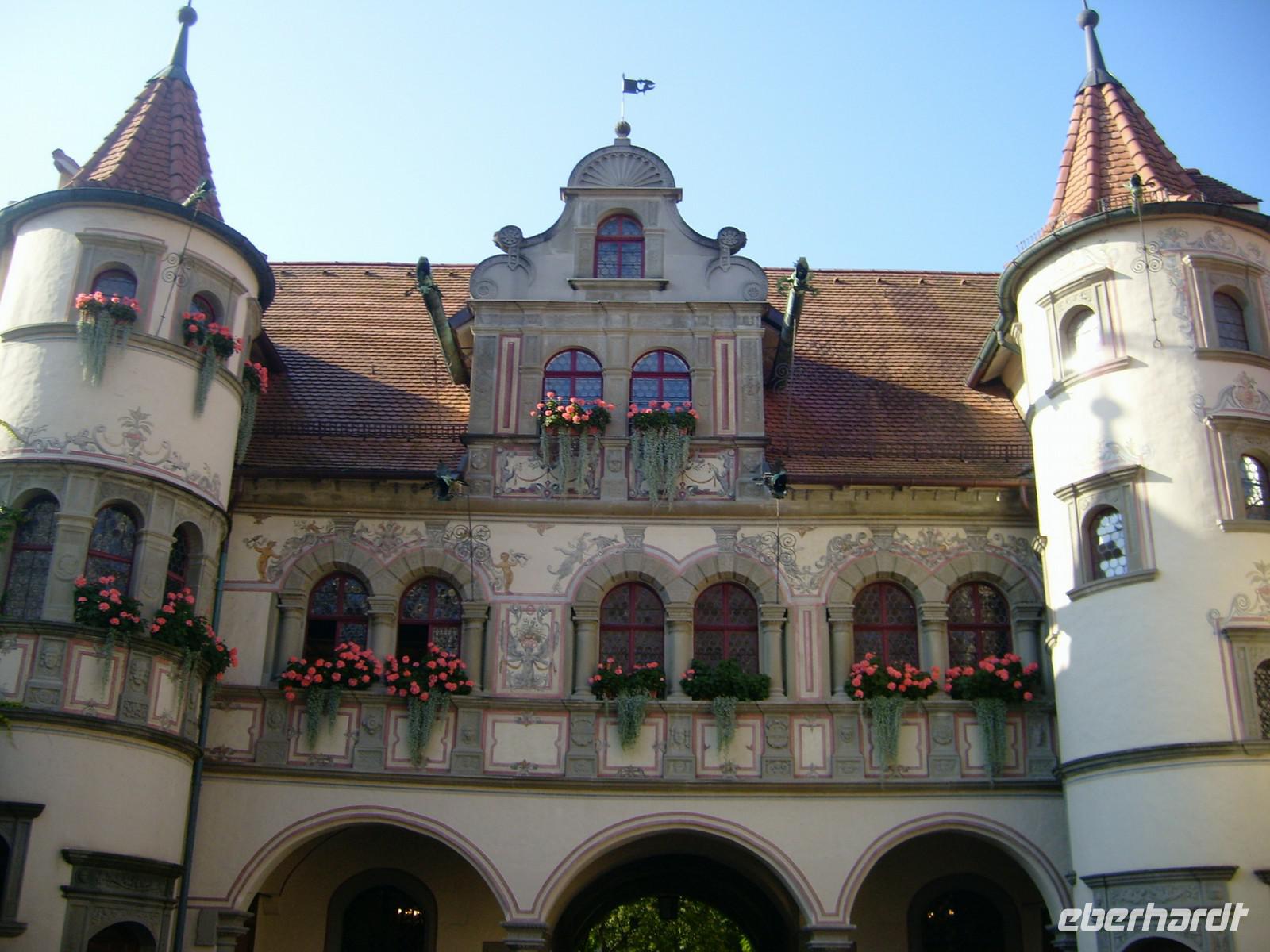 Wir fahren an den Rheinfall von Schaffhausen. Auf 150m Breite rauscht Europas größter Wasserfall bis zu 23m tief über eine Kalksteinklippe. Das tosende Wasser spritzt uns entgegen. Die Fotoapparate fangen bei diesem Wasser und strahlendem Sonnenschein einen tollen Regenbogen ein. Danach geht es weiter in die schweizerische Stadt nach Stein am Rhein. Die relativ schmale Hauptstraße der Stadt hat rechts und links wunderbar bemalte Häuser. Noch interessanter sind die kleinen Seitenstraßen der Stadt. Jedes Haus erzählt über die gemalte Fassade eine Geschichte. Wir besuchen das Kloster mit der Pforte zum Rhein und da liegt er vor uns. Breit und ruhig - der sagenumwogene Rhein. Er trennt die Stadt Stein am Rhein in zwei Ortsteile. Wir treffen uns am Bus und fahren weiter entlang der schweizerischen Landschaft am Bodensee. Fast unmerklich über die Grenze, kommen wir wieder über Bregenz zurück nach Österreich in unser Hotel.