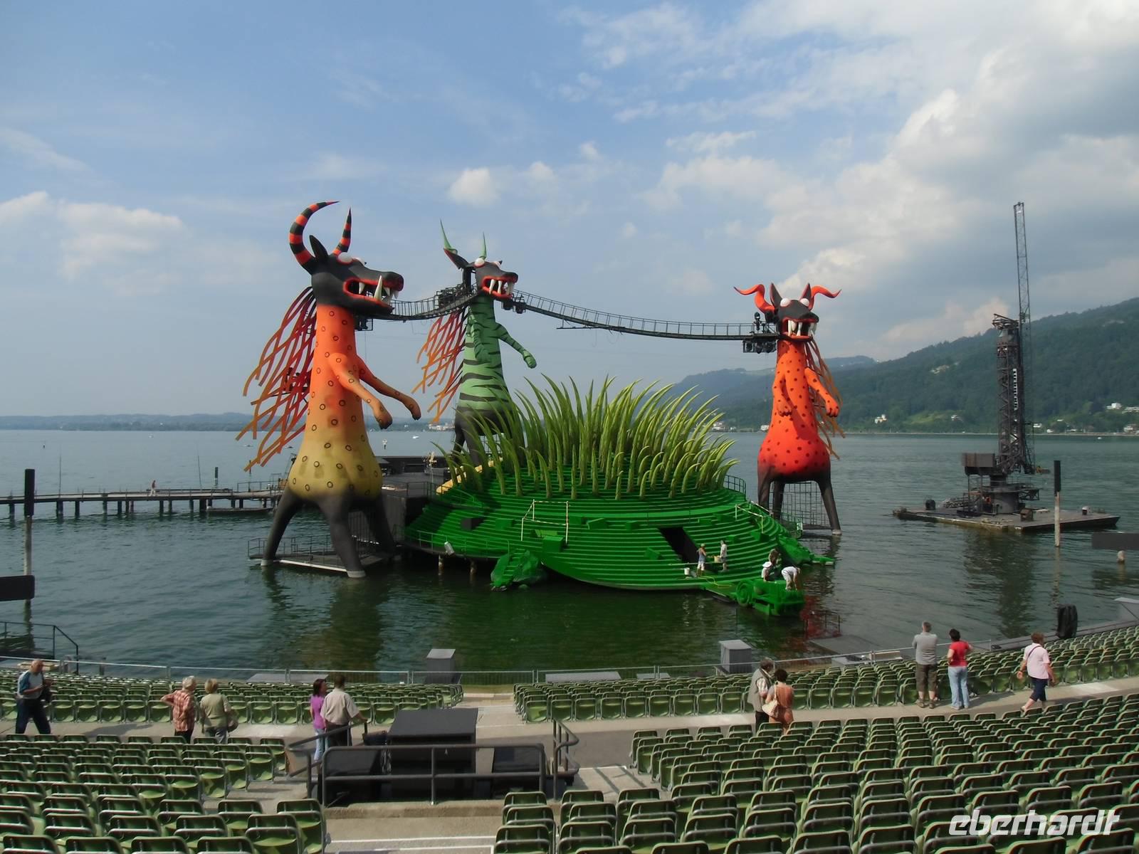 Bei sonnigem Wetter führte unsere Reiseroute an Nürnberg und Ulm vorbei nach Lindau, wo wir den ersten Blick auf den Bodensee werfen konnten. Und sogleich begann auch das Besichtigungsprogramm mit dem Stopp in Bregenz und einem Spaziergang zur berühmten Seebühne. Das diesjährige Bühnenbild ist etwas skuril, aber gerade deshalb ganz interessant. Am Abend bezogen wir das Hotel "Die Linde" in Höchst und konnten beim Abendessen zum ersten Mal österreichische Schmankerln genießen.