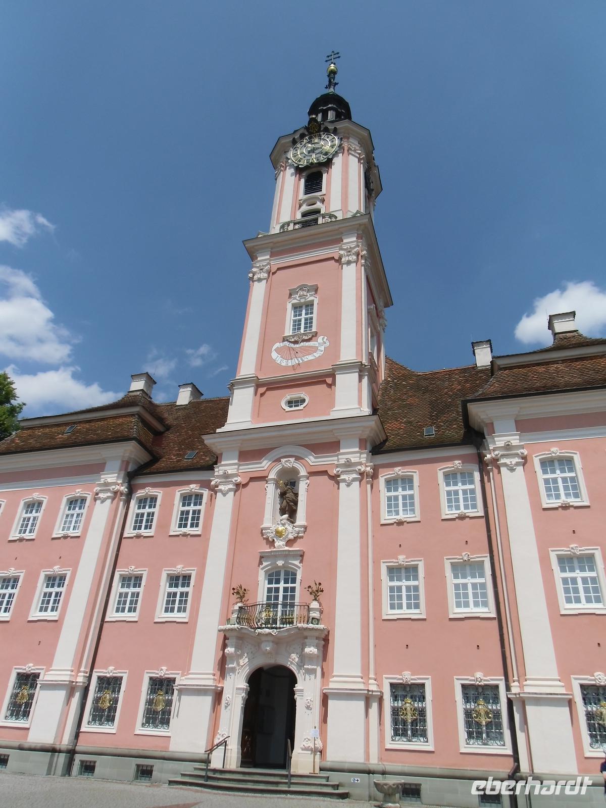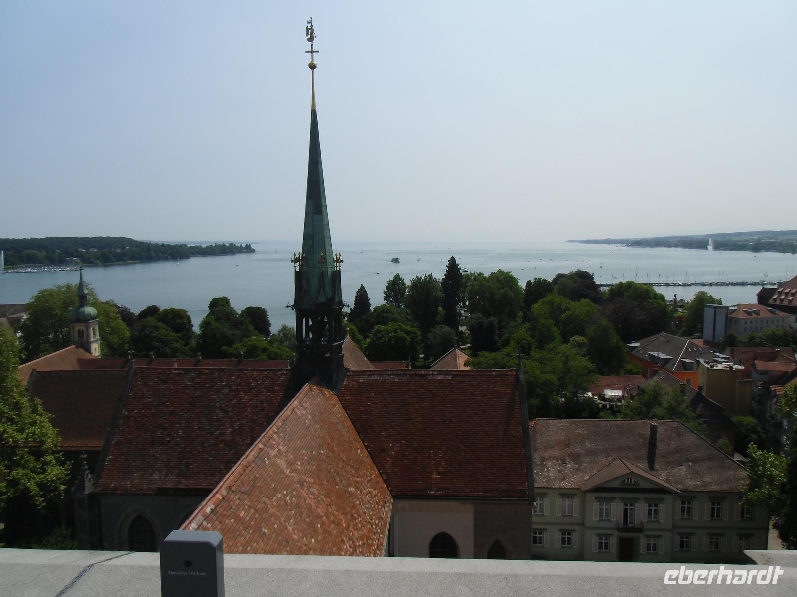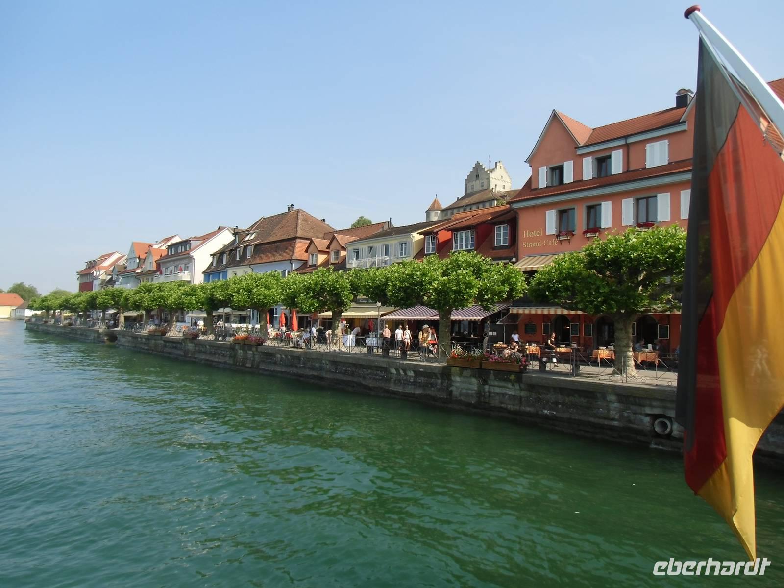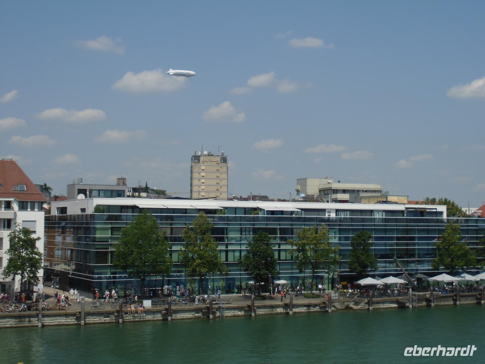 Nun blieb noch, das Nordufer des Bodensees zu erkunden. In Lindau stiegen wir auf der Insel aus dem Bus und spazierten durch die Gassen am Rathaus vorbei zum Hafen. Vom Personenschiff aus ließen sich die einzelnen Orte bis Friedrichshafen ganz entspannt betrachten. Über eine Stunde lang glitten wir so bei herrlichstem Sonnenwetter von der bayerischen zu der baden-württembergischen Kreisstadt über das Wasser. In Friedrichshafen wollte es der Zufall, dass gerade das "Seehasenfest" stattfand. Also: auf ins Gewühl! Einige Gäste nutzten auch die Gelegenheit, das Zeppelinmuseum zu besuchen. Beeindruckend auch die Aufstellung mehrerer Fanfarenzüge auf den Decks der im Hafen liegenden Personenschiffe, die von dort aus abwechselnd "um die Wette" spielten. Am Nachmittag besuchten wir die barocke Wallfahrtskirche Birnau mit dem fantastischen Bodensee-Blick von der Terrasse davor aus und fuhren weiter nach Salem. Der Großteil der Gäste entschied sich für eine Besichtigung der weiträumigen Schlossanlage, wobei es gelang, für einen günstigen Preis noch eine einstündige Führung zu erhalten. Andere Gäste streiften in dieser Zeit über den Affenberg, die dortigen Berber-Affen und die Störche bewundernd. Diesmal weiträumig Friedrichshafen umfahrend, kamen wir ohne Stau zurück zum Hotel.
