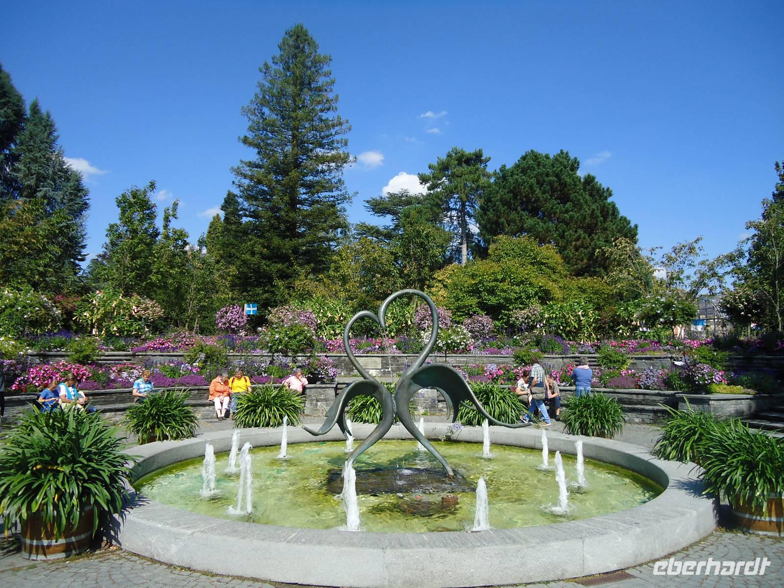 Viel haben wir bereits über die Schönheit, die Einzigartigkeit der Insel gehört, vielleicht auch das ein oder andere gelesen. Jetzt wollen wir dieses kleine Paradies, welches Graf Lennart Bernadotte (sein Urgroßvater, Großherzog Friedrich I. von Baden hatte die Insel 1853 erworben und sein Sohn hat sie später seiner Schwester Victoria, der späteren schwedischen Königin und Lennarts Großmutter geschenkt) auf der Insel geschaffen hat, persönlich „unter die Lupe nehmen".Doch wir sind - wie wir unschwer erkennen,, nicht die einzigen, die diesen Wunsch hegen. Immer wieder steuern die Schiffe aus Überlingen, Meersburg, Konstanz und,und, und die Insel an und entlassen, einem Moloch gleich, unzählige Menschen .