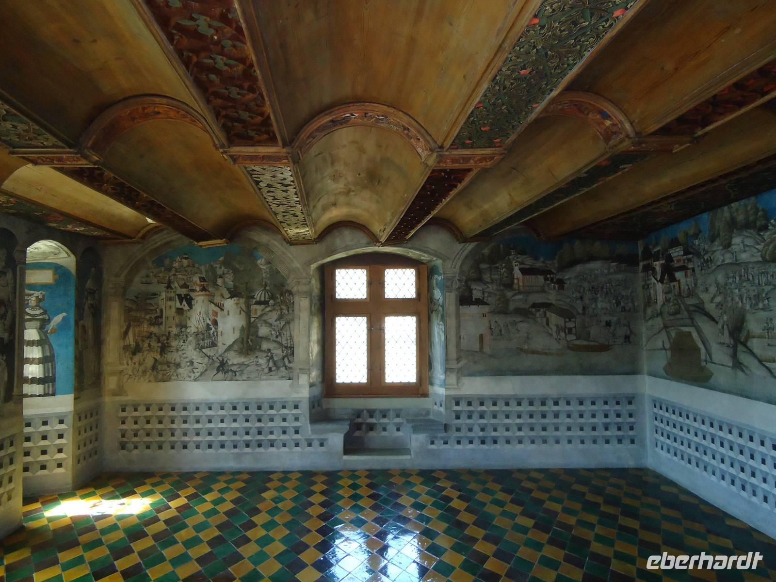 Ganz egal, ob man ihn von unten nach oben (der Ort teilt sich in Ober-und Unterstadt) oder von oben nach unten erobert, der Besuch ist und bleibt ein „Highlight" der Reise. Der recht steile Anstieg in die Oberstadt wird belohnt mit einem super schönen Blick auf die Unterstadt, den See und die stimmungsvolle Umgebung. Einige Gäste genießen „nur „ die schöne Aussicht, andere tauchen ein ins Mittelalter und informieren sich, wie man damals in einer Burg gelebt oder „gehaust" (?!) hat , andere widerum genießen ein Käffchen, ein Eis oder lassen auf einer Bank ganz einfach mal die Beine und die Seele baumeln.
