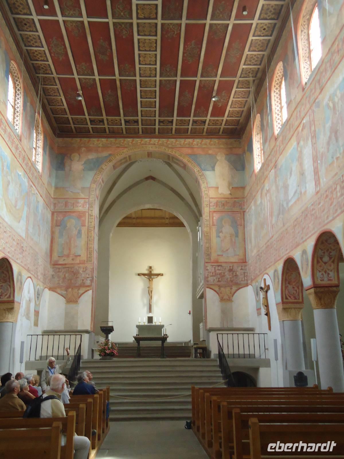 Wir fahren zunächst nach Oberzell zur Kirche St. Georg, der Kirche mit den wunderschönen Wandbildern aus der Ottonenzeit.Wir haben das große Glück im Rahmen einer Führung diese zu Gesicht zu bekommen und auch auf die Linse zu bannen. Nach diesem sehr interessanten Besuch