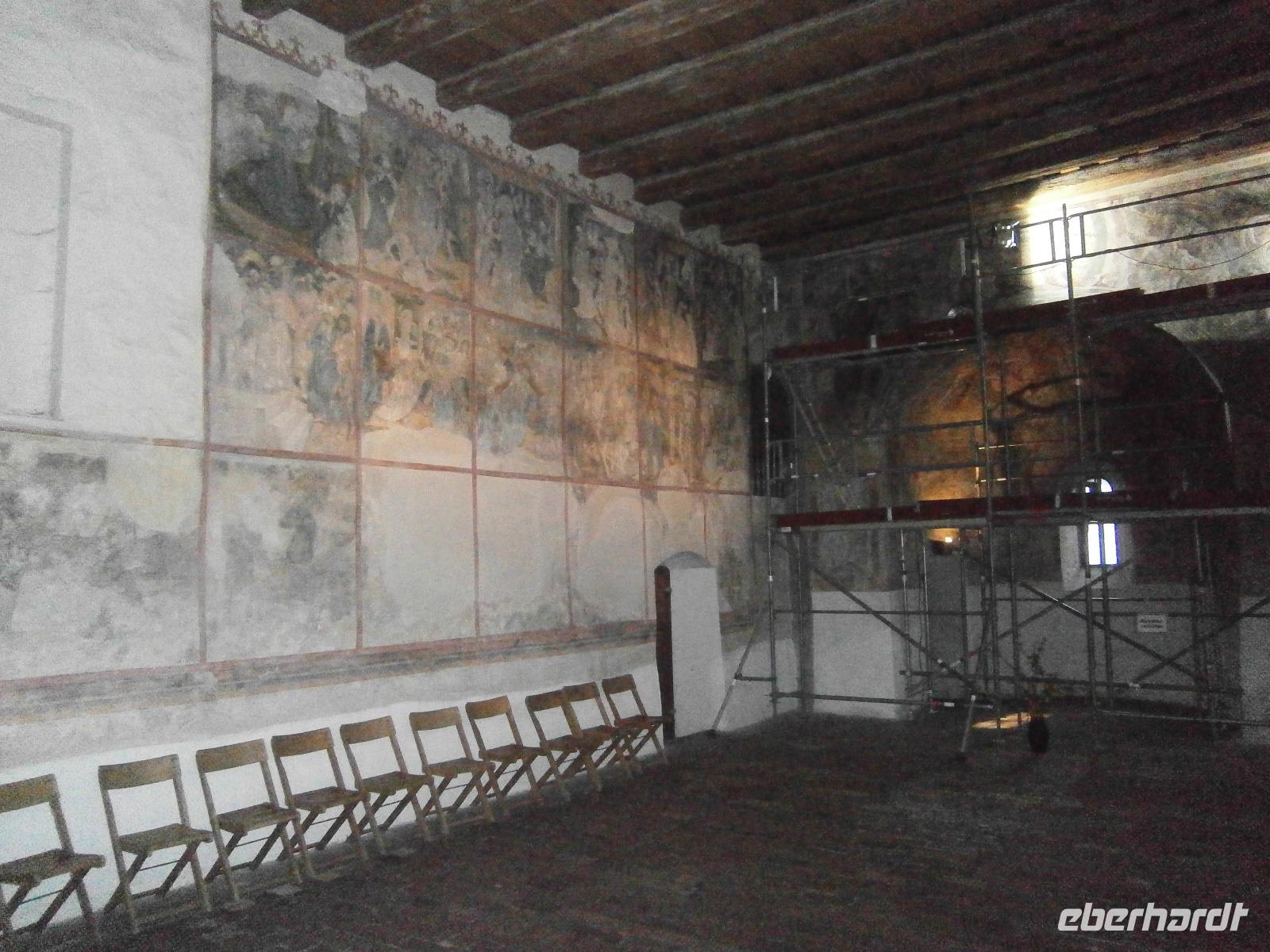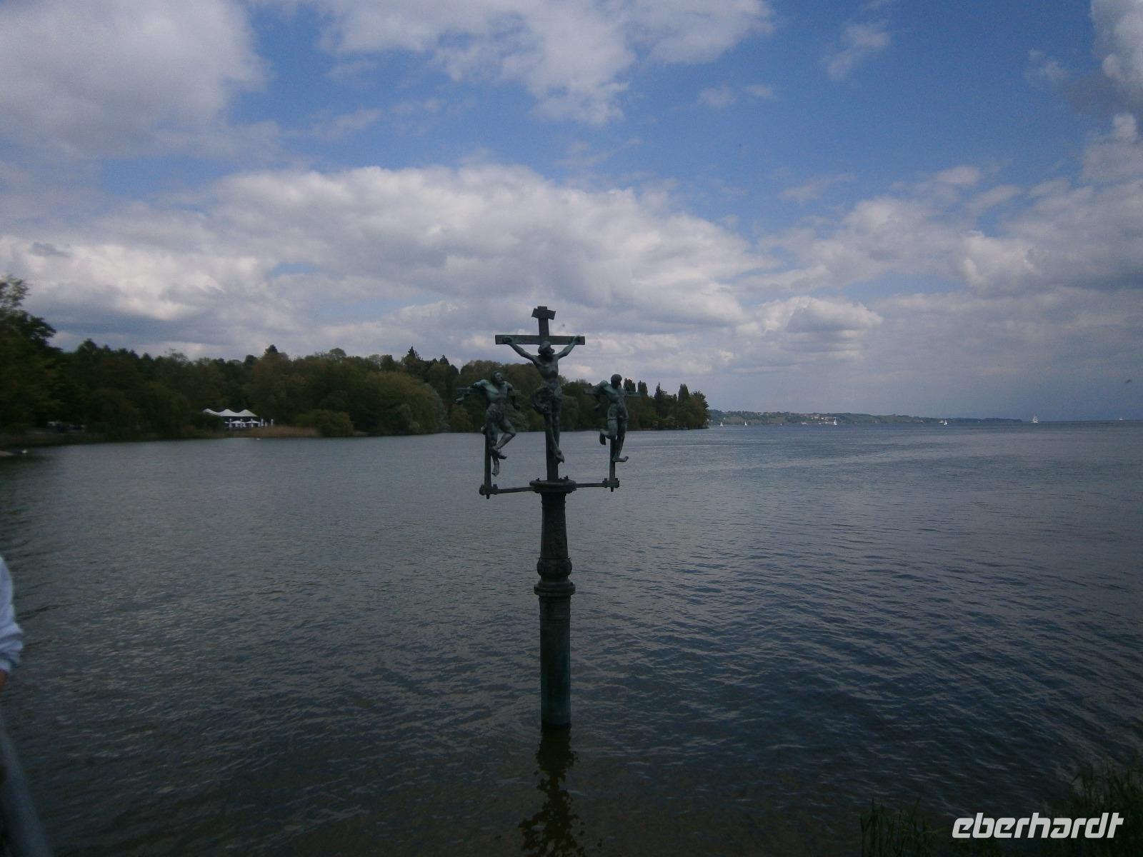 In vielen Orten, die wir auf der Rückreise zu unserem Hotel passierten, gibt es etwas zu entdecken. So u.a. in Münsterlingen: In einer ehemaligen Klosterkirche ist der Kopf des hl. Johannes aus der Spätgotik zu sehen. Diese Figur stammt aus Hagnau am gegenüber liegenden deutschen Ufer. Sie wurde bei der letzten "Seegfrörne" 1963 in einer feierlichen Eisprozession über den See hierher gebracht. Es ist jedoch nicht vorausschaubar, wann der See wieder zufriert und die Einwohner von Hagnau die Skulptur zurückerhalten.